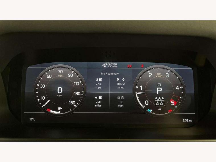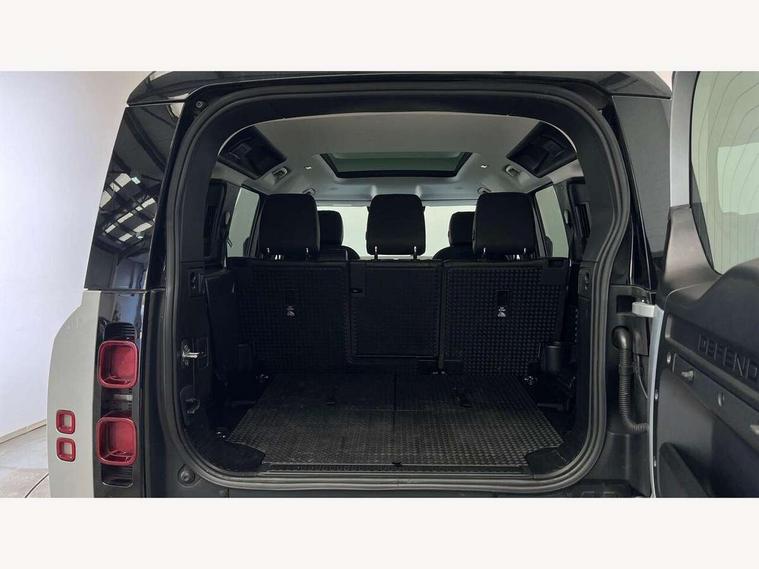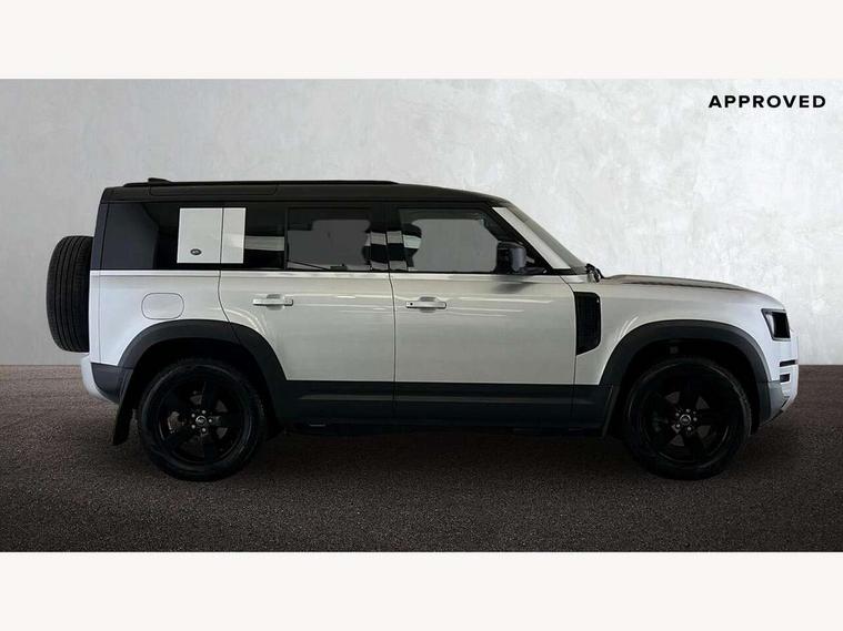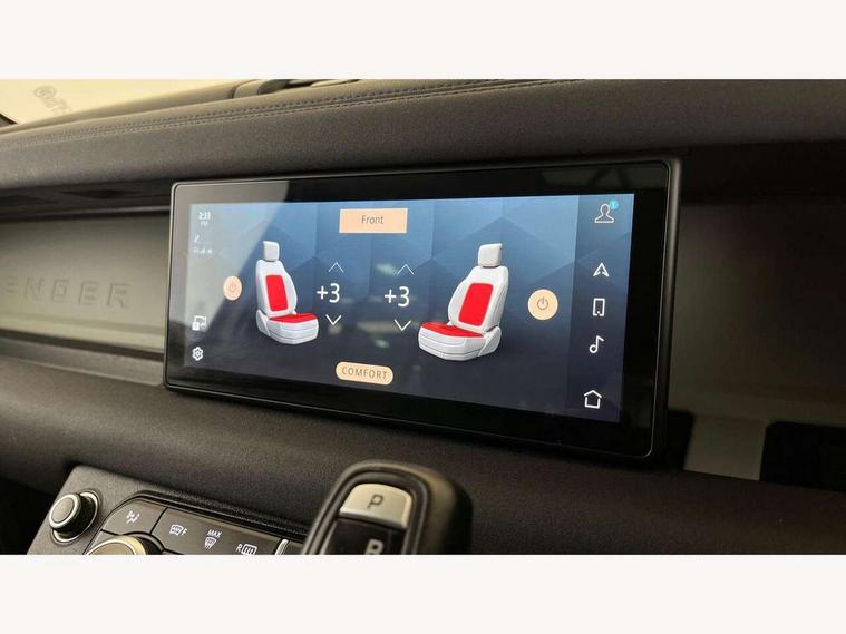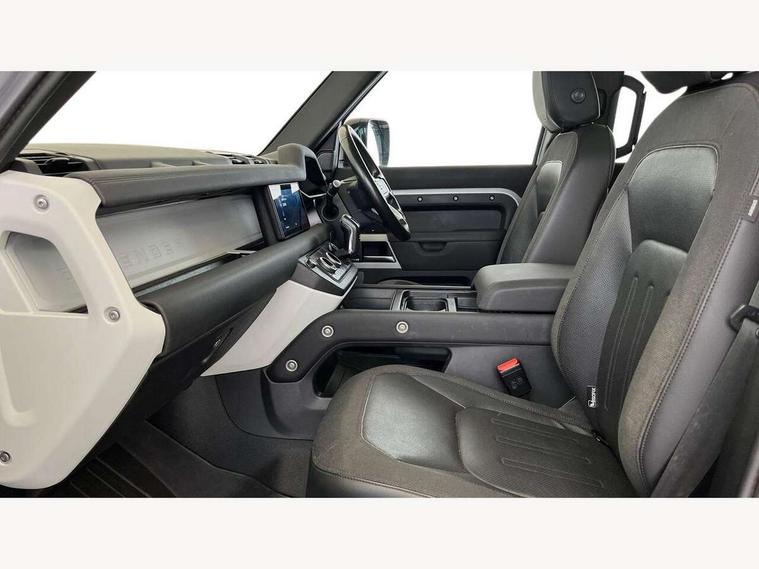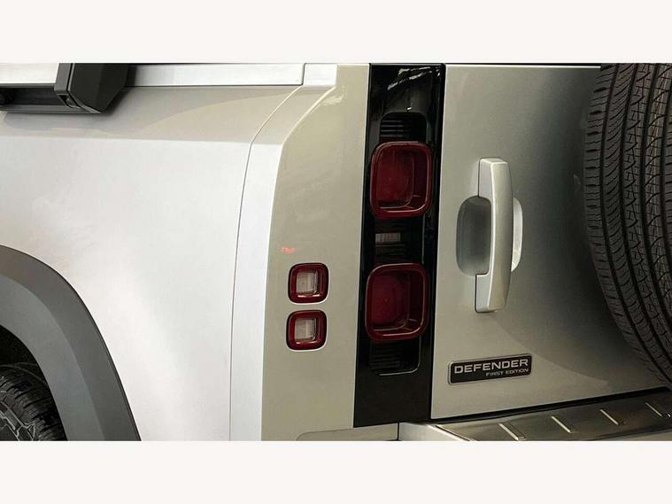 10" touch screen, 360 degree parking aid, 3D Surround Camera with 360 View, 180 Rear View, Front Traffic Detection, Forward Vehicle Guidance, Tow Hitch Assist and clear sight Ground View, Android Auto, Apple CarPlay, Blind spot assist, Bluetooth system, Clear exit monitor, Click and go integrated base unit, Connected navigation pro, Cruise control + speed limiter, Driver condition monitor, Interactive driver display, Lane keep assist, Less CE Device Charging, PAS, Pivi Pro connected navigation system with upgraded Infotainment, Rear traffic monitor, Traffic sign recognition with adaptive speed limiter, Trip computer, Wade Sensing, Adaptive dynamics, Configurable Terrain Response, Electronic air suspension, Terrain Response 2, DAB Radio (Digital Audio Broadcasting), Meridian 400w sound audio system with 11 speakers and subwoofer, Automatic headlight levelling, Automatic headlights, Black contrast roof, ClearSight interior rear view mirror, Front fog lights, Heated windscreen, LED tail lights, Matrix LED headlights with signature DRL, Metal tread plates with First Edition branding, Metallic paint, Power fold, auto-dimming, heated door mirrors with memory and approach lights, Privacy glass, Puddle lights, Rain sensing windscreen wipers, Signature graphic (with interior storage), Sliding panoramic roof, 12 way heated electric memory front seats with 2 way manual headrests, 60:40 folding load through rear seats with manual slide and recline and centre armrest, Air quality sensor, Cabin air ionisation, Cabin lighting, Carpet mats, Domestic plug socket, Electric reach + rake adjustable steering column, Front centre console refrigerator compartment, Front passenger isofix child seat attachment, Grained Leather and Robust Woven Textile upholstery, Heated steering wheel, Leather gearshift, Leather wrapped steering wheel with PU DAB, Loadspace cover, Manual third row seats, Morzine headlining, Multifunction steering wheel, Rear headrests, Rear ISOFIX, Sunvisors with illuminated vanity mirrors, Three-zone Climate Control with Rear Cooling Assist, Twin front cupholders with cover, Black exterior pack - Defender, Non-smoker package, Online pack with data plan - Defender, 7 three point seatbelts, ABS, Cross car beam in Light Grey Powder Coat, Driver and passenger airbags, Emergency braking, ESP + traction control, TPMS (Tyre pressure monitoring system), Alarm, Immobiliser, Intrusion sensor, Keyless entry and go, Locking wheel nuts, Remote locking,