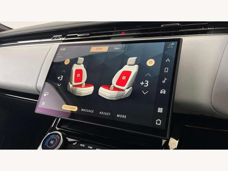 13.1" Touchscreen, 3D 360 degree surround camera with wade sensing, Adaptive cruise control with steering assist, Android Auto, Apple car play, Blind spot assist, Bluetooth connectivity streaming, Driver condition response, Eco mode, Electric power assisted steering (EPAS), Front and rear parking aid, Head up Display, Interactive Driver display instrument cluster, Lane departure warning system, Lane keep assist, Park assist, Push button start, Rear collision monitor, Rear traffic monitor, Remote, Traffic sign recognition with adaptive speed limiter, Trip computer, Wireless device charging with phone signal booster, 8 speed automatic transmission, Adaptive dynamics, Adaptive off-road cruise control, All wheel drive system, Automatic access height, Terrain Response 2, DAB Radio (Digital Audio Broadcasting), Incontrol protect - SOS emergency call with automatic collision detection, optimised assistance call and Incontrol remote app essential, Meridian sound system, Pivi pro connected, USB/aux input socket, Adaptive brake lights, Automatic headlight levelling, Automatic headlights, Centre high mounted stop light, ClearSight interior rear view mirror, Digital LED headlights with signature DRL and image projection, Electric heated/power fold memory door mirrors with approach lights and auto dimming driver side, Electric windows with one touch open/close and anti trap, Flush deployable exterior door handles, Follow me home lighting, Front and rear recovery eyes, Headlight power wash, Heated rear window, Heated washer jets, Heated windscreen, Illuminated metal treadplates with Autobiography script, LED tail lights, Metal load space scuff plates, Rain sensing windscreen wipers, Rear animated directional indicators, Rear fog lights, Rear side wing doors, Rear wash/wipe, Remote window closing, Side repeater indicators in mirror, Sliding panoramic roof with electric sunblind, Trailer stability assist, Winter wiper park position, 22 way heated and ventilated front and power recline rear seats, massage electric memory front seats and front and rear winged headrests, 3 seat bench in 2nd row, 60:40 seats with power recline and loadthrough, Air quality sensor, Automatic air recirculation system, Bright metal foot pedals, Centre console with armrest, Customer configurable single point entry, Driver's footrest, Easy boot loading, Ebony console door armrests and seatbelts, Electric adjustable steering column, Four zone climate control, Front and rear cupholders, Front door storage space, Front map lights, Front seat back map pockets, Front stowage pocket, Front/rear passenger grab handles, Gearshift paddles, Heated steering wheel, Isofix child seat preparation, Loadspace cover, Loadspace floor partition, Loadspace Hook, Loadspace light, Loadspace mounting provisions, Lockable glovebox, Luggage tie-downs in loadspace, Multifunction steering wheel, Pollen filter, Power socket, Premium cabin lighting, Rear centre armrest, Rear ISOFIX, Single front passenger seat, Soft close doors, SV bespoke carpet mats, Three 12V accessory power outlets, Twin blade sunvisors with Illuminated vanity mirrors, Upper secondary glovebox, Online pack with data plan - Range Rover Sport, 3 point seatbelts on all seats, Anti-lock braking system (ABS), Brake pre-fill technology, Configurable autolock, Cornering brake control (CBC), DSC - Dynamic Stability Control, EBD - Electronic brakeforce distribution, Electric parking brake, Electronic traction control, Emergency braking, Front seatbelt pretensioners, Front side airbags, Height adjustable front seatbelts, Hill descent control, Hill launch assist, Illuminated seat belt buckles, Low traction launch, Occupant protection assist, Passenger seat occupant detector with front airbags, Power operated child locks, Roll stability control, Seatbelt warning, TPMS (Tyre pressure monitoring system), Immobiliser, Intrusion sensor, Keyless entry, Locking wheel nuts, Perimetric and volumetric anti theft alarm, Remote locking, Moonlight noble chrome interior finishers,