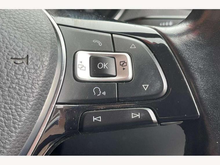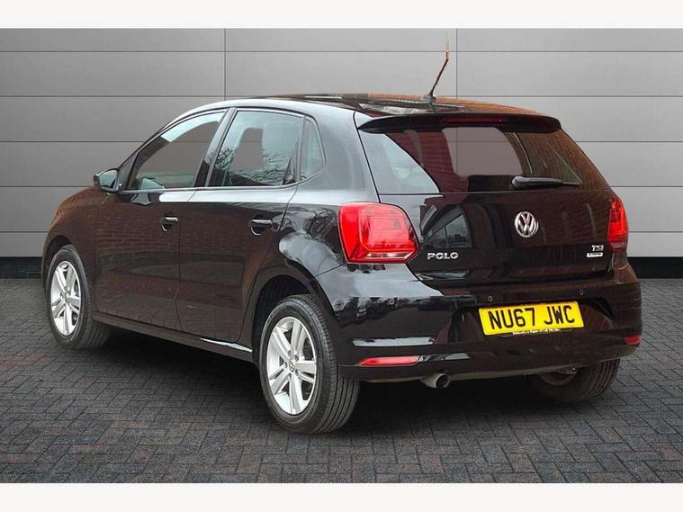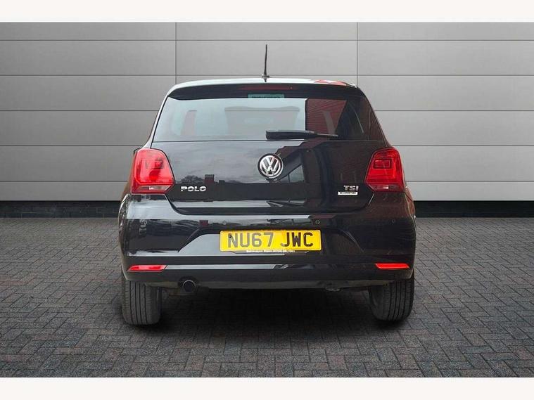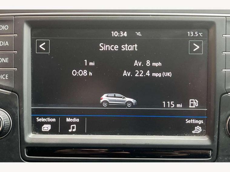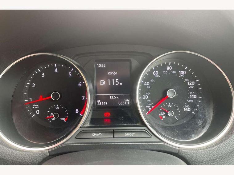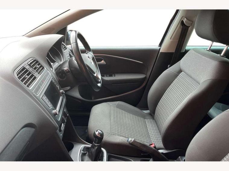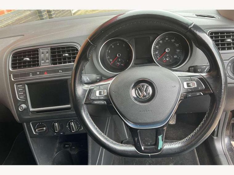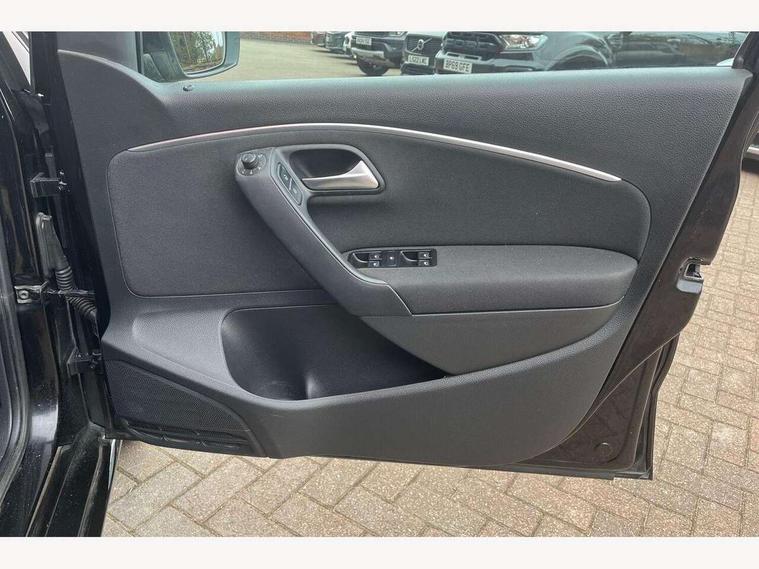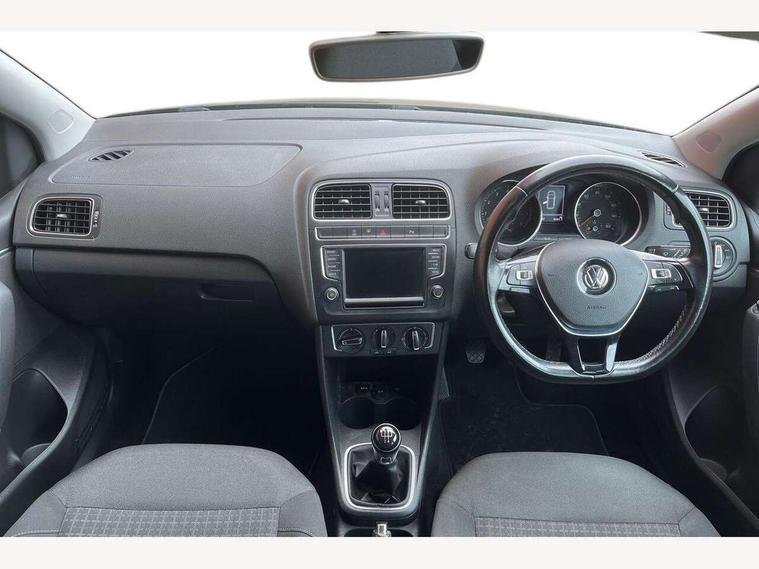 App-Connect, Bluetooth Telephone preparation, Driver alert system, Multi function display, Multifunction computer, PAS - speed related, Service interval indicator, Ultrasonic front and rear optical and audible parking sensors, Warning buzzer and light for front seatbelts unfastened, 6 speakers, Composition media system with radio, glovebox mounted CD, colour touch screen, SD card, aux-in, USB, multimedia interface, DAB Digital radio, Black grille with chrome surround, Body colour bumpers, Body colour door handles, Body colour door mirrors, Body coloured side sills, Chrome trimmed front air intake surrounds, Electric folding door mirrors, Electric front windows, Electric operated/heated door mirrors, Front fog lights with static cornering function, Front wash/wipe with interval delay, Heat insulated tinted glass 65% light absorbing from B pillar back, Heated rear window with auto timer, Rear electric windows, Rear windscreen washer and wiper with interval delay, 12V power socket in centre console, 2 bag hooks in luggage compartment, 2 cupholders, 3 rear head restraints, 3 spoke steering wheel, 4 grab handles, 60/40 split folding rear seat, Centre console storage, Chrome interior door handles, Driver and passenger sunvisors, Driver seat height adjust, Dust/pollen filter, Front door pockets, Front passenger seat height adjust, Front seat backrest storage nets, Front/rear reading lights, Glovebox, Height/reach adjustable steering column, Illuminated vanity mirror, Interior light with delay, Isofix Preparation 2 Rear child seats, Luggage compartment cover, removable, Luggage compartment lighting, Matt chrome gear lever gaiter surround, Multifunction leather steering wheel with leather gear knob/handbrake grip, Storage compartment in front doors, Storage compartment in rear doors, Sunglasses holder, Variable boot floor, Light and sight pack - Polo, 3 point height adj front seatbelts + pretensioners, 3x3 point rear seatbelts, ABS, Automatic post collision braking, Driver/front passenger airbag, Driver/Passenger whiplash optimised head restraints, ESC - Electronic Stability Control + traction control, ESP with EDL + ASR, Hill hold control, Hydraulic Brake Assist (HBA), Tyre pressure monitoring system, Alarm with remote central locking and interior protection, Electronic engine immobiliser, Air vents in Matt chrome, Matt chrome interior trim, 15" steel spare wheel,