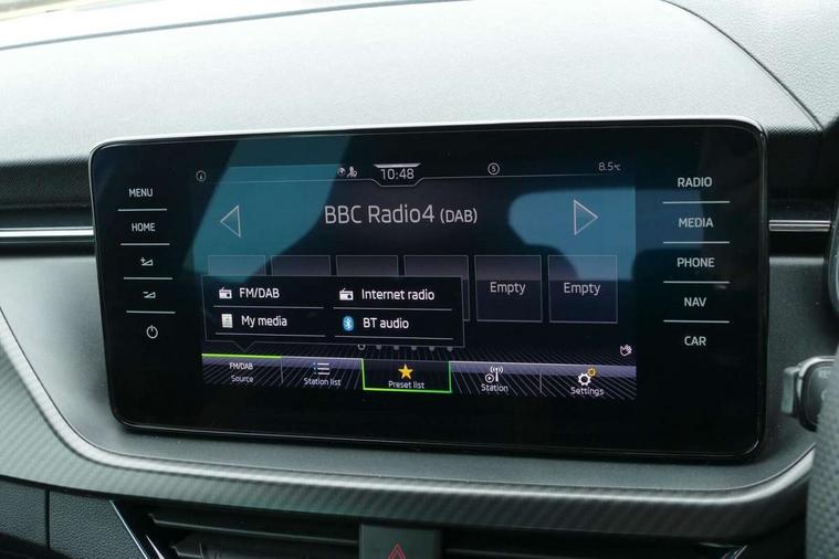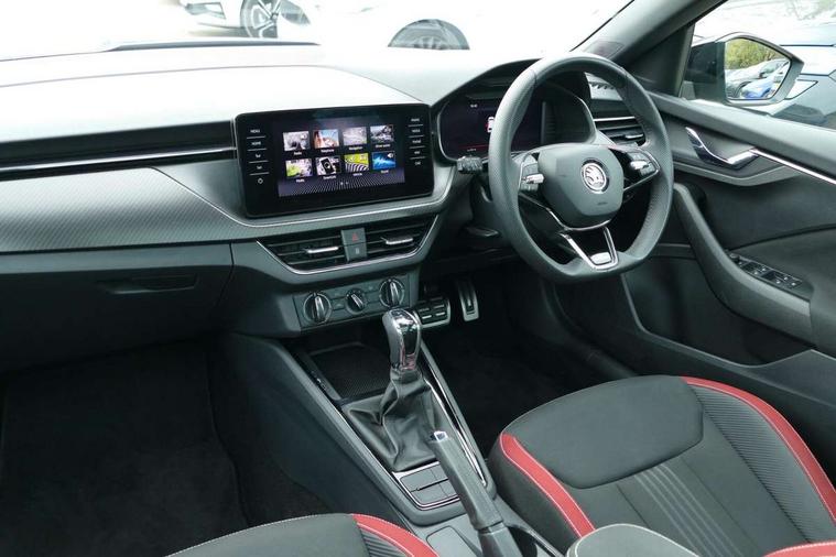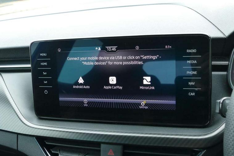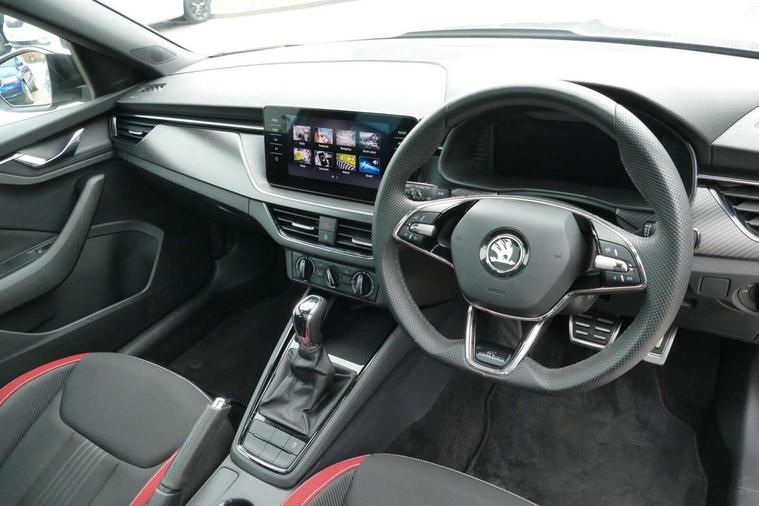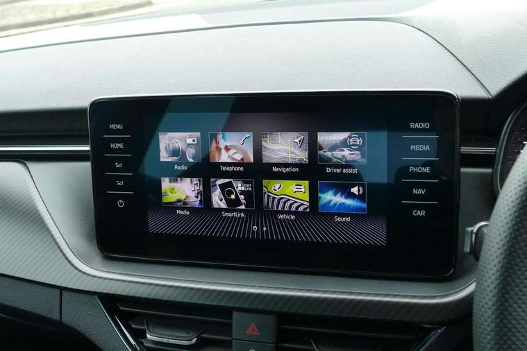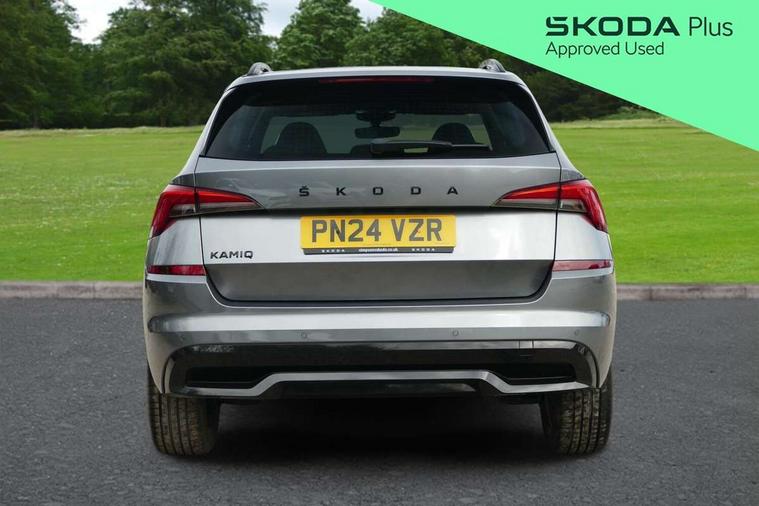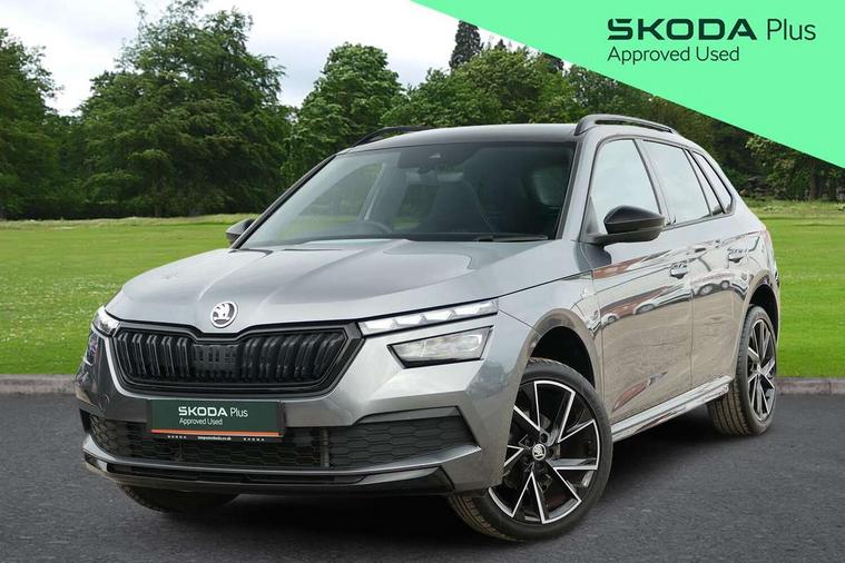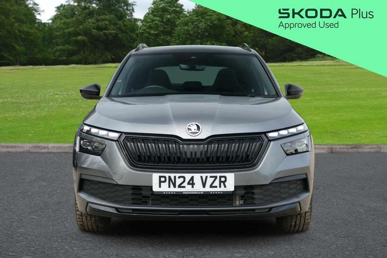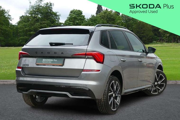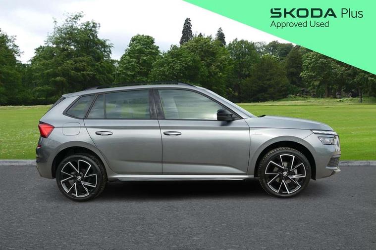 Amundsen satellite navigation with 9.2" glass colour touchscreen display, web radio, voice control and traffic sign recognition, Bluetooth system, E-call, Front assist system, Gesture control, PAS, Service indicator, Speed limiter, Wireless Smartlink for Apple CarPlay (wired for Android Auto), 8 Speakers, Auxiliary input socket, DAB Digital radio, Black door mirrors, Black radiator grille, Black rear diffuser, Body colour bumpers, Body colour door handles, Body colour roof spoiler, Boot lettering in black, Chrome grille surround, Dimming rear view mirror with black surround, Electrically adjustable and heated door mirrors, Fixed panoramic sunroof with black roof rails, Front and rear electric windows, Front sport bumper, Full LED headlights with adaptive front light system, cornering function, fog lights and dynamic indicators, Headlight range control, Heated rear window, High functionality rear led lights with dynamic indicators, KAMIQ Door sills, LED daytime running lights, LED third brake light, Light sensors, Monte carlo plaque, Privacy glass, Rain sensor, Rear fog lights, Rear side wing doors, Rear wiper, 12V Accessory socket in centre console, 3 seat bench in 2nd row, Aluminium pedals, Black ceiling for black/beige interior, Black roof lining, Chrome inner door handles, Cloth upholstery, Front head restraints, Glove compartment with illumination, Ice scraper, Isofix child seat fittings on outer rear seats, ISOFIX on front passenger seat, Leather gear lever, Manual lumbar support for front seats, Rake/reach adjustable steering wheel, Reading lights, Single front passenger seat, Sports seats, Sun visors with illumination on front passenger, Textile floor mats, Third rear headrest, Top tether for front passenger seat, Umbrella in driver's door, 3x3 point rear seatbelts, Airbags - driver and front passenger, ESP, Front passenger airbag deactivation switch, Front side airbags with curtain airbags, Hill hold control, Manual parking brake, Manual rear child locks, One tone horn, Rear disc brakes, Seatbelt reminder for driver an co-driver, Traction control, Tyre pressure monitor, Anti-theft alarm system with interior monitoring, backup horn, towing protection and remote central locking with SAFE system, Anti-theft wheel bolts, Electronic engine immobilizer, Chrome air vent surrounds, 18" Vega alloy wheels in black,
