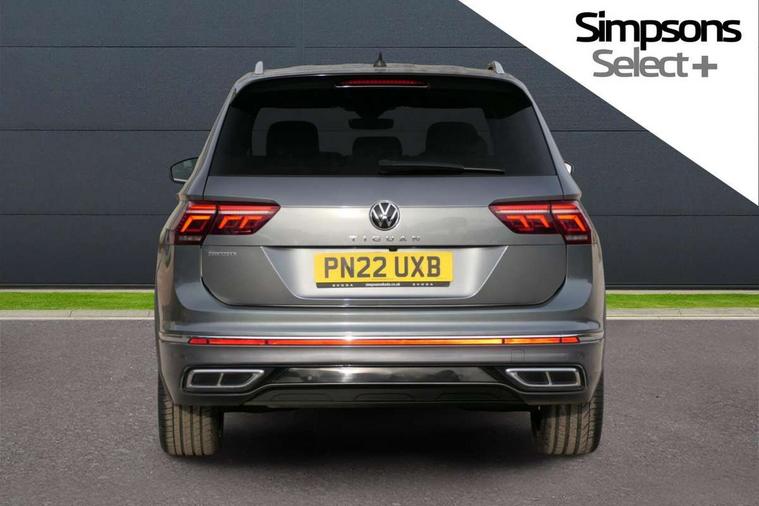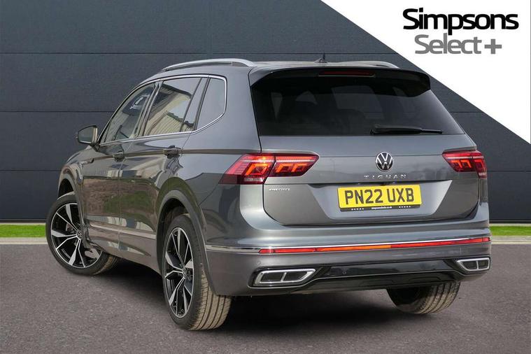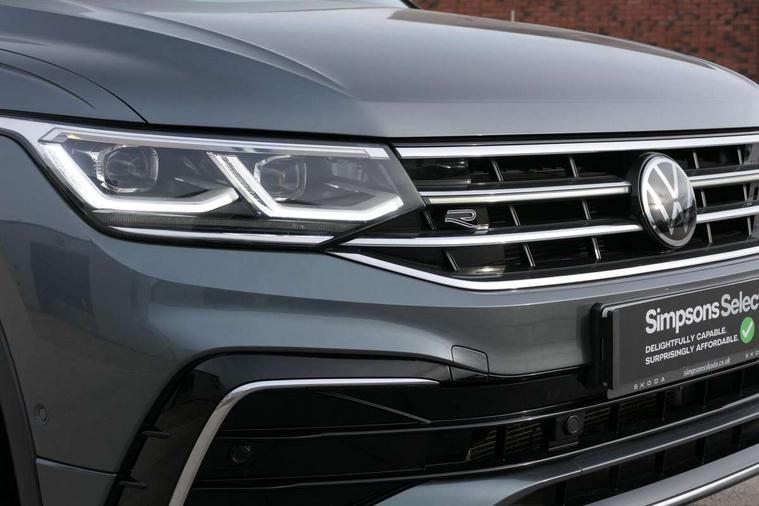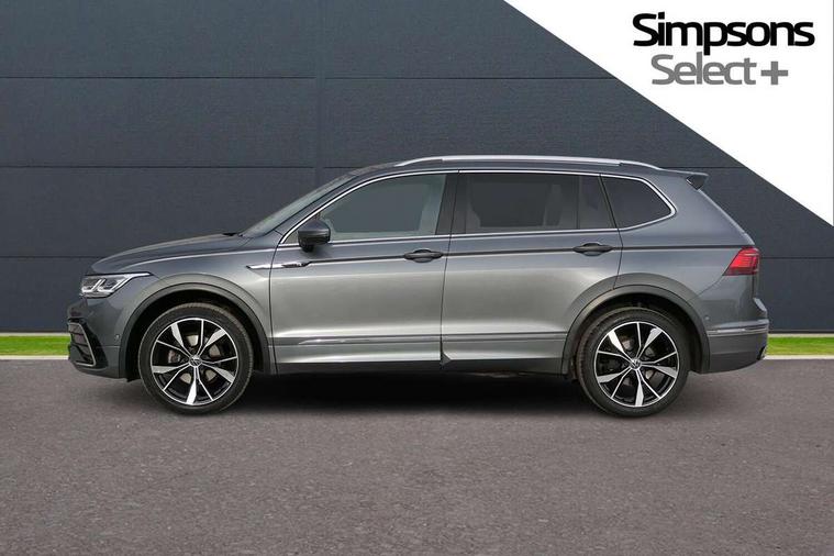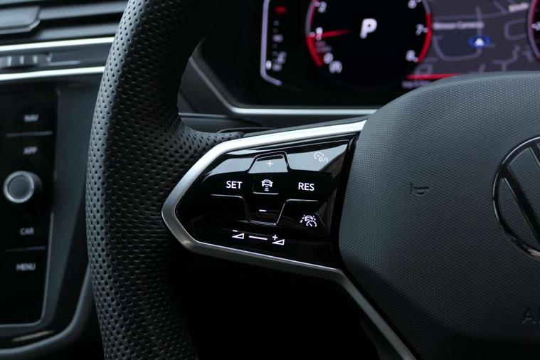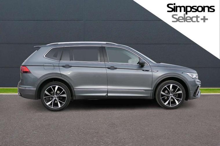 Adaptive cruise control, App-Connect, Digital cockpit pro, Driver alert system, Driver profile selection, Dynamic road sign display, eCall emergency call service, Electric boot lid, Lane change system side assist and rear traffic alert, Lane keeping system Lane Assist, Mobile phone interface comfort with inductive charging feature, Multifunction front facing camera, Power assisted speed sensitive steering, Speedo and rev counter, electronic odometer, trip, service interval display and exterior temperature gauge, Front wheel drive, Start-stop system with battery regeneration (recuperation - energy recovery during braking), 2 USB-C ports in the front, 1 USB-C charging socket on the center console in the rear, DAB Digital radio, Diversity antenna for FM reception, Radio, Auto dimming interior rear view mirror, Automatic headlight control system, Body coloured comfort bumpers, Chrome mouldings on side window, Coming/leaving home lighting function, Exterior badge deletion, Exterior mirror housings painted in silver, Heated windscreen washer jets, IQ light adv HBC, dyn light assist LED matrix headlamps, DH range, dark red LED rear combo light, poor weather, CL, LED headlamp with LED DRL and DCL - PXC, Privacy glass, Rain sensor, Rear fog light, Rear side wing doors, Rear wiper, Silver roof rails, Third brake light, Tilting and sliding panoramic sunroof, 12-volt outlet in centre console rear and luggage compartment, 12V socket in centre console, 3 head restraints in rear, 3 individual folding 2nd row seats, 3rd row 2 individual seats, Air Care Climatronic 3 zone automatic climate control with enhanced air filter and controls in the rear, Door and side trim panel, Drawers under front seats, Driver and front passenger seat height adjustment, Foldable front passenger seat backrest, Front + rear carpet mats, Front centre armrest, Front footwell illumination, Heated front seats, Illuminated scuff plates, ISOFIX anchorage points for mounting 2 child seats on rear seats and i-Size child seats, Leather gearshift handle, Leather-wrapped heated multi-function steering wheel with paddle shift, LED interior light with switch off delay/dimmer and 2 front/rear LED reading lights, Sun visors with illuminated vanity mirrors, Ambience pack - Tiguan Allspace, Easy open and close pack with safelock - Tiguan Allspace, Park assist pack - Tiguan Allspace, 3 point seat belt for centre rear seat, 3 rear three point seatbelts, ABS+EBD+Brake assist, Driver and front passenger safety-optimised head restraints, Driver's and front passenger's airbag with front passenger's airbag deactivation switch, Electronic parking brake, Electronic Stability Control (ESC) inc EDL (Electronic Differential Lock) and ASR (Traction Control), Height adjustable front 3 point seatbelts + pretensioners, Manual rear child locks, Pedestrian monitoring, PreCrash preventive occupant protection Front and rear, Rear disc brakes, Side airbag in front and rear with curtain airbag, Two tone horn, Warning buzzer for seatbelts if unfastened, Anti theft alarm system with interior monitoring, backup horn and towing protection, Anti-theft wheel bolts, Electronic steering lock, Remote central locking with 2 remote folding keys, Chequered flag tinanium decorative inserts,