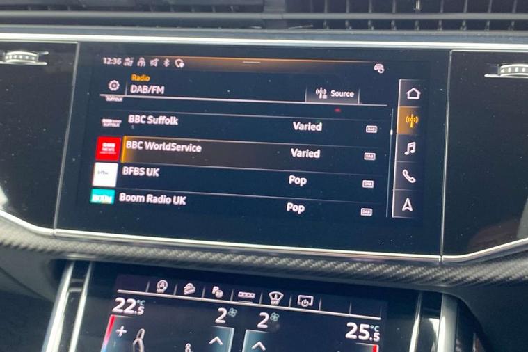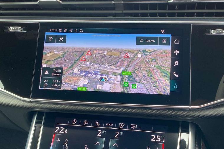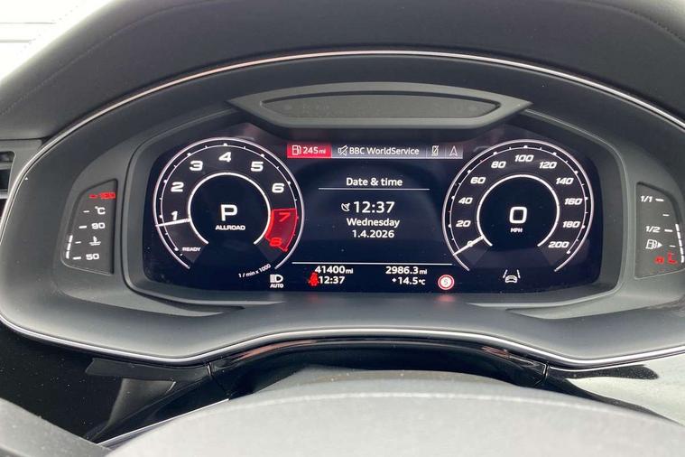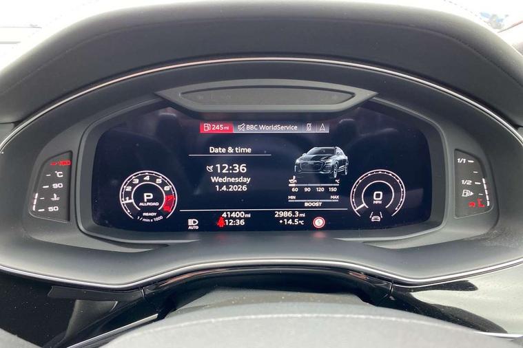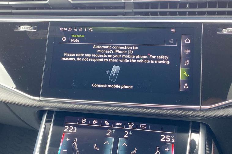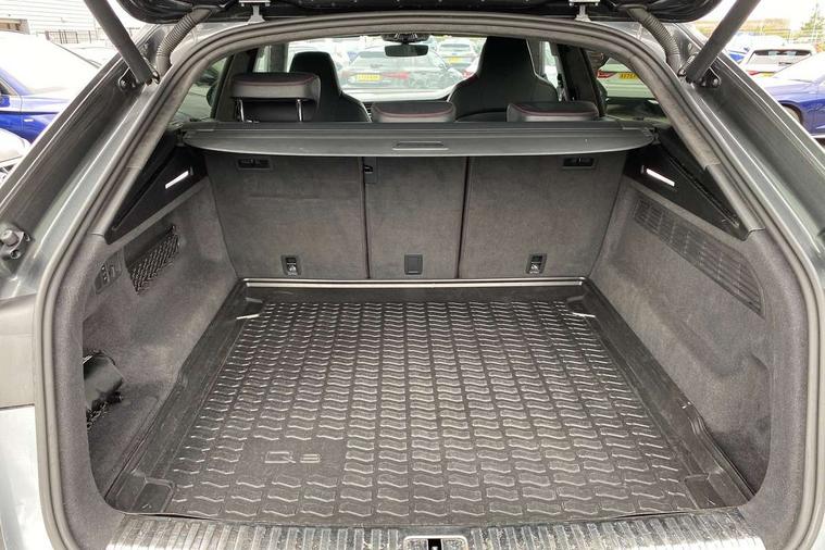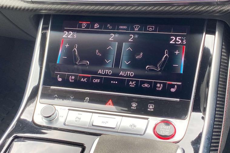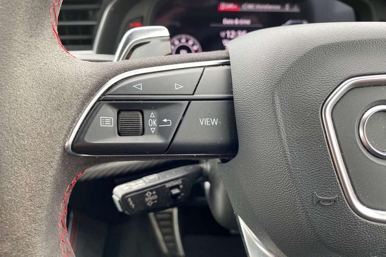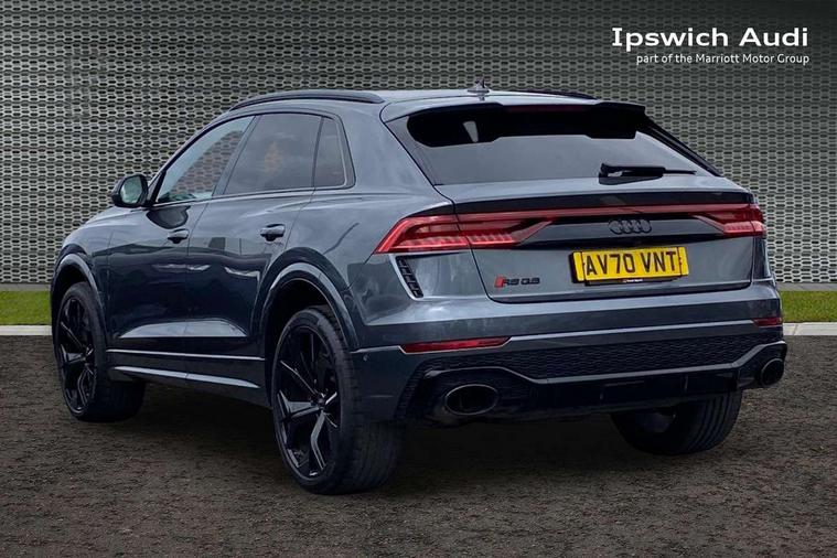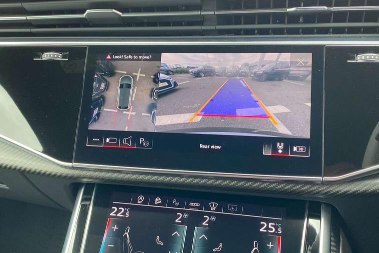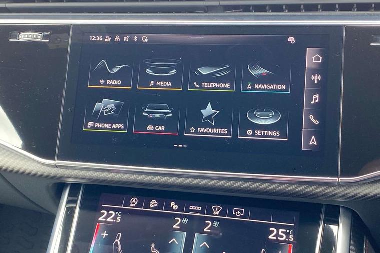 Air quality package - RS Q8, City assist pack - Q8, Comfort and sound pack - RS SQ8, Multi-coloured extended LED interior lighting pack - RS Q8, RS specific styling pack - RS Q8, Titanium black styling pack - RS Q8, Tour pack - Q8, 23" x 10.5J 5 Y spoke rotor design Audi sport alloy wheels in gloss anthracite black with diamond finish, Tyre repair kit, Advanced key, Anti theft alarm with tow away protection, Anti-theft wheel bolts and wheel loosening detection, Immobiliser, Audi music interface with 2 USB ports with charge and data functions, Audi music interface with 2 USB ports with charge and data functions in the rear, Aux-in socket, DAB Digital radio, 3 point seatbelts on all seats, Audi pre sense front, Driver and front passenger, front side and curtain airbags, Electromechanical parking brake, Electronic Stability Control (ESC) including ABS, ASR and EDL, Hill descent control, Hill hold assist, Predictive pedestrian protection, Seatbelt monitoring, Tyre pressure loss indicator, Warning triangle and first aid kit, Adaptive windscreen wipers with integrated washer jets, Audi Beam uses LEDs to project Vorsprung logo, Audi HD Matrix LED headlights in RS specific design with dynamic front and rear indicators, Auto dimming frameless rear view mirror, Electric front+rear windows, Electric panoramic glass sunroof, Electrically adjustable/heated/folding/dimming door mirrors with kerb view includes integrated LED indications + kerb view function for passenger side, Gloss black finish for exterior Audi rings and RS Q8 logo, Headlight washers, Heat insulating glass in windshield, Illuminated door sill trims with RS logo, LED signature daytime running lights, Privacy glass - dark tinted rear and rear side windows from B-pillar backwards, Rain and light sensors, Rear wiper, RS badges on front wings, RS coming/leaving home animations in front and rear, RS manhattan grey front spoiler lip and rear diffuser insert, RS specific bumpers in full body colour paint finish, RS sport exhaust system with black exhaust tips, 4 zone automatic climate control, 4-way lumbar support for front seats, 40:20:40 split folding rear bench seat, Black Alcantara headlining, Comfort front centre armrest, Double sun visor with illuminated vanity mirror on driver and passenger side extendable, Driver and front passenger seat memory function for electrically adjustable front seats, Electric adjustable steering column with memory functionality, Electric sunblind for the rear side windows and manual sunblind for the rear window, Front and rear head restraints, ISOFIX child seat mounting for front passenger seat and 2 outer rear seats with top tether child seat mounting for all 3 rear seats, Luggage compartment sill protection in stainless steel, Massage and ventilation function for front seats, Perforated Valcona leather upholstery + RS front super sports seats + honeycomb pattern with RS embossed logo, Rear seat bench plus, Stainless steel pedals, Tool kit, 10.1" and 8.6" Dual colour touchscreens, All wheel steering, Audi connect safety and service (e-call), Audi phone box with wireless charging, Audi smartphone interface with wireless Apple CarPlay, Audi virtual cockpit - 12.3" high resolution LCD display with fully customisable instrument cluster and RS specific menus and options, Automatic start/stop system, Electro-mechanical PAS, Head up Display, MMI navigation plus with MMI touch, Natural voice recognition, On board computer, Operating buttons in black, glass look with haptic feedback, Power door closure, Power operated tailgate, RS Audi drive select, Service interval indicator, 48V Mild hybrid technology, Electromechanical active roll stabilisation, Quattro all wheel drive with sport differential, RS specific Adaptive air suspension,