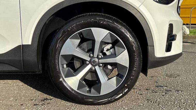 12.3" Progressive Driver Display, 9" centre console portrait touch screen, Adjustable steering wheel force, Android auto (Wired), Apple carplay (wired), Bluetooth handsfree system, Driver alert control, Driver assistance (pilot assist and adaptive cruise control), Driver awareness - Blind spot information system with steer assist, cross traffic alert with autobrake and rear collision warning and mitigation, E-call, Front and rear parking sensors, Front park assist, Google automotive services - Enabled entertainment apps, navigation with google maps, voice recognition with google assistant, Hands free power tailgate, Intelligent speed assistance, Lane keeping aid, Oncoming Lane Mitigation, Speed sensitive steering, Volvo cars services with app - Driving journal, emergency and breakdown call, engine remote start, remote door locking/unlocking and vehicle dashboard, Wireless/Inductive Mobile Phone Charging, Automatic transmission with start/stop and manual change functions, Dynamic chassis, DAB Digital radio, Steering wheel mounted remote controls, Adaptive brake lights with high level LED brake lights, Auto dimming feature for exterior door mirrors, Auto dimming interior mirror, Auto folding and heated power door mirrors, Automatic headlamp levelling, Automatic LED Headlights + Active high beam incorporating daytime running lights, Front aluminium tread plates, Front and rear electric windows, High gloss black front and rear skid plate, High gloss black front bumper deco, High gloss black mesh front grille with high gloss black surround, High gloss black window trim, Home safe and approach lighting, Integrated roof rails in high gloss black, LED front fog lights, Puddle lights, Rain sensor with automatic windscreen wiper activation, Rear side wing doors, Rear wiper, Roof antenna, Roof spoiler, Visible VIN plate, 12V socket in front tunnel console and luggage compartment, 2-Zone electronic climate control with CleanZone air quality system and pollen filter, 3 seat bench in 2nd row, 3 Spoke tailored steering wheel with chrome trim, 60/40 versatile split folding rear seat, Centre console cupholders and storage, Charcoal carpet and floor mats, Charcoal headlining, Connect suede textile/microtech upholstery, Flexible load floor and grocery bag holder, Front headrests, Front seat cushion extensions, Glovebox bag hook, Heated front seats, Height adjustable passenger seat, Height/reach adjustable steering column, High gloss centre tunnel deco, High level illumination - Front door pocket, front side step (under door), tailgate, instrument panel, front door inlay, rear courtesy&reading lights, Integrated waste bin, Isofix attachments on outer rear seats, Load cover, Load protection net, Mid level illumination - Front footwell, luggage & glovebox compartment, front cabin courtesy & reading lights, illuminated vanity mirrors+ticket holder, Multi directional lumbar support for driver and passenger seat, Power driver seat with memory + exterior mirrors memory, Rear armrest with cupholders, Rear headrests, Single front passenger seat, Underfloor luggage compartment storage, Climate pack without heated front seats - XC40, 3x3 point rear seatbelts, City safety with steering support with Pedestrian + cyclist + front collision warning with full auto brake and rear auto brake, Driver and passenger airbags, Drivers knee airbag, Electronic parking brake with auto hold, First aid kit, Front and outer rear seatbelt reminder and pretensioners, Front seats SIPS airbags, Hill descent control - Off-road drive mode, Hill start assist, IC (Inflatable Curtains) - Full Length, Passenger airbag cut-off device, Power child locks on rear doors, Road sign information display, Run off Road Protection, SIPS (Side Impact Protection System), Slippery road and hazard light alert, Stability and Traction Control with Spin control, Engine Drag Control and Corner Traction Control, Tyre pressure monitoring system, Vehicle deceleration control with Anti-lock Brake System, Electronic Brake Distribution and Emergency Brake Assist, Warning triangle, WHIPS whiplash protection system - front, 2 x Key integrated remote control central locking including with deadlocking system and auto open/close windows, Anti-theft alarm including immobiliser/volume sensor + level sensor, Keyless drive includes keyless entry and keyless start, Locking wheel nuts,