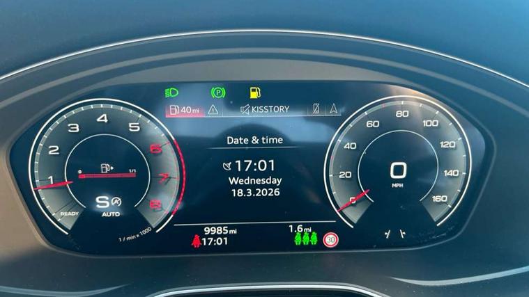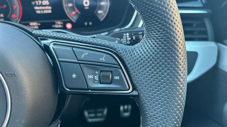 Audi connect safety and service (e-call), Audi drive select (Auto, Comfort, Dynamic, Efficiency and Individual), Audi smartphone interface, Audi virtual cockpit - 12.3" full colour digital instrument cluster, vehicle/engine speed, Radio/media information+Driver assistance systems, Automatic start-stop system with coasting functionality and efficiency programme, Bluetooth interface, Camera based traffic sign recognition, Electro-mechanical power steering, Email, calendar and text messages displayed via MMI, Front and rear parking sensors, Lane departure warning, MMI nav+ with MMI touch - 10.1" high resolution MMI display, touch sensitive, 3D map, route/country info, dynamic route guide, personal route assist, Power operated tailgate, Rear view camera, Service interval indicator, Voice control system, 54 litre fuel tank, Sports suspension lowered by 23mm, 8 passive loudspeakers, CD player, DAB digital radio reception, Two additional USB ports for rear passenger in rear centre console, Two SDXC card slots, Auto dimming door mirrors, Auto dimming rear view mirror, Body colour bumpers, Body colour door handles, Body colour front spoiler lip, Body colour side sill trim, Body coloured door mirrors, Electric adjustable heated door mirrors, Electric folding door mirrors, Electric front windows, Front fog lights, Honeycomb structure radiator grille in grained matt black, Kerb-view function for passenger side, LED headlights and rear lights with LED daytime running lights, LED side indicator lights integrated into door mirrors, LED third brake light, Matt aluminium silver tailpipe trim, Privacy glass, Rain and light sensors, Rear side wing doors, Rear wiper, S line badges on front wings, S line front and rear bumpers with side skirts, S Line rear diffuser in matt anthracite black with trim strip in matt aluminium silver, Side air inlets in grained matt black with matt aluminium silver inlay, Variable front intermittent wipers, Windscreen with acoustic glazing, 3 seat bench in 2nd row, 3 spoke high multifunction leather sport steering wheel with paddle shfit and S badging perforated leather grips, 4 way electric lumbar support for driver and front passenger, 40/20/40 split folding 3 seater rear bench seat, Adjustable steering column, Black carpets, Black cloth headlining, Black perforated leather gearknob, Contrast stitching on seats, steering wheel and gear lever gaiter, Deluxe 3 zone electronic climate control, Front centre armrest, Front head restraints, Front/rear floor mats, Heated front seats, Illuminated front door sill trim with S logo, ISOFIX child seat mounting and top tether, Luggage compartment mat, Manual seat adjustment, Rear centre armrest, Rear headrests, Single front passenger seat, Stainless steel pedals and footrest, Sunvisors with vanity mirrors, LED interior light pack - A5/RS5, 3x3 point rear seatbelts, 6 airbags - Driver, front passenger, curtain and side airbags, Attention and drowsiness assist, Electromechanical parking brake, Electronic Stabilisation Control (ESC) including ABS, ASR and EDL, Front passenger airbag deactivation, Height adjustable front seatbelts, Hill hold assist, Manual child lock in rear doors, Multi collision brake assist, Pop-up bonnet for pedestrian protection, Pre sense city, Seatbelt monitoring, Tyre pressure warning, Variable restraint system, Warning triangle and first aid kit, Anti theft alarm system, Anti theft wheel bolts, Immobiliser, Keyless Go, Remote central locking, Matt brushed aluminium inlays, Tool kit, Tyre repair kit,