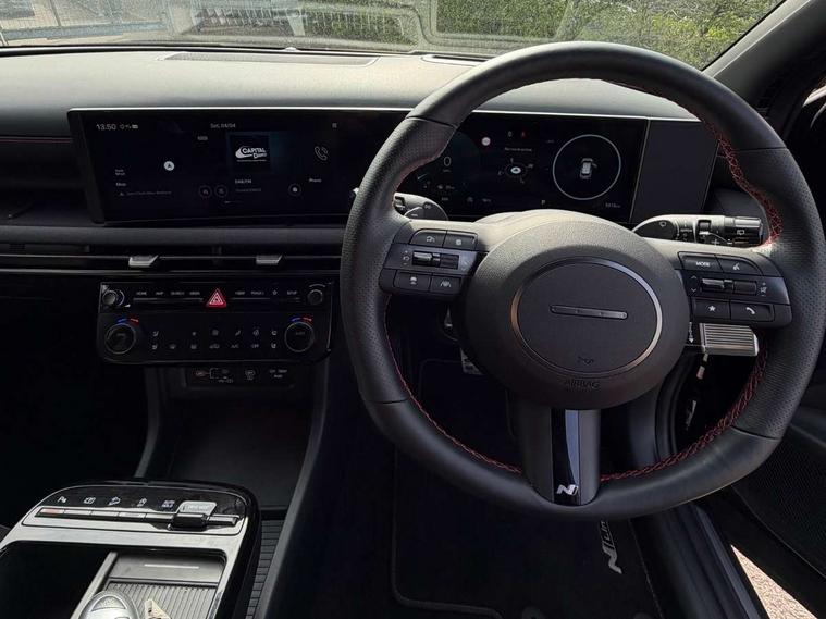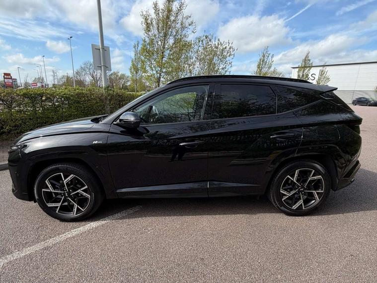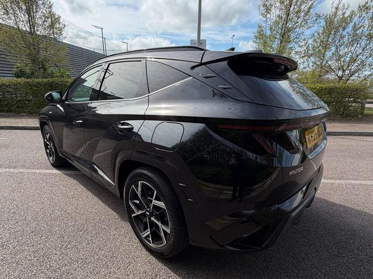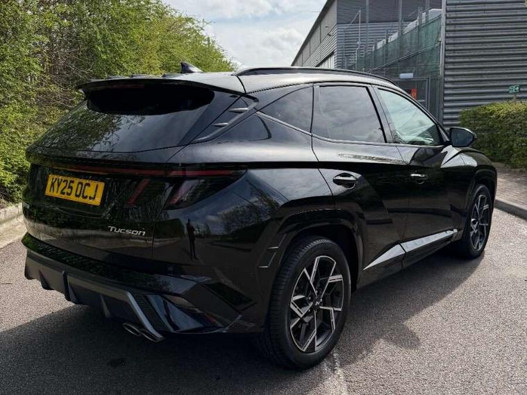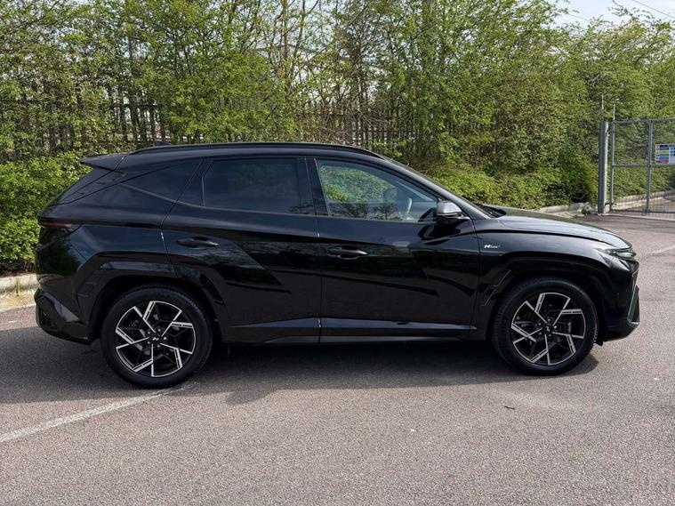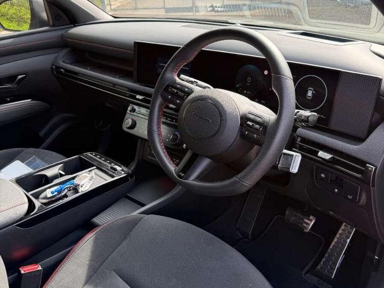 12.3" LCD display with driver's supervision instrument cluster, 12.3" widescreen navigation with bluelink and mapcare, Blind spot view monitor, Bluetooth system, Cruise control - smart adaptive speed control with stop and go function, Digital clock, Drive mode selector, Driver attention warning, E-call, Emergency stop signalling system, Forward Collision Avoidance Assist (FCA) - Car, Pedestrian and Cycle, Forward Collision Avoidance Assist Junction Turning (FCAJX), Front and rear parking sensors, Front, rear and side parking distance warning, Head up Display, Highway Driving Assist (HDA), Hyundai road side assistance, Intelligent speed limit assist, Lane follow assist, Lane keep assist, Over the air updates(OTA), Parking collision avoidance assist (PCA), PAS, Rear camera and guidance parking system, Rev counter, Smart power tailgate, Surround view monitor, Tailgate open warning light, Trip computer, Trip odometer, Voice recognition, Water temperature gauge, Windscreen washer fluid sensor and warning indicator, Wireless Apple CarPlay/Android Auto, Wireless phone charging pad, Shift by Wire Gear Selector (SBW), 2 front and 2 rear USB-C ports, DAB Digital radio, Krell premium audio system with 8 speakers and subwoofer, Steering wheel mounted audio/phone controls, Adjustable intermittent front windscreen wipers with aero wiper blade, Auto dimming rear view mirror, Automatic defog system, Automatic headlights with dusk sensor, Automatic windscreen wipers with rain sensor, Body colour bumpers, Body colour door mirrors with integrated indicators, Body colour exterior door handles, Body coloured wheel arches, Electric tilt/slide panoramic sunroof, Electrically adjustable, heated and power folding door mirrors, Follow me home headlights, Front and rear electric windows with anti-trap mechanism and one touch control, Front fog lights, Glossy black bumper mouldings, LED 3rd brake light, LED daytime running lights, LED rear lights, Matrix LED headlights, Positioning Lights - LED, Privacy glass - Rear windows and tailgate, Rear side wing doors, Rear wash/wipe with intermittent wipe setting, Roof rails, Soft touch rear door paneling, Tinted glass with windscreen shade band, Trailer stability assist, 12V power outlets in front console and luggage compartment, 3 seat bench in 2nd row, 40/20/40 split folding rear seat, 64 colours interior ambient lighting, Adjustable head restraints (Up and down), Cupholders in rear armrest, Door courtesy lights, Driver and passenger sunvisors with illuminated LED vanity mirrors, Driver's seat electric adjustments, Front and rear door pockets, Front armrest with storage box, Front centre console and door bottle holders, Front passenger's seat electric adjustments, Heated front seats, Heated rear seats, Heated steering wheel, Height/reach adjustable steering column, Illuminated/air conditioned glove compartment, ISOFIX child seat anchorage points attached on outer rear seats, Leather wrapped steering wheel and gear knob, Leather/faux textile suede upholstery, LED interior lighting, Luggage compartment lighting, Luggage cover, Luggage hooks, Luggage net, Map and reading lights, Metal pedals, Rear seat remote folding function, Rear side window sunblind, Reclining rear seats, Retractable load cover, Single front passenger seat, Sunglasses holder, Three zone climate control, Touch sensitive climate controls with temperature dials, TUCSON branded metal door scuff plate, Underfloor boot compartment, Ventilated front seats, Wireless charging with armrest, N Line design package - Tucson, N Line interior design package - Tucson, Trailer wiring package - Tucson, 3x3 point rear seatbelts, Active bonnet, Airbag - Front, front side, curtain and centre front airbags, Anti-lock brake system (ABS), Brake assist function, Childproof rear door locks, Curtain airbag roll over sensor, Downhill brake control, Electric parking brake, Electronic stability control, Front and rear seatbelt reminder, Front passenger airbag deactivation switch, Front seatbelt pretensioners, Hill start assist control (HAC), Multi-Collision braking, Outer rear seatbelt height adjustment, Seatbelt height adjustment for front seats, Traction control, Tyre pressure monitoring system with individual tyre pressure display - TPMS, Vehicle stability management, Deadlocks, Immobiliser, Locking wheel nuts, Remote control central locking, Smart key with keyless entry and engine start/stop button, Speed sensitive auto door locking, Thatcham category 1 alarm, 19" Alloy wheels, Tyre repair kit,