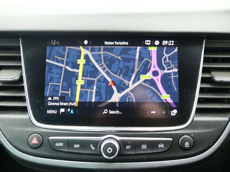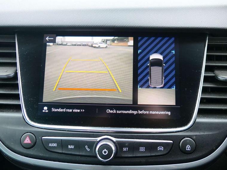 3.5" monochrome instrument colour display, Audible lights on warning, Bluetooth connectivity, Cruise control + speed limiter, Digital clock with automatic RDS time adjustment, Instrumentation - Speedometer, rev counter, low fuel gauge warning light + water temperature gauge warning light, shift up/down indicate light, Lane departure warning system, Multi function trip computer, Multimedia sat nav pro with 8" colour touchscreen, AM/FM, Bluetooth streaming, Bluetooth mobile phone portal, apple CarPlay/Android Auto + 6 speakers, Outside temperature display with ice warning, Refridgerant low indicator, Service interval indicator, Speed sensitive power steering, Speed sign recognition, Vauxhall connect, Wireless charger, Front wheel drive, 2 x USB connections, DAB Digital radio, Steering wheel mounted audio/phone/cruise controls, 2 speed wipers/wash wipe/intermittent wipe, Alloy effect front and rear skid plates, Automatic anti dazzle rear view mirror, Automatic headlamp levelling system, Automatic high beam control with cornering light, Automatic lighting control, Black radiator grille with chrome bar, Body colour door handles, Body colour front and rear bumpers, Chrome effect upper window moulding, Dark tinted rear side windows + tailgate window, Electrically adjustable and heated door mirrors, Front power windows with express up/down and anti-pinch function, Hazard warning lights, Headlamps for left side traffic, Heated rear window, Integrated tailgate spoiler, Intermittent rear wash/wipe, LED daytime running lights, LED front fog lights, LED Headlights, LED side repeat indicators, LED tail lights, Rain sensitive windscreen wipers, Rear fog lights, Rear power windows with express up/down and anti-pinch function, Reversing light, Side window demist vents, Solar heat absorbing windscreen and windows, Welcome lighting, Windscreen demist vents, 12v power outlet - front, 2 way adjustable front passenger seat, 2 way front passive headrests, 3 spoke flat bottomed leather covered steering wheel with bezel decoration, 4 way electrically adjustable lumbar support for drivers seat, 60/40 split folding rear seat backrest, Adjustable rear seat backrest, Air recirculation facility, Ambient lighting, Anti submarining ramps in front seats, Cabin particulate filter - removes dust, airborne particles and pollen, Centre console, Driver and front passenger illuminated vanity mirrors with flip up covers, Driver's seat armrest, Drivers ergonomic active seat with 8 way manual adjustable driver seat , height, reach and backrest, Dual zone electronic climate control, Fade up/fade down on interior lighting, Four adjustable facia vents, Front door pockets with bottle holders, Front map reading lights, Fully carpeted luggage area, Glovebox with lid, Height adjustable front/rear head restraints, Illuminated load area, Interior courtesy light operated by all doors, Isofix system on outer rear seats, Jet black premium leather side bolsters, Luggage compartment cover, Multi-speed fan with Illuminated control, Open storage compartment in centre console, Passenger assist handles, Reach + rake adjustable steering column, Rear door pockets with bottle holders, Rear floor ventilation ducts, Rear reading lights, Satin chrome effect bezel on steering wheel, Seat cushion extension, Siena leather/vinyl upholstery, Storage pockets on front seat backs, Two drinks holders in centre console, Rear view camera plus pack - Crossland, Winter pack - Crossland, 3x3 point rear seatbelts, 6 airbags - Driver and co-driver front, front side, head curtain roof airbags, front and rear row coverage airbags, ABS, Child locks on rear doors, CSC - Cornering stability control, Deactivate switch for side impact airbags, Deformation zones front and rear, Dual seatbelt pretensioners on front seats, EBD - Electronic brakeforce distribution, Energy absorbing steering column, Engine drag torque control, ESP + traction control, Front and rear seatbelt unfastened audible warning and warning light, Front side impact airbag, HBA (Hydraulic Brake Assist), Hill start assist, Hydraulic brake boost, Inertia reel lap and diagonal seatbelts for all seats, Passenger airbag deactivate switch, Rear seat belt pretensioners, Reinforced passenger safety cell, Seatbelt load limiter, Side impact protection beams, Smart seatbelt reminder for front and rear seats, Tyre pressure monitoring system, 2 remote folding keys, Electronically protected audio equipment, Engine immobiliser, Locking wheel nuts, Remote central deadlocking, Remote control central locking activation switch on driver door, Remote control central locking operates on doors, tailgate and fuel filler flap, Remote security alarm system, Visible vehicle identification number, Black facia with silver trim insert, Black trim inserts on front doors, Cluster black with chrome rings, 17" five twin spoke diamond bi colour alloy wheels,