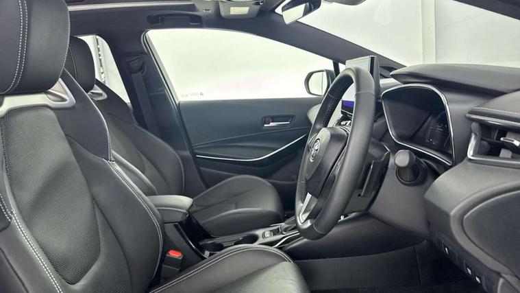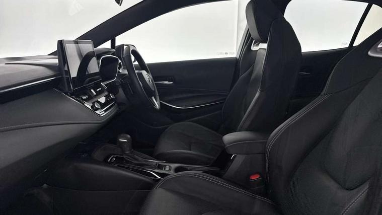 10.5" Multimedia display screen, Blind spot monitor and safe exit assist, Bluetooth telephone connectivity, Connected car functionality upgrade, tracker, remote status and e-care, Drive mode select (Eco, Normal), E-call, Electrically assisted power steering, EV drive indicator, Front and rear parking sensors with auto brake, Full Digital 12.3" TFT Digital Combimeter, Head up Display, Key reminder warning, Lane Departure Alert (LDA) switch on steering wheel, Memory on adjustable speed limiter, MyT connected services, Proactive driving assist (PDA), Rear cross traffic alert, Reversing camera, Smart entry and push button start, Smartphone integration with Apple CarPlay and wired android auto, Tailgate, Toyota remote services, Toyota smart connect navigation, Wireless charger, Gasoline particulate filter, Vehicle Stability Control (VSC), AM/FM radio, DAB Digital radio, Front USB-C in centre console, Front USB-C in dashboard, JBL Premium sound system with 8 speakers, Rear USB-C device charger, Smart voice assist/ Voice recognition, USB and Aux in connectors + 12V front outlet, Adaptive high beam system (AHS), Anti-jam protection on power windows, Auto headlight levelling system, Auto up and down function on all power windows, Automatic folding mirrors, Automatic headlights with high beam assist, Black centre and side air vents, Black metallic meshed front grille, Black toyota logo in front, Body coloured bumpers, Body coloured door mirrors, Body coloured front spoiler, Body coloured outside door handles, COROLLA alloy door scuff plates, Electrochromatic mirror, Follow me home headlights, LED daytime running lights, LED front fog lights, LED High mounted stop light, LED multi beam headlights, LED rear combi lights with LED lightguide, Noise reduction layer on windscreen, Piano black diffuser, Power adjustable heated door mirrors, Power front windows, Power rear windows, Privacy glass with UV filter, Rain sensing wipers, Rear bumper decoration with chrome plated inserts, Rear side wing doors, Rear under guard with chrome ornament, Rear window defogger, Rear window wiper, Reverse tilting door mirrors, Roof spoiler, Satin chrome insert on front air vents, Satin chrome insert on front door assist grips, Satin chrome inserts on rear passenger air vents, Shark fin antenna, Tailgate release with push button, Time adjustment on intermittent wiper, Turning signal integrated indicators in door mirrors, Unique grille pattern, Unique lower skirt, Unique side rocker with black insert, UV-filter on driver and passenger windows, 2 Shopping bag hooks in luggage compartment, 3 rear headrests, 3 seat bench in 2nd row, 3 spoke leather steering wheel with satin insert + gear knob, 4 tie down hooks in luggage compartment, 60/40 split folding rear seat, Adaptive cruise control (ACC) switch on steering wheel, Adjustable speed limiter switch on steering wheel, Audio, multimedia and telephone switches on steering wheel, Black armrest on centre console box, Black gear shift console, Boot light, Boot underfloor storage, Centre room light, Driver and front passenger personal light, Driver and passenger assist grip, Driver and passenger seatback pockets, Driver and passenger sun visor with mirror and light, Dual zone automatic air conditioning with ECO mode switch, Front and rear cup and bottle holders, Front door pockets, Front head restraints, Front passenger seat, Front sliding synthetic leather armrest, Heated seats, Illuminated entry system in room lamp, ISOFIX seat fixing (2 fixings on rear outer seats), Leather gear shift with satin chrome on gear shift console, Manual height adjustable for driver and front passenger seat, Manually tilt with sliding driver and front passenger seat, Nanoe-X air purifier, Paddle shifts, Parcel shelf, Perforated leather upholstery, Pollen filter, Power window switches with satin chrome inserts, Rear air conditioning, Rear armrest with 2 cupholders, Rear passenger coat hooks (2), Remote air conditioning, Satin chrome inside door handles, Satin chrome surround on heater control panel, Satin chrome surround on speedometer, Sliding armrest on centre console box, Slow opening glovebox with lights, Sports seats, Textile floor mats, Tilt/telescopic steering column, Voice recognition switch on steering wheel, Whiplash Injury Lessening (WIL) feature (active headrest) for seats, White ambient lighting on open tray and front cup holder, Toyota safety sense 3 pack - Corolla, 3x3 point rear seatbelts, Adjustable driver and front passenger seat belt extender to top anchor point, Anti lock braking system + Electronic brake force distribution, Brake assist function, Child locks on rear doors, Downhill Assist Control (DAC), Electronic parking brake, Emergency brake light signal (EBS), Front passenger airbag on/off switch, Front seatbelt reminder, HAC - Hill start assist control, Rear seat belt reminder, Seatbelt pretensioners and force limiters, Supplemental restraint system (SRS) 7 airbags - dual driver, dual side curtain, side impact and driver knee airbags, Traction control, Tyre pressure warning system, Acoustic vehicle alert system (AVAS), Alarm with motion sensor and immobilizer, Power passenger window lock, Remote central locking + deadlocks, Satin chrome dash trim, Soft touch texture on upper dashboard, Stitching on lower dashboard, Stitching on upper dashboard, 18" Dark grey machined face 5 double spoke alloy wheels, Tyre repair kit, Unique wheel finish with red wheel cap,