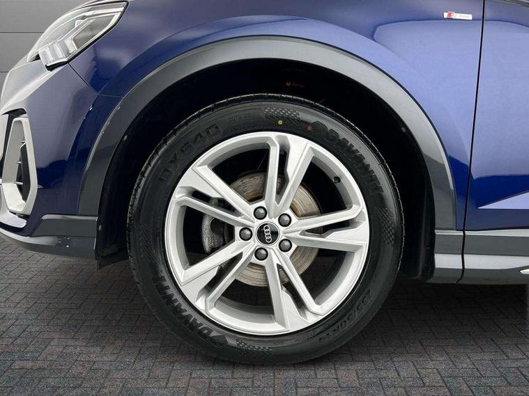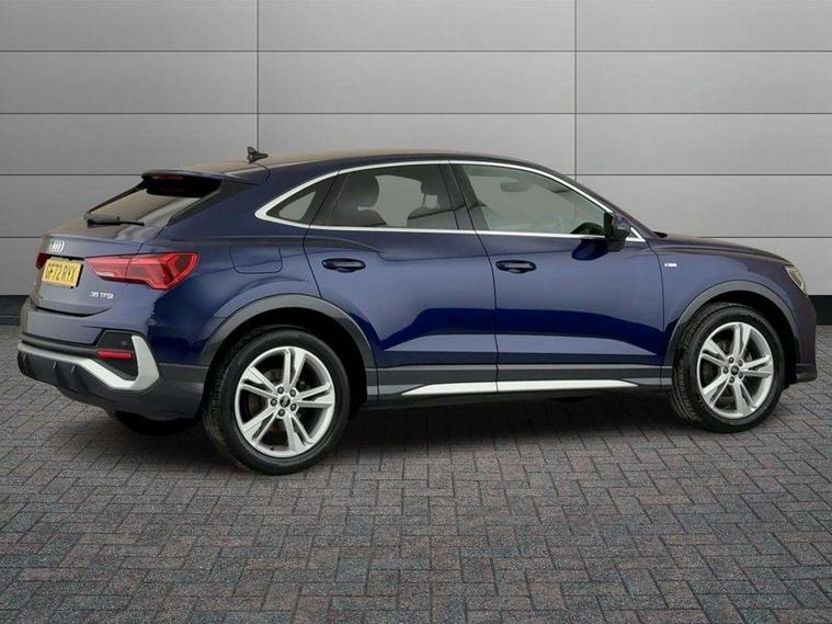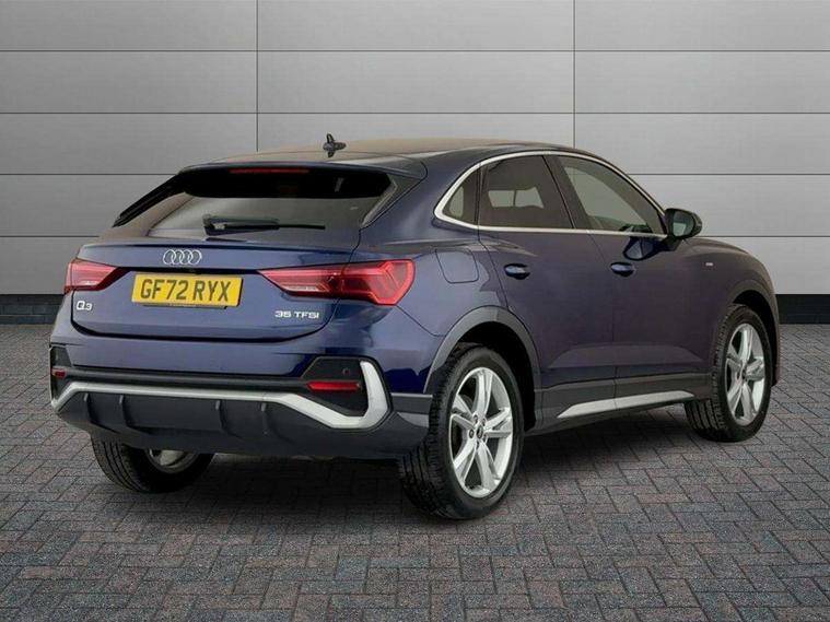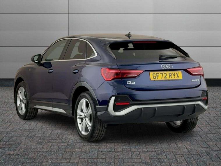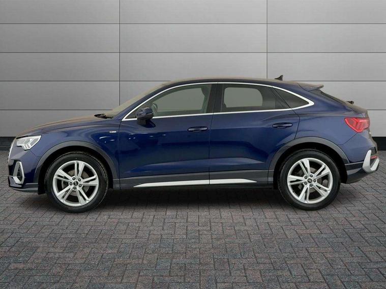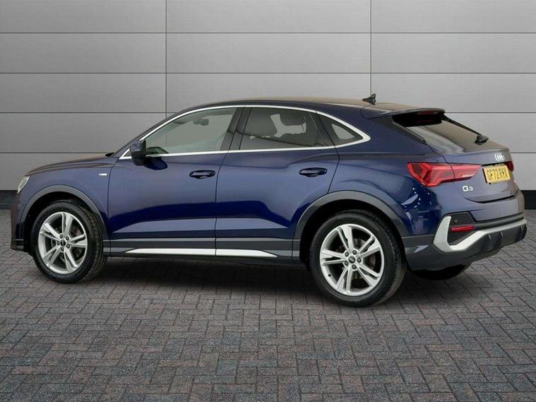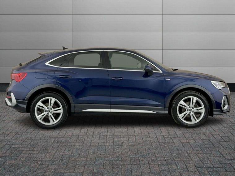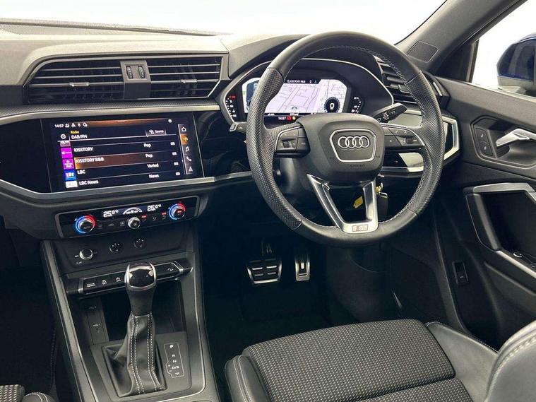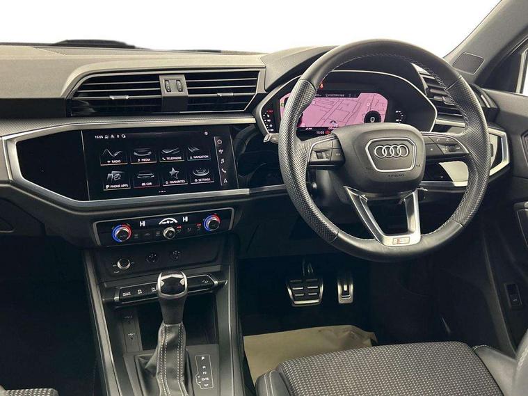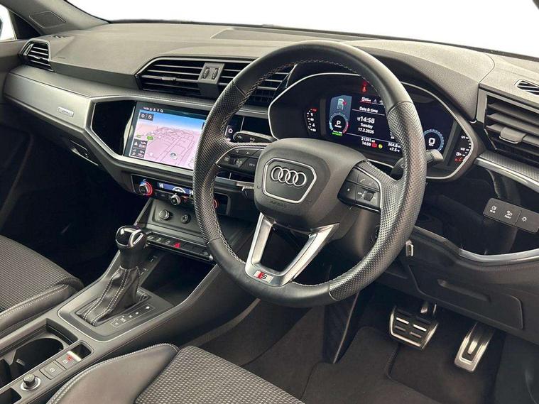 Audi drive select, Audi lane departure warning, Audi Virtual Cockpit - 10.25" display, Bluetooth interface, Camera based traffic sign recognition, Legal emergency call, MMI Navigation Plus with high resolution 10.1 inch touchscreen colour display, Power operated tailgate, Progressive steering, Service interval indicator, Smartphone interface includes wireless Apple carplay/Android Auto, Start stop system with recuperation, Voice control system with natural language interaction, Sports suspension, 2 USB-C ports with charge and data functions, 6 passive loudspeakers, DAB digital radio module, Acoustic windscreen, Aluminium window trim, Auto dimming frameless rear view mirror, Diffuser grille in grained matt black, Diffuser trim in selenite silver, Electrically folding, adjustable and heated door mirrors with integrated LED side indicators and kerb view function for passenger side, Front and rear electric windows, Front fog lights, Front side air inlets in selenite silver, Front underbody protection in manhattan grey paint finish, Grille surround in aluminium silver matt, High gloss black finish B and C pillars, LED Dynamic rear indicators, LED headlights with LED daytime running lights, LED rear lights, LED third brake light, Privacy glass dark tinted rear and rear-side windows (from B-pillar backwards), Radiator grille in anthracite black with inlay in matt aluminium silver, Rain and light sensors, Rear side wing doors, Rear underbody protection in matt black, Rear wiper, S line badges on front wings, S line front and rear bumpers and side skirts in contrasting Manhattan grey paint finish, Side skirt insert in matt Platinium grey, Variable front intermittent wipers, 12V socket in rear centre console, 3 seat bench in 2nd row, 3 spoke leather multifunction steering wheel features S badging and grips in perforated leather with contrast stitching, 40:20:40 folding with manual adjustment for 60:40 forwards/backwards position and backrest angle, Adjustable rear seat bench/backrest with centre armrest and cupholder, Black cloth headlining, Dual zone electronic climate control, Front and rear black floor mats with contrast stitching, Front and rear headrests, Front and rear roof module including reading lights, Front centre armrest, Glove compartment lighting, Height and reach adjustable steering wheel, Illuminated door sill trims with S logo, ISOFIX child seat mounting for front passenger with airbag deactivation and outer rear seat including top tether attachment point for outer rear seats, Luggage compartment light right in white, Luggage compartment sill protection in stainless steel, Manual front seats with height adjustment, Perforated leather gearknob, Single front passenger seat, Stainless steel pedals, Ambient lighting pack - Q3, Non smoking pack - Q3, 3x3 point rear seatbelts, 6 airbags - Driver, front passenger, curtain and side windows, Audi pre-sense front with pedestrain and cyclist recognition, Electrically operated child locks on rear doors, Electromechanical parking brake, Electronic stabilisation control including ABS, ASR and EDL, Front seatbelt reminder, Hill descent control, Hill hold assist, Pre sense basic, Seatbelt monitoring, Tyre pressure warning, Warning triangle and first aid kit, Anti theft alarm, Anti theft wheel bolts, Immobiliser, Remote central locking, Aluminium look interior elements, Black dashboard, Dark matt brushed aluminium inlay, Detail dashboard around MMI touch colour display in glass look, black with surround in aluminium look, Leatherette door armrest,