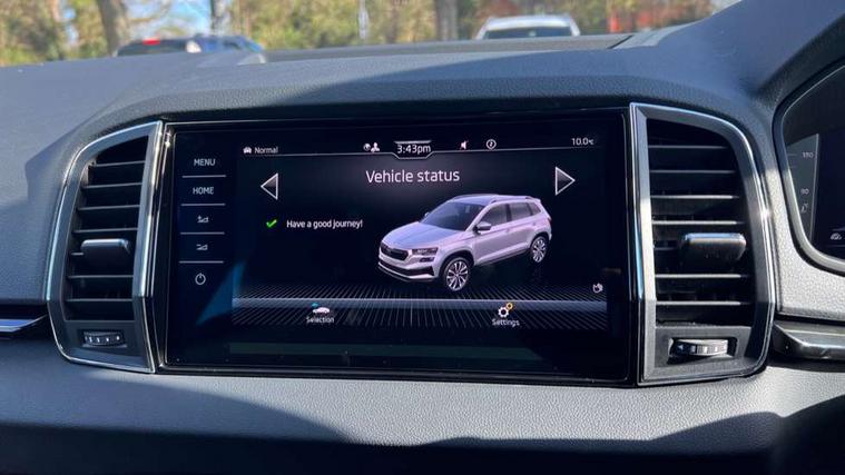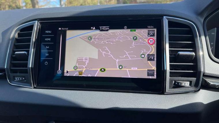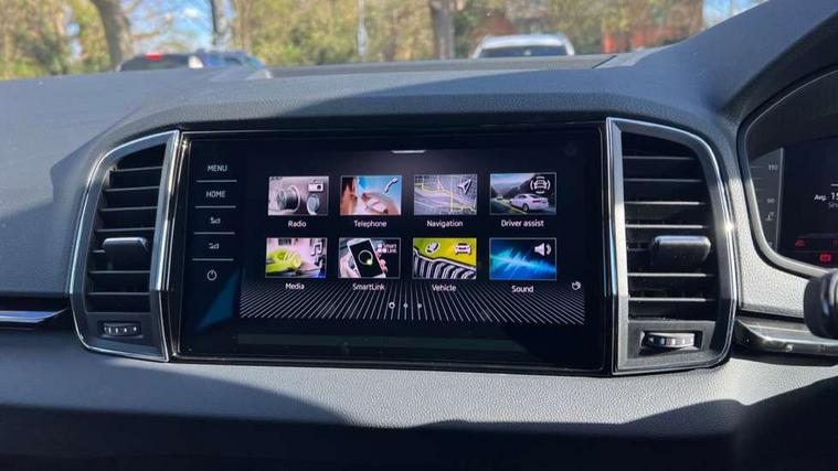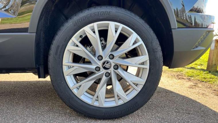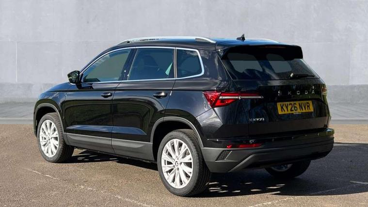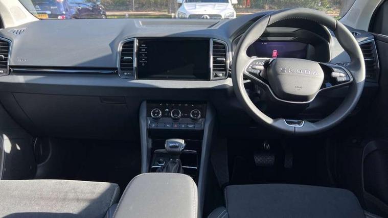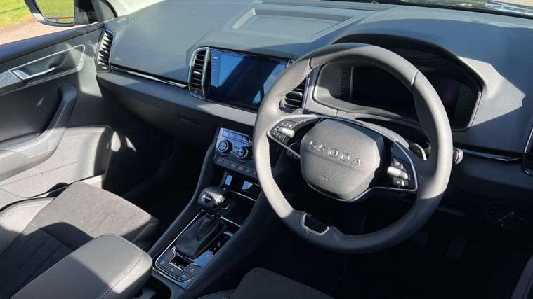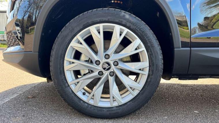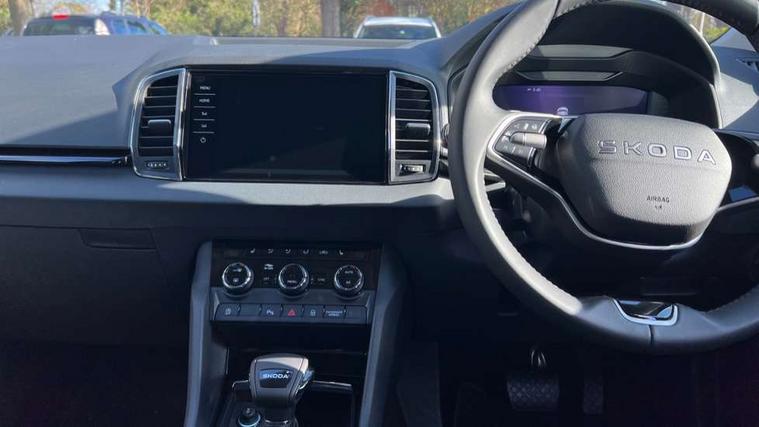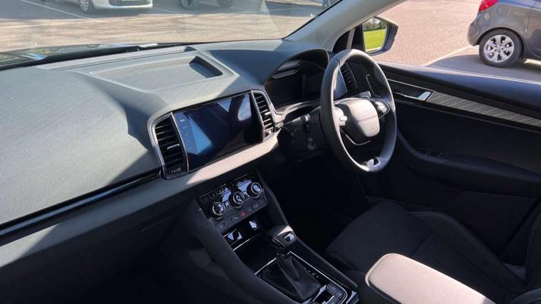 Advanced driver attention and drowsiness monitor, Drive Mode Selection including ECO function, Electro-mechanical PAS, Emergency services call system, Outside temperature gauge, Sensor for driver assistance systems, Service interval indicator, SmartLink wireless for Apple and wired for Android, Start/stop system with regenerative braking, Traffic sign recognition, USB C Port x 2 in front centre console, Virtual Cockpit - 10.25" digital display, Virtual pedal with electrically operated boot door, Wireless smartphone charging, DAB radio with Bluetooth, USB connection, Acoustic glass, Aero front windscreen wipers with intermittent function, Auto dimming rear view mirror with light and rain sensors, Black electric window control buttons, Body colour door mirrors and handles, Electric front and rear windows with child proof lock, Extended rear roof spoiler, Heated rear windscreen, LED daytime running lights, LED rear lights with high functionality welcome effect and dynamic indicators, Light assistant (coming/leaving home/tunnel light), Plastic scuff plates in door apertures, Privacy glass, Rear side wing doors, Rear window wiper with washer system and intermittent control, Safety reflectors on front doors, Third brake light, Unique dark chrome design logo on alloy wheels, 1.5 litre bottle holders in driver and front passenger door panels, 12V socket in boot, 12v socket in front centre armrest with storage compartment and rear air vents, 2 spoke leather heated multifunction steering wheel with DSG paddles, 2 x Tablet holder, 3 rear height adjustable headrests, 3 seat bench in 2nd row, 4 foldable roof handles with rear coat hooks, Black floor carpet, Cargo elements in boot, Chrome inner door handles, Decorative door sills with KAROQ badging, Foldable hooks in the boot, Front head restraints, Height adjustable front three point seats belts with tensioners, Height/reach adjust steering wheel, Ice scraper, Illuminated glovebox, Illuminated luggage compartment, Interior noise suppression, Isofix child seat preparation for front passenger seat, Isofix child seat preparation outer rear, Manual lumbar support for front seats, Pearl grey interior ceiling, Pen holder, Pollen filter, Rear backrest release from boot, Rear boot cover, Rear package tray, Rear reading lights, Rear seats fixed folding and divided 60:40, Rubbish bin door, Safety vest holder, Single front passenger seat, Skoda lettering on steering wheel, Storage box in upper central dashboard closed, Sunvisors with illuminated vanity mirrors, Textile floor mats, Ticket holder, Columbus pack - Karoq, Design Pack - Karoq, Non Smokers pack, Parking pack - Karoq, Automatic door unlocking in case of crash, Automatic fuel cut off in case of crash, Driver airbag, Electronic parking brake with auto hold function, Emergency rear braking signal, ESC (incl. ABS+MSR+ASR+EDS+HBA+DSR+RBS+MKB), Front side airbags, Head airbags, Hill hold control, Knee airbags, Passenger airbag with switch-off function, Pedestrian monitor, Power operated child safety locks, Seatbelt reminder signalisation and pretensioner for all seats, Three point seatbelts rear, Two tone horn, Tyre pressure monitor, Alarm with interior monitoring, back up horn and tilt sensor with safe function, Electronic engine immobiliser, Keyless entry and start/stop, Remote central locking with 2 remote folding keys, Black centre console, Chrome framed air vents, Satin black dashboard, Anti-theft wheel bolts protection, Breakdown and tool kit,