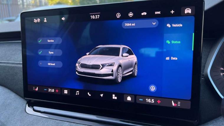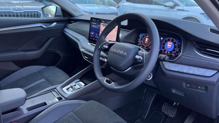 1x USB Typc C port in rear view mirror, 4x USB Type C ports - 2x in front centre console and 2x in rear (45W), Drive mode selection, Driver fatigue sensor, eCall emergency system, Electro-mechanical power steering, Front assist system, Traffic sign recognition, Turn Assist, Virtual Cockpit - 10.25" digital display, Voice control system, Wireless charging (15W) with cooling function, Wireless SmartLink for Apple CarPlay and Android Auto, 13" touchscreen display with navigation, DAB Digital radio, Aero front windscreen wipers with intermittent function, Auto dimming rear view mirror, Body colour bumpers, Body colour door mirrors and handles, Chrome grille surround, Chrome roof rails, Chrome strip in lower front bumper, Chrome window surrounds, Electric front and rear windows, Electrically adjustable, heated, folding and driver side auto-dimming door mirrors, Heated rear windscreen, High level third brake light, Ice scraper in fuel cap, LED daytime running lights, LED Headlights, Logo projection in front doors, Rain and light sensors, Rear fog light on one side and reversing lights on both sides, Rear privacy glass, Rear side wing doors, Rear spoiler, Rear window wiper, 12 volt socket in boot, 3 rear headrests, 3 seat bench in 2nd row, 4 foldable roof handles, Front head restraints, Heated front seats, Illuminated glovebox, Interior door handles in dark chrome, Jumbo Box storage, Luggage compartment lighting x2 lights, Mechanical rear seat release from boot, Single front passenger seat, Steering wheel in black leather with black stitching, Storage compartments in left and right of boot, Sun visors with mirrors, Sunglasses storage, Ticket holder, Two-spoke leather multi function steering wheel with paddles, Umbrella in door panel, Unsplit rear bench seat, split folding backrest with centre armrest with cupholder, Comfort package - Octavia Estate, Simply clever package premium - Octavia, 3x3 point rear seat belts, Alarm with interior monitoring, tilt sensor and back up horn, Curtain airbags and front side airbags, Driver and front passenger airbags, Drivers knee airbag, Electronic parking brake, ESC including ABS, EBV, MSR, ASR, EDS, HBA, DSR, Front central airbag, Hill hold assist, ISOFIX on front passenger seat and outer rear seats, Passenger airbag deactivate switch, Three point seat belts in front and rear, Two tone horn, Tyre pressure monitor, Visual and acoustic seat belt reminder, Warning reflectors in front door, Anti-theft wheel bolts, Keyless entry and start/stop, Remote central locking, Chrome air vent surrounds,