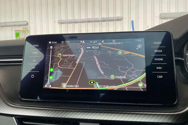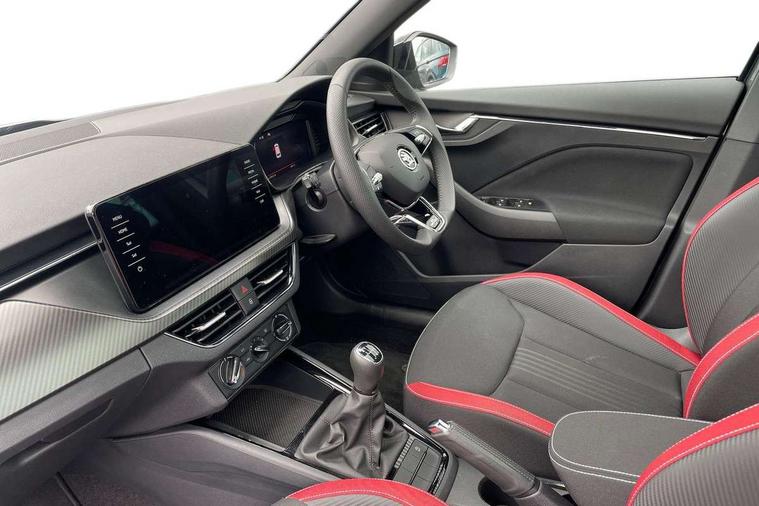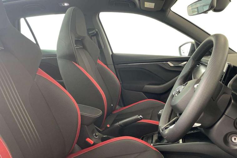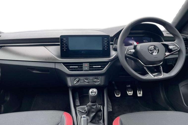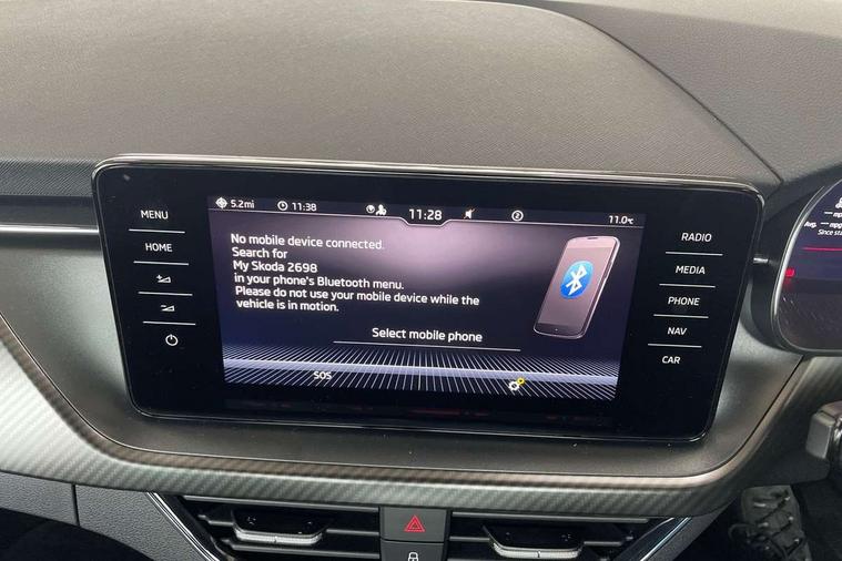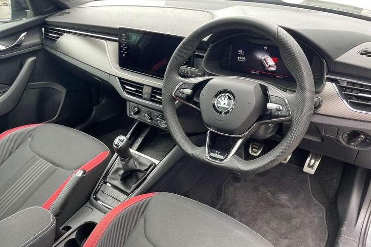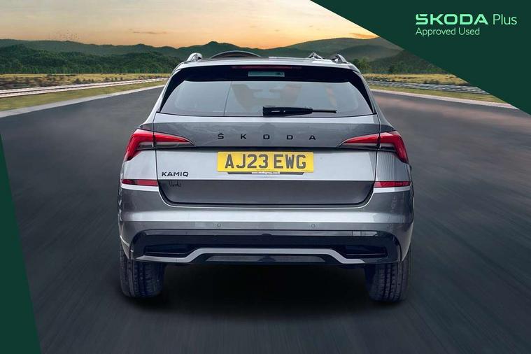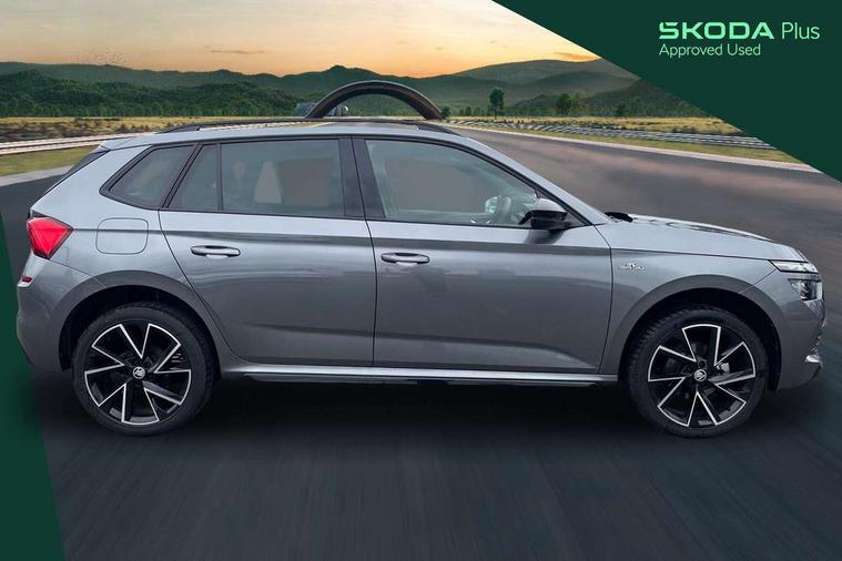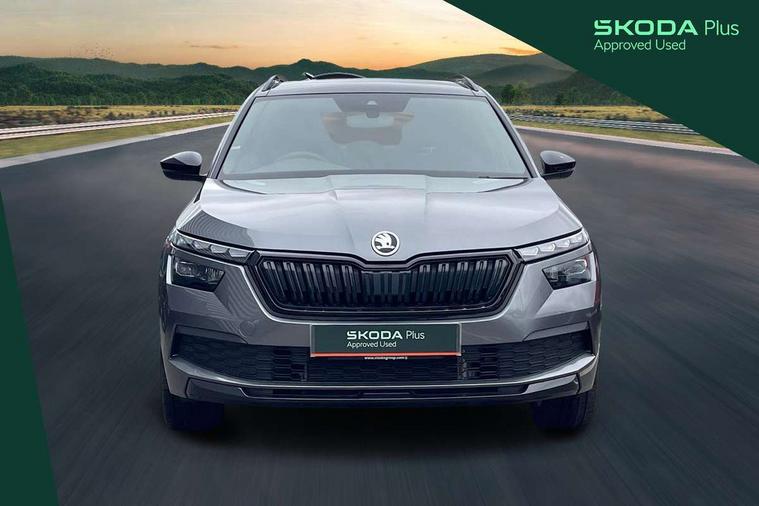 Amundsen satellite navigation with 9.2" glass colour touchscreen display, web radio, voice control and traffic sign recognition, Bluetooth system, E-call, Front assist system, Gesture control, PAS, Service indicator, Speed limiter, Wireless Smartlink for Apple CarPlay (wired for Android Auto), 8 Speakers, Auxiliary input socket, DAB Digital radio, Black door mirrors, Black radiator grille, Black rear diffuser, Body colour bumpers, Body colour door handles, Body colour roof spoiler, Boot lettering in black, Chrome grille surround, Dimming rear view mirror with black surround, Electrically adjustable and heated door mirrors, Fixed panoramic sunroof with black roof rails, Front and rear electric windows, Front sport bumper, Full LED headlights with adaptive front light system, cornering function, fog lights and dynamic indicators, Headlight range control, Heated rear window, High functionality rear led lights with dynamic indicators, KAMIQ Door sills, LED daytime running lights, LED third brake light, Light sensors, Monte carlo plaque, Privacy glass, Rain sensor, Rear fog lights, Rear side wing doors, Rear wiper, 12V Accessory socket in centre console, 3 seat bench in 2nd row, Aluminium pedals, Black ceiling for black/beige interior, Black roof lining, Chrome inner door handles, Cloth upholstery, Front head restraints, Glove compartment with illumination, Ice scraper, Isofix child seat fittings on outer rear seats, ISOFIX on front passenger seat, Leather gear lever, Manual lumbar support for front seats, Rake/reach adjustable steering wheel, Reading lights, Single front passenger seat, Sports seats, Sun visors with illumination on front passenger, Textile floor mats, Third rear headrest, Top tether for front passenger seat, Umbrella in driver's door, 3x3 point rear seatbelts, Airbags - driver and front passenger, ESP, Front passenger airbag deactivation switch, Front side airbags with curtain airbags, Hill hold control, Manual parking brake, Manual rear child locks, One tone horn, Rear disc brakes, Seatbelt reminder for driver an co-driver, Traction control, Tyre pressure monitor, Anti-theft alarm system with interior monitoring, backup horn, towing protection and remote central locking with SAFE system, Anti-theft wheel bolts, Electronic engine immobilizer, Chrome air vent surrounds, 18" Vega alloy wheels in black,