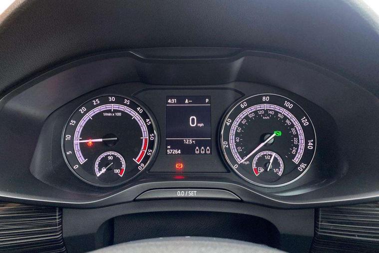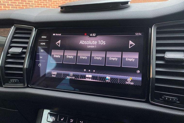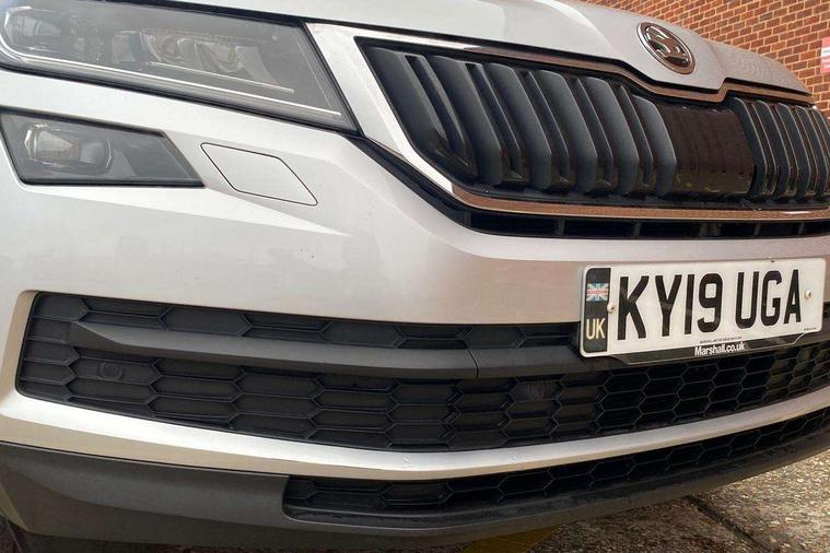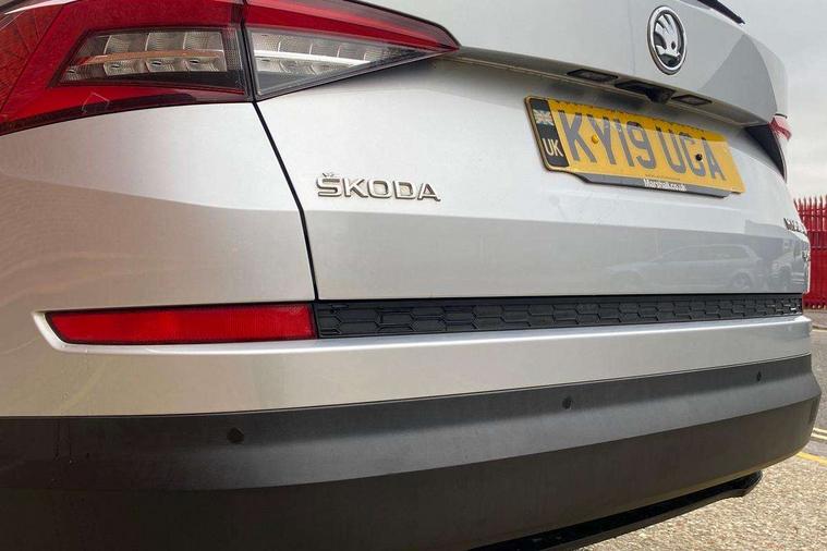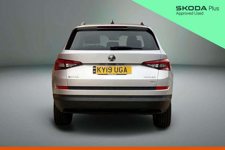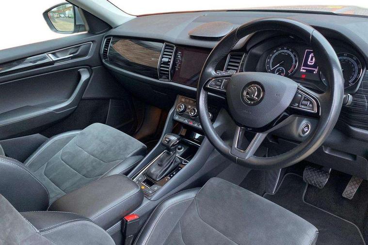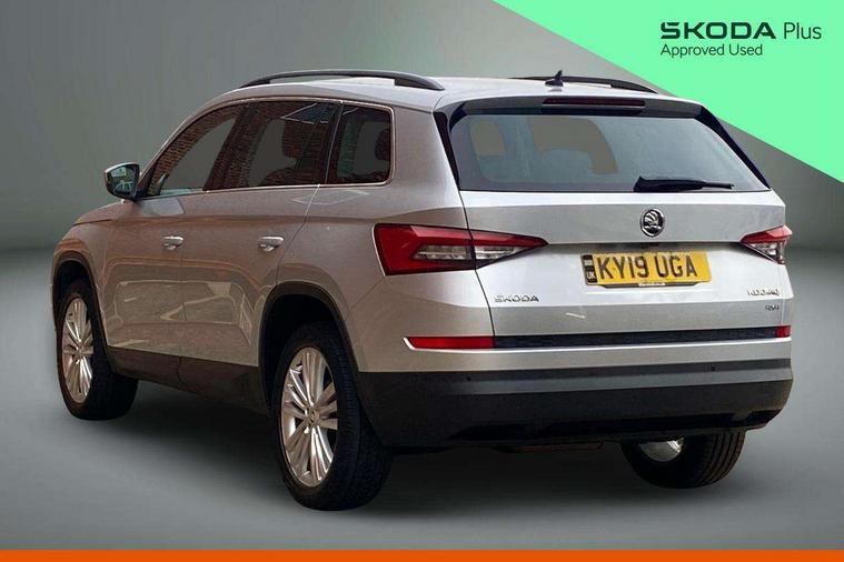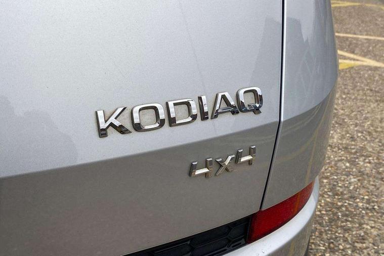 Bluetooth system, Columbus satellite navigation with 9.2" touch screen and integrated Wi-Fi + WLAN, Digital voice enhancement, ECO Stop/start function, Exterior temperature indicator, SmartLink plus, Speed limiter, Bolero Radio, DAB Digital radio, DVD System, USB and SD card connectivity, Aero front windscreen wipers with intermittent function, Aero rear window wiper, Auto dimming rear view mirror, Automatic activation of hazard warning lights, Black wheel arch surrounds, Body colour bumpers, Body colour door mirrors and handles, Electric front and rear windows, Electrically adjustable heated foldable and auto dimming door mirrors with boarding spots, Front and Rear door steps, Full LED Headlights with adaptive front light system and LED daytime running lights, Headlight washers, Heated rear window, Invisible tailpipe, LED front fog lights with static cornering light function, LED rear fog light, LED third brake light in rear spoiler, Light assistant (coming home/tunnel light), Radiator grille frame in matt black with chrome strip, Rain and light sensors, Rear spoiler, Safety reflectors on front and rear doors, Sunset privacy glass, Tinted windows, 12V socket in boot, 2 rails with 2 hooks including 4 hooks for net programme, 4 foldable roof handles with rear coat hooks, 4 lashing points on luggage floor, 60:40 foldable rear seat with sliding adjustment and backrest angle adjustment, Bottle holders in door panel in the 1.5 litre front and 1 litre rear, Cargo storage compartments, Centre console with open storage box, cup holder and 12V socket, Chrome headlight control button, Chrome interior door handles, Coat hooks on B pillar, Covered storage compartment on driver side, Drawers under driver and front passenger seats, Front centre armrest with storage compartment, Front/rear courtesy lights, Gear shift lever with chrome frame and black gloss insert, Height adjustable front headrests, Illuminated and cooled glovebox, Illuminated luggage compartment, Isofix system on outer rear seats, Manually adjustable steering column, Net programme in boot (1x horizontal Net, 2x vertical Nets), Overhead glasses storage compartment, Passenger side net compartment on centre console, Pollen filter, Rear centre armrest with cupholders, Removable lamp in luggage compartment, Roll up luggage compartment cover with intermediate position, Small Bags on the inner sides of the front backrests, Small pockets on the inner side of the front backrests, Storage compartment in lower middle Instrument panel, illuminated with closing, Sunvisors with illuminated vanity mirrors, Three rear height adjustable headrests, Ticket holder on A Pillar, Umbrella in door panel, Chrome pack - Kodiaq, Auto door release and activation of warning lights, Driver and passenger airbags, Electronic parking brake with hill hold control, Emergency rear braking signal, ESC (incl. ABS+MSR+ASR+EDS+HBA+DSR+RBS+MKB), Front and rear three point safety belt on all seats, Front assist includes AEB city/urban, Front side airbags, Fuel cut off safety device, Head and knee airbags, Passenger airbag deactivate switch, Rear disc brakes, Safety vest holder in door, Seat belt reminder for all seats, Tailgate unlocking from outside, Two tone horn, Tyre pressure monitor, Warning lights in front doors, Alarm with interior monitoring and tilt sensor with safe function, Immobiliser, Keyless entry and start system (KESSY), Remote central locking,