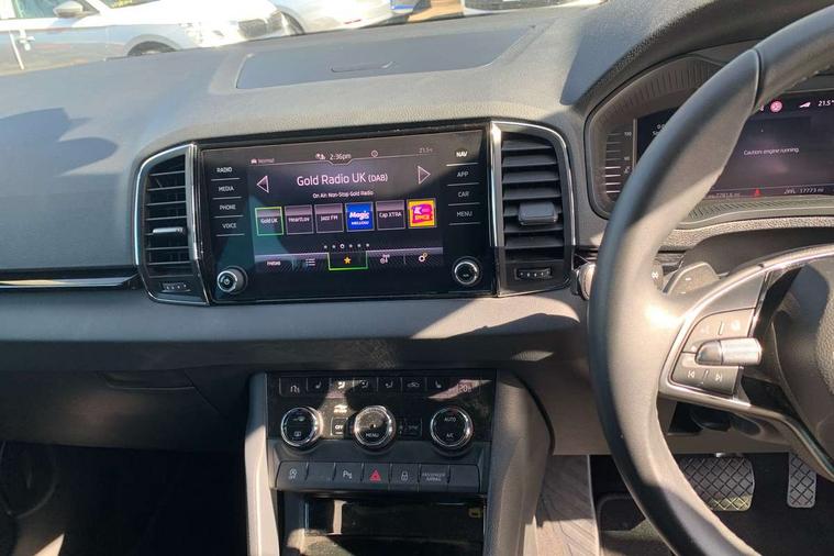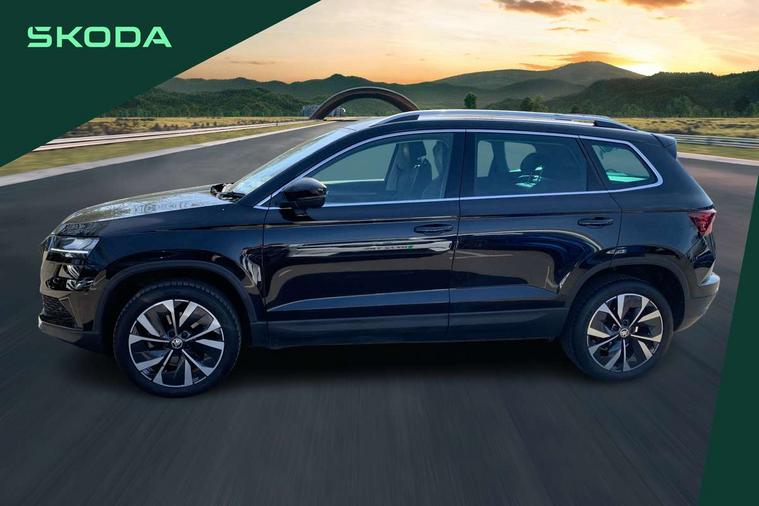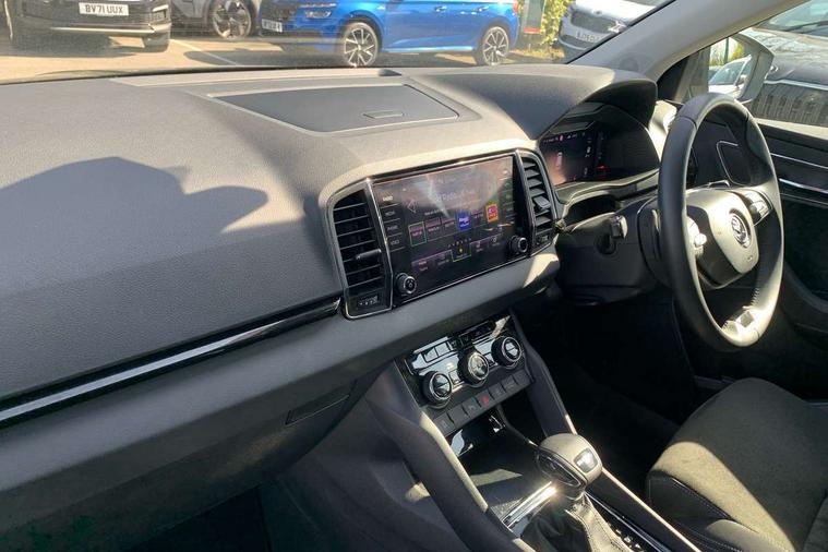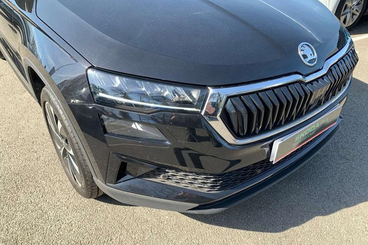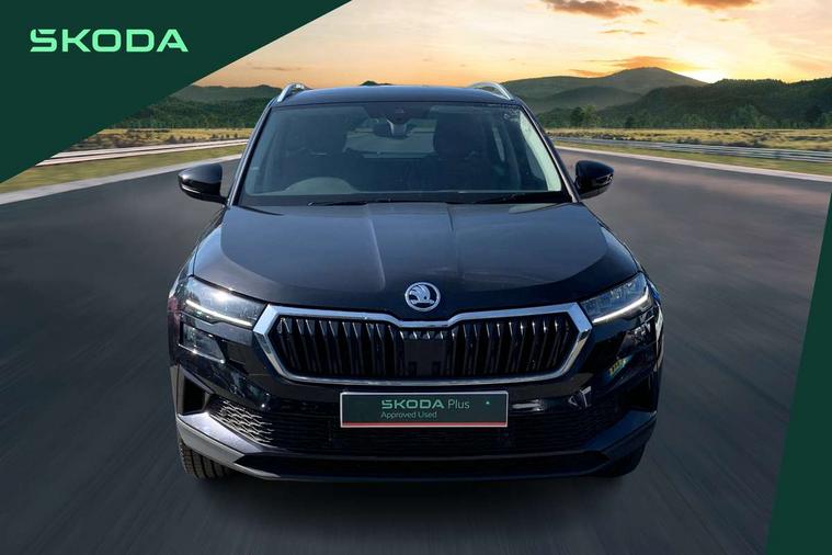 8" Digital display, Advanced driver attention and drowsiness monitor, Emergency services call system, Outside temperature gauge, Sensor for driver assistance systems, Service interval indicator, SmartLink wireless for Apple and wired for Android, Start/stop system with regenerative braking, USB C Port x 2 in front centre console, Virtual Cockpit - 10.25" digital display, Wireless smartphone charging, DAB radio with Bluetooth, USB connection, Acoustic glass, Aero front windscreen wipers with intermittent function, Auto dimming rear view mirror with light and rain sensors, Black electric window control buttons, Body colour door mirrors and handles, Electric front and rear windows with child proof lock, Heated rear windscreen, LED daytime running lights, LED rear lights with high functionality welcome effect and dynamic indicators, Light assistant (coming/leaving home/tunnel light), Plastic scuff plates in door apertures, Privacy glass, Rear side wing doors, Rear spoiler, Rear window wiper with washer system and intermittent control, Safety reflectors on front doors, Third brake light, 1.5 litre bottle holders in driver and front passenger door panels, 12V socket in boot, 12v socket in front centre armrest with storage compartment and rear air vents, 2 spoke leather heated multifunction steering wheel with DSG paddles, 2 x Tablet holder, 3 rear height adjustable headrests, 3 seat bench in 2nd row, 4 foldable roof handles with rear coat hooks, Black floor carpet, Chrome inner door handles, Foldable hooks in the boot, Front head restraints, Height adjustable front three point seats belts with tensioners, Height/reach adjust steering wheel, Ice scraper, Illuminated glovebox, Illuminated luggage compartment, Interior noise suppression, Isofix child seat preparation for front passenger seat, Isofix child seat preparation outer rear, Manual lumbar support for front seats, Pearl grey interior ceiling, Pen holder, Pollen filter, Rear boot cover, Rear reading lights, Rubbish bin door, Safety vest holder, Single front passenger seat, Storage box in upper central dashboard closed, Sunvisors with illuminated vanity mirrors, Textile floor mats, Ticket holder, Design Pack - Karoq, Non Smokers pack, Parking pack - Karoq, Automatic door unlocking in case of crash, Automatic fuel cut off in case of crash, Driver airbag, Electronic parking brake with auto hold function, Emergency rear braking signal, ESC (incl. ABS+MSR+ASR+EDS+HBA+DSR+RBS+MKB), Front side airbags, Head airbags, Hill hold control, Knee airbags, Passenger airbag with switch-off function, Pedestrian monitor, Seatbelt reminder signalisation and pretensioner for all seats, Three point seatbelts rear, Two tone horn, Tyre pressure monitor, Alarm with interior monitoring, back up horn and tilt sensor with safe function, Electronic engine immobiliser, Keyless entry and start/stop, Remote central locking with 2 remote folding keys, Black centre console, Chrome framed air vents, Satin black dashboard, Anti-theft wheel bolts protection, Breakdown and tool kit,