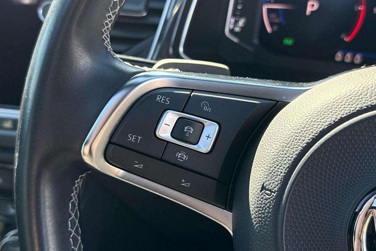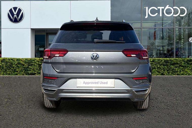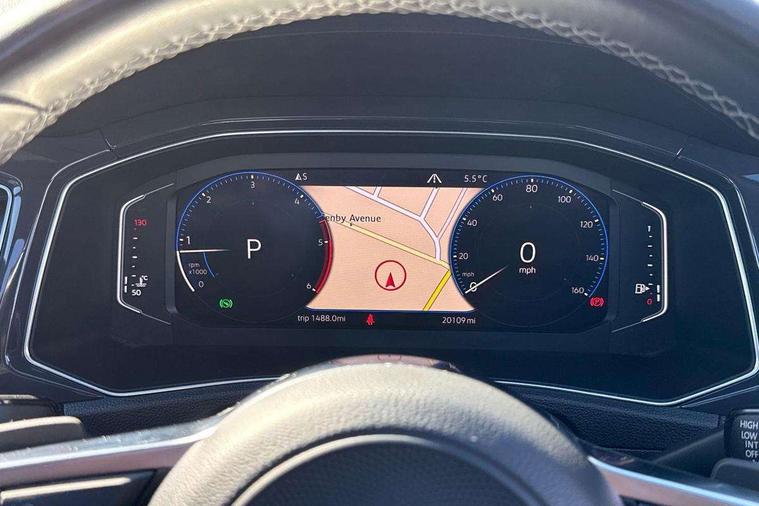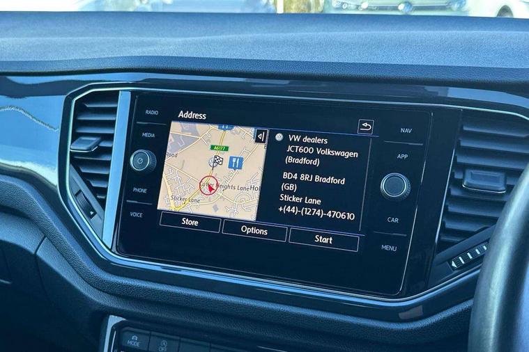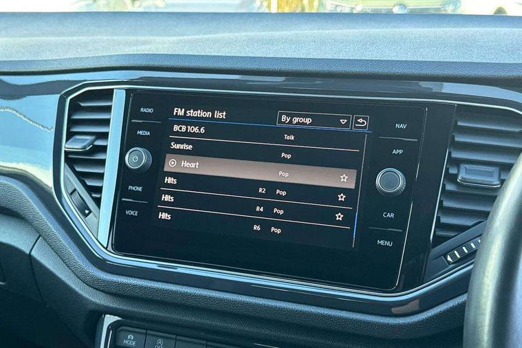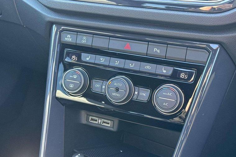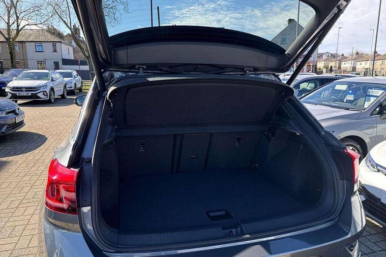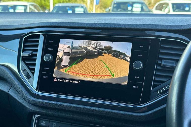 2 USB connection charging sockets, Active Info Display, 10.3" high resolution TFT dash display screen with customised information, Adaptive cruise control, App-Connect, Automatic start/stop system, Bluetooth telephone and audio connection for compatible devices, Car information display, Car-Net Security and Service, Discover navigation, 8" touch screen navigation/infotainment system with Car-Net, European map, CD/radio, 2D/3D map and speed limiter, Driver alert system with audible and visual fatigue detection system, Driver profile selection, Front assist, radar sensor controlled distance monitor, city emergency braking + predictive pedestrian protection, Lane assist, Multifunction computer with visual gear change recommendation for fuel consumption, Progressive power assisted steering, Service interval indicator, Think blue trainer driver tips and journey analysis, Voice activation, Warning sound and light for doors and tailgate open, Warning sound and light for front seatbelts unfastened, Battery regeneration during braking, Misfuel prevention device for diesel engine, Bluetooth - Simultaneous pairing of 2 compatible mobile devices, DAB Digital radio, Dynamic navigation based on TMC+, Multi device interface (MDI) with USB connection, Music playback - MP3, WMA and AAC files, Premium USB cable in choice of either Apple or Android smartphone compatibility, SD card slot, SMS functionality - read, compose and send SMS messages using touch-screen display, Three route options - Fast, Short, Eco, Title and cover art display, Auto dimming interior rear view mirror, Automatic hazard lights activation under emergency braking, Black grained lower door protectors, Black grained wheel arches, Body colour door handles, Body colour rear roof spoiler, Chrome effect left and right trapezoid exhaust tailpipe fascia surround, Chrome trim on upper and lower radiator grille, Door mirror integrated indicators, Dusk sensor, Electrically foldable, adjustable and heated door mirrors with puddle lights and reverse activated kerb-view adjustment on passenger's door mirror, Front and rear electric windows, Front fog lights with static cornering function, Front windscreen wiper with intermittent wipe and 4 position delay, Fully galvanised body, Heated rear window, High level 3rd brake light, LED darkened rear light clusters, LED rear number plate lights, Manual coming/automatic leaving home lighting function, Rain sensor, Rear tinted glass from B-pillar backwards approx 65% tinted, Rear windscreen washer and wiper with interval delay, 12V socket in centre console storage area, 2 LED front and rear reading lights, 3 rear head restraints, 4 load lashing points in luggage compartment, Aluminium pedals, Ambient lighting in front footwell and light strips below trim in front doors, Black decorative sleeve on gear handles, Black roof lining and sun visors, Carbon flag cloth upholstery, Climate control - 2 zone electronic air conditioning with automatic air recirculation and allergy filter, Drawer under drivers seat, Front + rear carpet mats, Front centre armrest with storage compartment, longitudinal and height adjustable and two rear air vents, Front cupholders x 2, Front footwell illumination, Front seat back storage pockets, Front sport seats, Glovebox, Height adjustable front seats, Height/reach adjust steering wheel, Illuminated vanity mirrors, Instrument lighting, white adjustable panel illumination, Interior light delay, Isofix easy fit child seat preparation for 2 outer rear seats, Load through provision with single cup holder when folded down, Luggage compartment cover, removable, Luggage compartment lighting, R Line badge, Split folding rear seat backrests with centre armrest, Storage compartment in left and right luggage area, Storage compartment in rear doors, Storage compartments in driver and front passenger doors, Three spoke multi function leather trimmed steering wheel and gear knob including paddle shift, Unique R Line door sill protectors, R line styling pack - T-Roc, Winter pack - T-Roc, 3 rear three point seatbelts, ABS, Driver and front passenger safety-optimised head restraints, Electronic parking brake with auto hold, ESC with EDL, ASR, EDTC and trailer stabilisation function, Front and rear curtain airbags, driver and front passenger airbags with passenger deactivation switch and front side impact airbags, Rigid safety cell with front and rear crumple zones, Three point height adjust front seatbelts + pretensioners, Tyre pressure loss indicator, Ventilated front and rear disc brakes, Volkswagen roadside assistance, Alarm with remote central locking and interior protection, Electronic engine immobiliser, Remote central locking with 2 remote folding keys, Shadow steel decorative inserts in dash and door panel, 19" Suzuka alloy wheels with low rolling resistance tyres and anti wheel bolts, Steel space saver spare wheel,