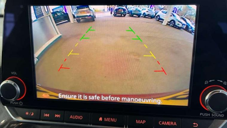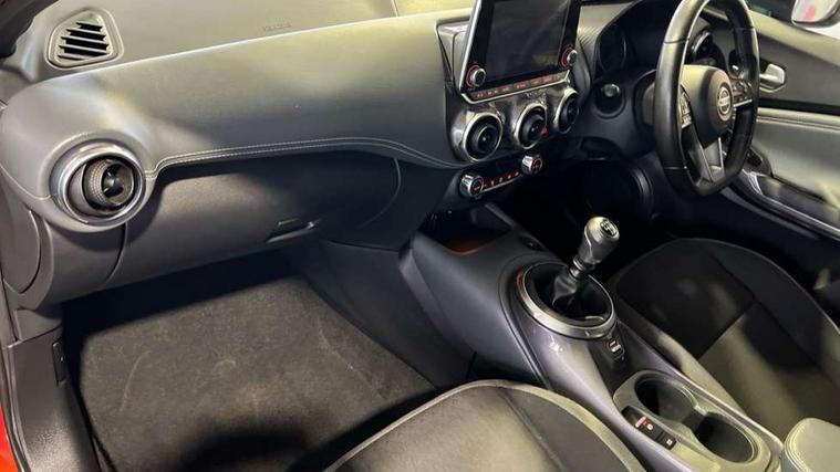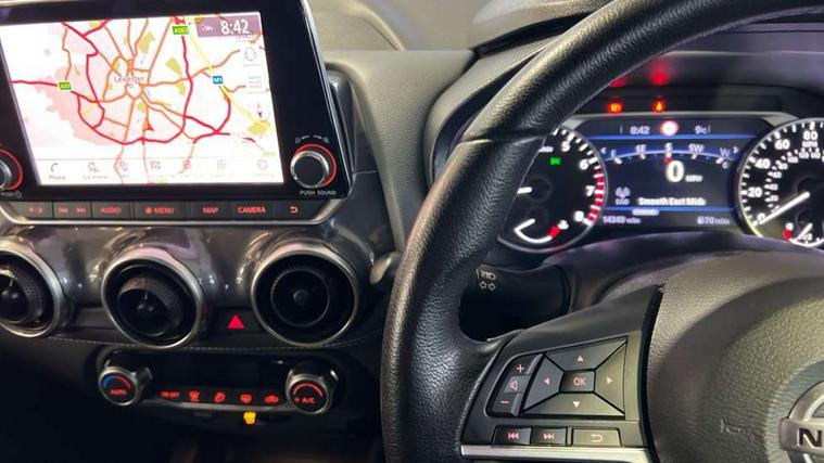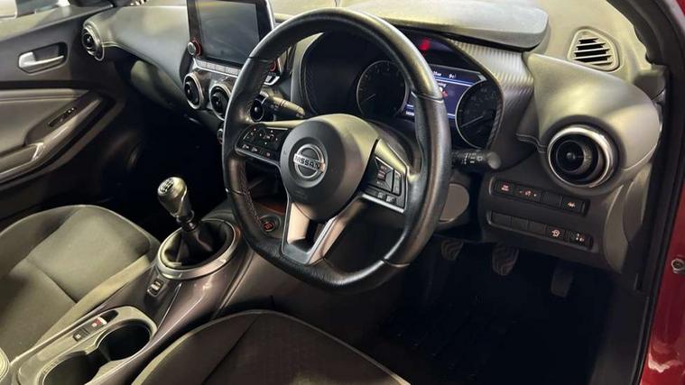 7" full colour TFT screen combimeter, 8" infotainment colour display with touch screen, Apple CarPlay and Google Android auto, Drive modes select (Eco, normal and sport), Emergency and breakdown call, Front parking sensor, Idle start/stop system, Intelligent lane intervention, Lane departure warning system, Nissan connect nav with TomTom traffic, Nissan connect services and Wifi connection, Outside temperature sensor, Power Steering, Rear parking sensor, Traffic sign recognition, Trip computer, Voice recognition switch on steering wheel, Gasoline particulate filter, 6 speakers, Bluetooth system, USB, Aux-in and 12V socket, DAB Digital radio, Rear console USB port, Auto dimming interior rear view mirror, Automatic hazard signal with emergency stop signal, Body colour bumpers, Body colour door handles, Electrically adjustable door mirrors with integrated indicators, Follow me home headlights, Front and rear electric window with one touch driver window, Heated and auto folding door mirrors, High beam assist, LED daytime running lights, LED headlamps, LED rear fog lamp, LED rear lamps, Rain sensor windscreen wipers, Rear privacy glass, Rear spoiler, Rear wiper, Three blink turn signal, 3 height adjustable rear headrests, 60/40 split folding rear seat, Automatic climate control, Card holder on driver sunvisor, Cloth upholstery, Driver and passenger sliding and reclining seats, Driver side rear coat hanger, Driver/passenger sunvisors and vanity mirrors, Front and rear cabin lighting, Front armrest, Front door pockets with bottle holders, Front head restraints, Front/rear passenger grab handles, Grey synthetic leather kneepad, Height adjustable driver's seat, Internal chrome door handles, Leather gearshift knob, Leather steering wheel, Luggage board, Luggage space lighting, Monoform sporty seats, Multifunction steering wheel, Rear door bottle holders, Telescopic steering wheel adjustment, Two cupholders in front centre console, Two rear isofix child seat anchorage points with top tether, Welcome light and console tray ambient lighting, ABS with EBD and brake assist, Active ride control, Active Trace Control, Driver and passenger airbags, Driver and passenger side airbags, Electric handbrake with auto hold function, Electronic Stability Programme (ESP), Front and rear curtain airbags, Height adjustable seatbelts, Hill start assist, Intelligent emergency braking with pedestrian and cyclist recognition, Seatbelt reminder for driver/front passenger and rear seats, Single tone horn, Three 3 point rear seatbelts, Traction control, Tyre pressure monitoring system, VDC Dynamic Vehicle Control, Ventilated rear brake discs, Alarm, Immobiliser, Intelligent Key with push button starter, Remote central locking,