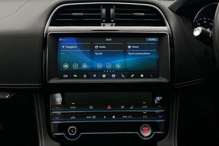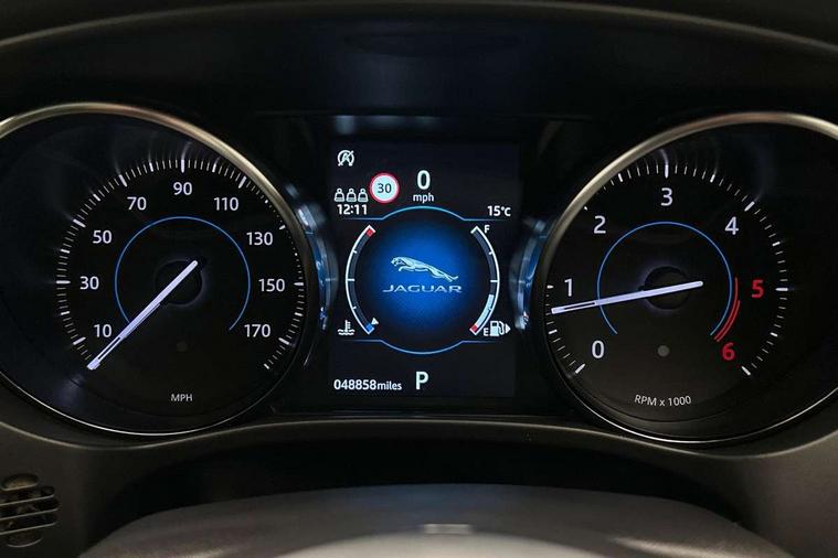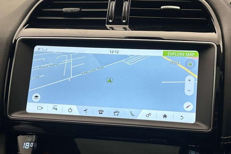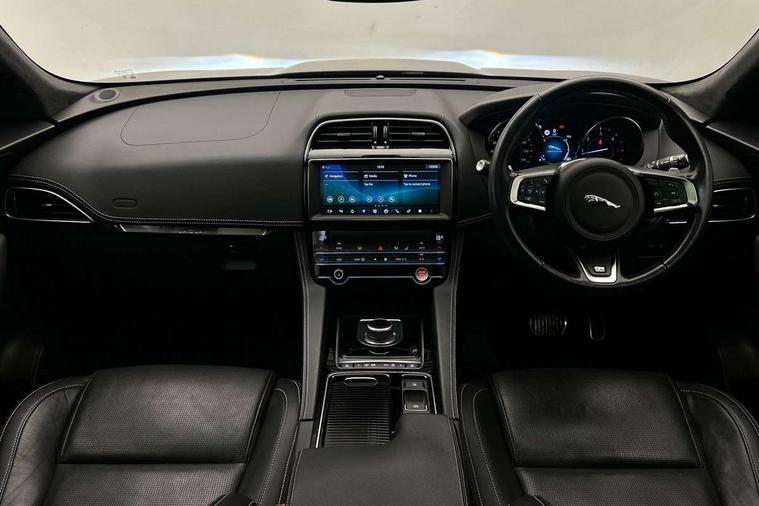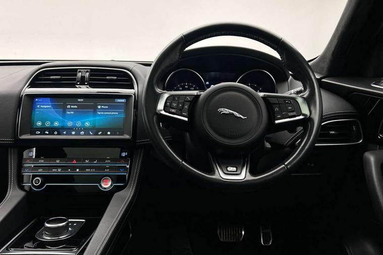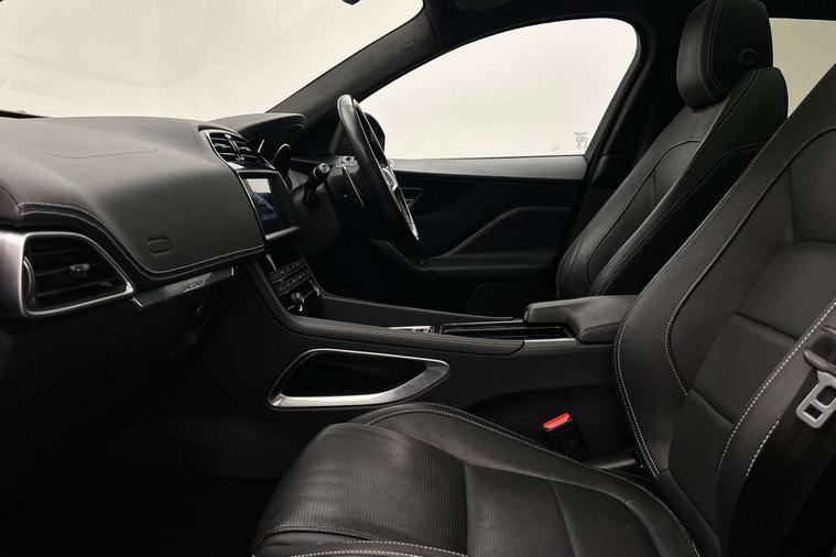 Analogue dials with 7" central TFT display, Android Auto, Apple car play, Driver condition monitor, Eco driving style assistant, Electric power assisted steering, InControl remote premium, JaguarDrive control, Lane departure warning system, Lane keep assist with driver alert control, Outside temperature gauge, Pro services and wifi hotspot, Push button starter, Rotary shifter, Service interval indicator, Speed proportional steering, Start up sequence with movement in dials and lighting, Traffic sign recognition with adaptive speed limiter, Trip computer, Voice control system, 8 speed automatic transmission, All terrain progress control, All Wheel Drive (AWD), Open differential with torque vectoring by braking, AM/FM radio, Bluetooth connectivity including audio streaming, DAB Radio (Digital Audio Broadcasting), Dynamic volume control, InControl apps, InControl protect, 3 flash lane change indicators, Antenna roof pod in gloss black, Approach Illumination, Auto dimming rear view mirror, Automatic headlights, Body colour bumpers, Body colour door mirrors, Electric front/rear windows with one touch/auto up/down, Front fog lights, Green tinted heat insulating glass, Headlight power wash, Heated rear window with timer, LED tail lights, Non acoustic front windscreen, R-sport body kit, R-Sport front bumpers, R-Sport rear bumpers, Rain sensor windscreen wipers, Rear fog lights, Rear metal tread plates, Rear wiper, Single sided twin tailpipes with 75mm finishers, Trailer stability assist, Variable front intermittent wipers, 12V power point front, 3 rear headrests, 40:20:40 split folding rear bench seat, Bright metal foot pedals, Centre armrest console, Door sill tread plates, Fold flat front seats, Front centre armrest with storage compartment, Front headrests, Glovebox finisher with jaguar script, Hooks in loadspace, Illuminated glovebox, Illuminated luggage compartment, Interior front door handles with separate locking switches, ISOFIX on outer rear seats, Jaguar sense, Luggage tie downs in loadspace, Multifunction steering wheel, Overhead lighting console, Passive front head restraints, Perforated grained leather upholstery with contrast stitching, Premium carpet mats, R-Sport branded soft grain leather sport steering wheel, Rear air vents, Rear armrest with twin cupholders, Rear centre headrest, Reversible boot floor, Satin chrome gearshift paddles, Sunvisors with illuminated vanity mirrors, Twin front cupholders with cover, 3x3 point rear seatbelts, ABS, All surface progress control (ASPC), Anti-whiplash front headrests, Autonomous emergency braking (AEB) with forward facing camera, Brake pad warning light, Driver/Front Passenger airbags, DSC - Dynamic Stability Control, Electronic parking brake, Front and rear curtain airbags, Front and rear seatbelt reminder, Front passenger seat occupancy sensor, Front side airbags, Hill launch assist, Power operated child locks, Three 3 point rear seatbelts, Torque vectoring brake, Traction control, Tyre pressure monitoring system, Unpainted brake calipers, Immobiliser, Keyless start, Locking wheel nuts, Perimeter alarm, Remote central locking, Valet mode, Luxtec door trim, Luxtec wrapped instrument panel topper with wrapped binnacle, Satin chrome centre console storage surround finishers, Satin chrome touchscreen surround,