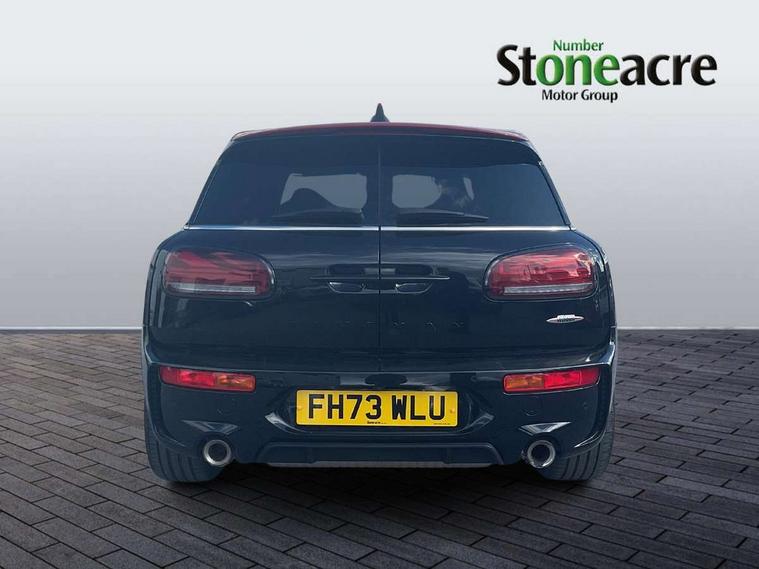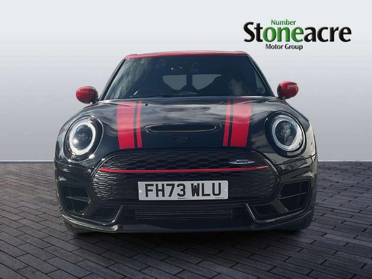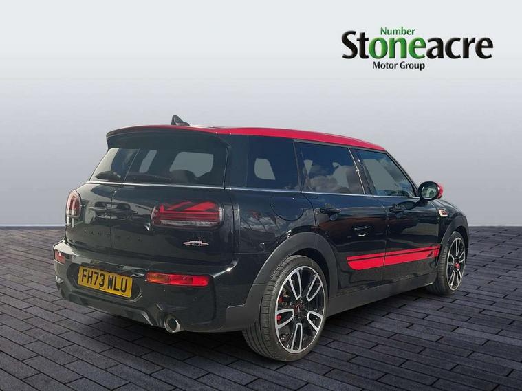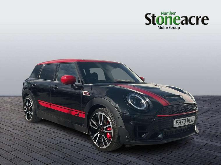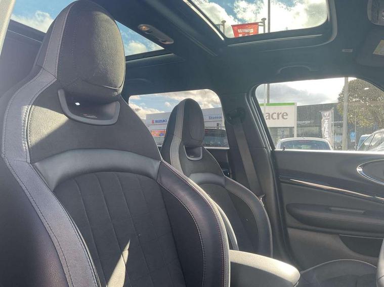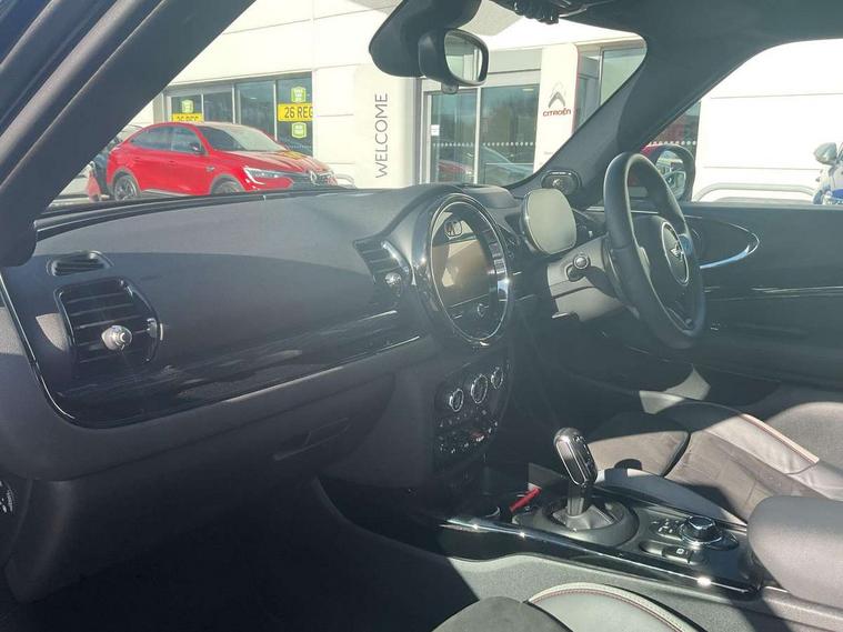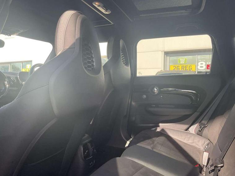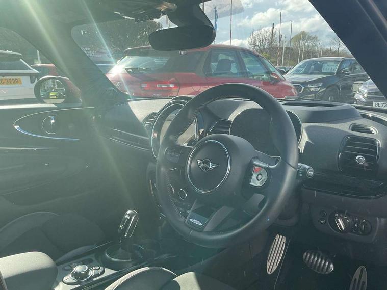 Automatic start/stop function with brake energy recuperation, Cruise control with brake assist, Digital dashboard display, Electro-mechanical speed dependant steering assistance, Instrument cluster, On board computer, 8 Speed steptronic sport transmission including electronic gear shifter and steering wheel paddles, All Wheel Drive (AWD), Double Vanos system, Fully variable valve control, High precision injection, Performance Control, Sports suspension, Chrome fuel filler cap, Dynamic brake lights, Electric windows, Heated rear window, Heated windscreen washer jets, John Cooper Works - aerodynamic kit (front and rear apron, spoiler), front and rear sport bumpers and part-painted side sills with door sill finishers, John Cooper Works entry sills, John Cooper Works rear spoiler, LED headlights with closed ring as daytime driving lights, LED rear light with union jack design, Radiator grille piano black border with honeycomb structure in matt black with John Cooper Works logo above an individual grille struct in chilli red, Rain sensor with auto headlights, Rear fog lights, Rear side wing doors, Rear window wiper, Rear wing door, Side scuttle panel with integrated indicator, Side scuttle with MINI John Cooper Works logo in high gloss black with red border, Split rear doors, Sun/heat protection glass, Third brake light, Twin exhaust tailpipe, White indicator lenses, 12V Accessory socket in centre console, 3 seat bench in 2nd row, 360L luggage compartment capacity, 4 lashing eyes in luggage compartment, 60/40 split folding rear seat, Anthracite headlining with grab handles and clothes hooks, Chrome interior highlights, Cupholders, English handbook, Floor mats, Front and rear head restraints, Glove compartment, Height and length steering column adjustment, Interior lighting with 12 basic colours selectable via toggle switch in roof, John Cooper Works leather gearshift lever and handbrake gaiter, John Cooper Works sports seat with integrated headrest, adjustable thigh support and John Cooper Works logo, LED reading lights, vanity mirror lights, front foot well light and spotlight on front seats, Manual passenger seat height adjustment, Mechanical seat adjustment, driver seat height adjust, forward/back and front seats backrest, Multifunction steering wheel, Nappa leather steering wheel with JCW badge, Paddle shifts, Rubberised stainless steel pedals, Single front passenger seat, Storage compartments in doors, Sunvisors with vanity mirrors, Toolkit, Driving Assistant pack - Mini Clubman, Piano black exterior pack - Clubman JCW, Premium plus pack - Clubman JCW, 17" front sport brake with 4 piston fixed calliper, 2 tone horn, 3 point seatbelts on all seats, 6 Airbags - front, side, head and seat belt tensioners, Anti-lock braking system (ABS), Child locks on rear doors, DSC - Dynamic Stability Control, Electronic handbrake, Front and rear disc brakes, Red brake callipers with John Cooper Works logo, Torsen mechanical limited slip differential, Tyre pressure monitoring system, Alarm system with tilt sensor, monitoring doors, bonnet interior and tailgate, Auto drive away locking, Deadlocking function, Electronic vehicle immobiliser, Locking wheel bolts, Remote central locking, Start/stop toggle with keyless go,