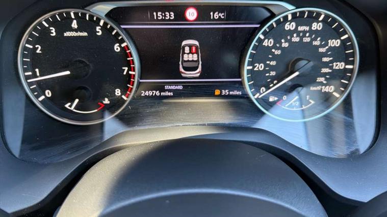 Android auto/Apple CarPlay (Wired), Blind spot warning, Drive modes (sport, normal, eco), Electric speed sensitive power steering, Emergency and breakdown call, Front and rear parking sensors, Full Digital 12.3" TFT Digital Combimeter, Google maps services - search, weather, 3D maps and Google street view, Idle stop/start system, Intelligent around view monitor, Intelligent Cruise control (ICC), Intelligent driver alert system, Intelligent forward collision warning, Intelligent lane intervention, Lane departure prevention, Lane departure warning system, Maximum speed limiter, Moving object detection, Nissan connect 12.3 inch touchscreen infotainment system, Nissan connect navigation, Push button starter, Rear cross traffic alert, Rear view camera, Remote control services - door locks, lights, horn and car locator, Telematics - notifications and connectivity services, TomTom live traffic services, Traffic sign recognition with legal speed adjustment, Trip computer, Virtual personal assistant and firmware over the air capability, Wireless apple carplay, 6 speakers, AM/FM audio system with DAB, Bluetooth audio streaming, Front USB connections (Type-A and Type-C), Rear USB charging only ports (Type-A and Type-C), Auto dimming rear view mirror, Auto rear wiper when reversing, Automatic hazard signal with emergency stop signal, Body colour mirror caps, Body coloured door handles, Bodyside mouldings, Chrome side window finisher, Door handle with button, Electric auto folding door mirrors, Electrically adjustable and heated door mirrors with LED turn indicator, Follow me home headlights, High beam assist, Intelligent auto headlights, LED daytime running lights, LED Headlights, LED rear lights, One touch front and rear electric windows with remote opening and closing, Partially body coloured bumpers, Privacy glass, Rear bumper with graphite insert, Rear reversing light (bulb lighting), Rear roof spoiler, Rear side wing doors, Rear styling plate, Shark fin antenna, Splash free rain sensing wipers, Super UV and infrared cut glass, Three blink turn signal, 12v power socket in dashboard and luggage, 2x Rear coat hooks, 3 bench rear seats in 2nd row, 3 rear headrests, 4 folding assist grip, 6 Luggage hooks - 4 on floor, 2 on side, 6-way manually adjustable driver's seat, 60/40 split folding rear seat bench, Ambient lighting around centre console, Centre console storage tray, Chrome interior door handles, Cloth monoform upholstery, Driver and front passenger sunvisors with illuminated vanity mirrors, Driver seat back pocket, Dual zone automatic climate control with pollen filter, Electrically adjustable lumbar support for driver, Front and rear door storage, Front centre console and armrest, Front cupholders x 2, Front door with bottle holders, Glovebox with light, Hard trunk cover, Height adjustable driver's seat, Height adjustable front headrests, Height adjustable passenger seat, Leather shift knob, Leather steering wheel, Luggage board system, Luggage space lighting, Manually adjustable passenger (slide recline + lifter), Multifunction steering wheel, Passenger seat back pocket, Rear armrest with 2 cupholders, Rear door bottle holders, Single front passenger seat, Soft PVC kneepad, Steering wheel switches, Sunglasses holder, Tilt/telescopic adjustable steering wheel, Two rear isofix child seat anchorage points with top tether, Welcome light and console tray ambient lighting, 3x3 point rear seatbelt pretensioners + load limiters, ABS with EBD and brake assist, Active brake limited slip, Auto hold function, Child locks on rear doors, Curtain and front side, far side airbags, Driver and passenger airbags, Driver, passenger and 2nd row rear seat belt reminder, Electronic parking brake, Front seatbelt pretensioners + load limiters, Height adjustable front seatbelts, Hill start assist, Intelligent blind spot intervention, Intelligent front emergency braking with pedestrian, cyclist recognition and junction assist, Intelligent rear automatic braking, Tyre pressure monitoring system, Vehicle dynamic control, Capless fuel filler, Engine immobiliser, Intelligent Key, Remote central door locking with deadlocking, Thatcham Cat.1 alarm, Interior instrumental panel B finisher, 18" Diamond cut alloy wheels, Tyre puncture repair kit,
