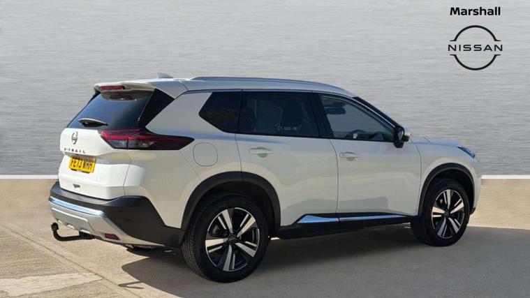 Advanced 10.8" head up display, Android auto/Apple CarPlay (Wired), Blind spot warning, Drive modes (sport, normal, eco), Electric speed sensitive power steering, Emergency and breakdown call, Front and rear parking sensors, Full Digital 12.3" TFT Digital Combimeter, Google maps services - search, weather, 3D maps and Google street view, Hands free power tailgate, Idle stop/start system, Intelligent around view monitor, Intelligent driver alert system, Intelligent forward collision warning, Intelligent lane departure warning, Intelligent lane intervention, Intelligent lane keep assist, Lane departure prevention, Maximum speed limiter, Moving object detection, Nissan connect 12.3 inch touchscreen infotainment system, Nissan connect nav with TomTom traffic, Pro pilot and head up display, Push button starter, Rear cross traffic alert, Rear view camera, Remote control services - door locks, lights, horn and car locator, Telematics - notifications and connectivity services, TomTom live traffic services, Traffic jam pilot, Traffic sign recognition with legal speed adjustment, Trip computer, Virtual personal assistant and firmware over the air capability, Wireless apple carplay, Wireless charging pad, 6 speakers, AM/FM audio system with DAB, Bluetooth audio streaming, Front USB connections (Type-A and Type-C), Rear USB charging only ports (Type-A and Type-C), 3rd brake light, Auto dimming rear view mirror, Auto rear wiper when reversing, Body colour mirror caps, Body coloured door handles, Bodyside mouldings, Chrome side window finisher, Electric auto folding door mirrors, Electrically adjustable and heated door mirrors, Follow me home headlights, Headlights auto levelling system, High beam assist, Intelligent auto headlights, LED daytime running lights, LED headlights with adaptive driving beam, LED rear lights, One touch front and rear electric windows with remote opening and closing, Partially body coloured bumpers, Rain sensing wipers, Rear privacy glass, Rear reversing light (bulb lighting), Rear roof spoiler, Rear side wing doors, Rear styling plate, Shark fin antenna, Splash free wipers, Super UV and infrared cut glass, Thermaclear heated windscreen, Three blink turn signal, 12v power socket in dashboard and luggage, 3 bench rear seats in 2nd row, 3 rear headrests, Butteryfly console, Chrome interior door handles, Driver and front passenger sunvisors with illuminated vanity mirrors, Driver seat back pocket, Electric adjustable 2 way lumbar support for driver, Electric adjustable 2 way lumbar support for passenger seat, Electrically adjustable driver seat, Front and rear heated seats, Front centre console and armrest, Front cupholders, Front door with bottle holders, Heated steering wheel, Height adjustable driver's seat, Height adjustable front headrests, Height adjustable passenger seat, Leather shift knob, Leather steering wheel, Luggage board system, Luggage space lighting, Multifunction steering wheel, Passenger seat back pocket, Rear armrest with 2 cupholders, Rear door bottle holders, Single front passenger seat, Sliding second row seats, Split folding 2nd row - 40/20/40, Steering column mounted gear shift paddles, Synthetic leather monoform upholstery, Tilt/telescopic adjustable steering wheel, Tri zone automatic climate control with pollen filter, Two rear isofix child seat anchorage points with top tether, Sky pack - X-Trail, 3x3 point rear seatbelt pretensioners + load limiters, ABS with EBD and brake assist, Active brake limited slip, Auto hold function, Child locks on rear doors, Curtain and front side, far side airbags, Driver and passenger airbags, Driver, passenger and 2nd row rear seat belt reminder, Electronic parking brake, Front seatbelt pretensioners + load limiters, Height adjustable front seatbelts, Hill start assist, Intelligent blind spot intervention, Intelligent front emergency braking with pedestrian, cyclist recognition and junction assist, Intelligent rear automatic braking, Tyre pressure monitoring system, Vehicle dynamic control, Engine immobiliser, Intelligent Key, Remote central door locking with deadlocking, Thatcham Cat.1 alarm, 19" Diamond cut alloy wheels, Tyre puncture repair kit,