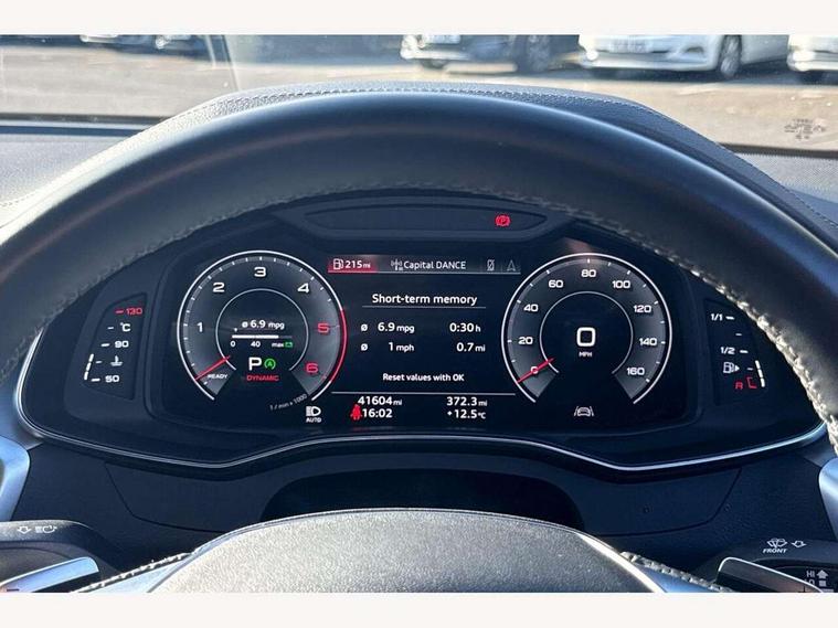 7" high resolution colour driver information display system, Audi connect safety and service (e-call), Audi connect with Amazon Alexa Integration, Audi drive select, Audi parking system plus - acoustic and visual park assist system for front and rear, Automatic start/stop system with coasting functionality, Bluetooth interface, Electric boot lid release, Lane departure warning system, Progressive steering, Rear view camera, Service interval indicator, Smartphone interface includes wireless Apple carplay/Android Auto, Voice control system, 12V Mild hybrid, 24 litre AdBlue tank, Diesel particulate filter, Quattro on demand, Sports suspension, Audi front music interface, Audi sound system, Auxiliary input socket, DAB Digital radio, USB connection, Body coloured door mirrors, Electric front/rear windows, Frameless auto dimming interior rear view mirror, Front intermittent wipers, Headlight washers, Heat insulating darkened glass in side and rear windows, Heat insulating glass in windshield, LED signature front daytime running light, LED third brake light, Matrix LED headlights, Matt black side air intake grille with inlay in matt aluminium, Privacy glass, Radiator grille in anthracite black matt, single frame in chrome and horizontal struts in matt aluminium silver, Rain and light sensors, Rear boot, Rear side wing doors, S line air inlet design with inlay in matt aluminium, S Line badge on front fender, S Line front and rear bumpers, S line rear diffuser and grille in matt black with matt aluminium tailpipes, S Line side skirts, Signature rear LED light design, 2 zone deluxe electronic climate control, 4 way electric lumbar support for driver and front passenger, 40/20/40 split folding 3 rear seat bench in 3 parts with rear centre armrest, Black cloth headlining, Black steering wheel insert, Electrically adjustable front seats with driver memory, Front centre armrest, Front head restraints, Heated front seats, Height/reach adjust steering wheel, Illuminated door sill trims with S logo, Illuminated sun visors with vanity mirrors, ISOFIX child seat mounting and Top Tether with front passenger airbag deactivation, Leather gear knob, Perforated leather steering wheel with contrast stitching, Rear headrests, S line front and rear black carpet floor mats with contrast stitching, Single front passenger seat, Stainless steel pedals and foot rest, LED Interior Ambient Lighting Pack - A6, Non smoking pack - A6, Technology pack - A6, 3 point seatbelts on all seats, Airbags - Front side, front and rear including head, Audi pre-sense front, EBD - Electronic brakeforce distribution, Electromechanical parking brake, Electronic Stability Control (ESC) including ABS, ASR and EDL, Extended pedestrian protection measures, Manual child proof rear door locks, Seatbelt monitoring, Tyre pressure warning light, Warning triangle and first aid kit, Anti theft alarm with tow away protection, Anti-theft wheel bolts and wheel loosening detection, Immobiliser, Keyless Go, Remote central locking, Black seatbelts, Matt brushed aluminium dark inlays,