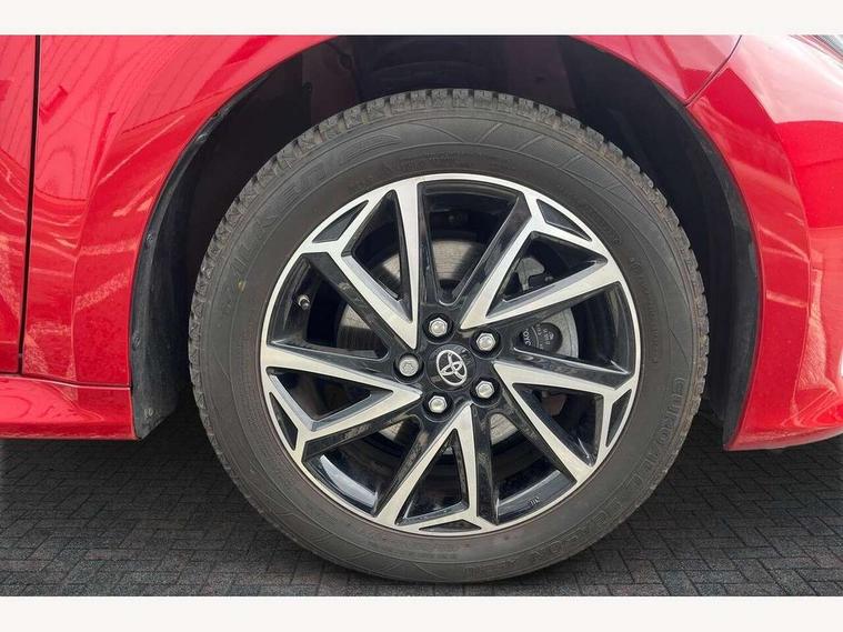 Adaptive cruise control, Adjustable speed limit with speed warning, Bluetooth connectivity, Colour binocular inspired displays with digital speedometer, E-call, Electric power steering, Hybrid energy display, Multi information display switches on steering wheel, Reversing camera, Smartphone integration with Apple CarPlay and Android auto, Tailgate, Voice recognition, Vehicle Stability Control (VSC), 4 speakers, 8" Multimedia display touch screen, USB connection, Acoustic windscreen glass, Auto windscreen wipers, Automatic headlights, Body coloured door mirrors, Electric adjustable heated door mirrors, Follow me home headlights, Front auto power windows with anti jam protection, Full LED rear lights, LED daytime running lights, LED front fog lights, LED front light guide, LED Headlights, LED High mounted stop lamp, LED Indicators, LED rear light guide, Manual headlight levelling, Painted chequered front grille, Rain sensor, Rear auto power windows with anti jam protection, Rear privacy glass, Rear side wing doors, Rear spoiler, Rear wiper, Shark fin antenna, Turning signal integrated indicators in door mirrors, Variable front intermittent wipers, 3 adjustable rear headrests, 3 seat bench in 2nd row, 3 spoke leather steering wheel, 60/40 split folding rear seat, Active headrests, Adjustable boot height, Auto air conditioning, Coat hooks in rear grab handles, Cup holders (2 front & door), Data Communication Module (DCM) connected services, Fabric upholstery, Front armrest, Glovebox, Grey roof lining, Height adjustable driver's seat, Isofix seat fixing, Leather gearshift, Pollen filter, Shopping bag hooks, Single front passenger seat, Tilt/telescopic steering column, 3 point seatbelts on all rear seats, ABS+EBD+Brake assist, Electronic parking brake, Emergency brake light system (EBS), Front passenger airbag on/off switch, Front seatbelt reminder, Hill start assist control (HAC), Rear child proof door locks, Rear seat belt reminder, Supplemental Restraint System (SRS) 8 airbags: Driver & passenger's airbags, dual side curtain airbags, side impact airbags, front centre airbag, Toyota Safety Sense 2, Precollison + Night time Pedestrian & Cyclist Detection, Lane Trace Assist, Auto High Beam, Intelligent ACC & Road Sign Assist, Tyre pressure warning system, 2x Master key, Alarm/immobiliser, Remote powered central double locking doors, Soft touch instrument panel, Space saver spare wheel,