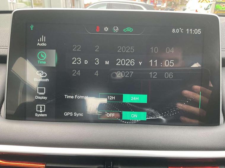 10.1" colour touchscreen, 12.3" Full digital driver information display, Adaptive cruise control, Android Auto, Apple CarPlay, Blind Spot Detection (BAS), Bluetooth connectivity, Emergency call service, Intelligent speed assist, Lane keep assist system (LAS) with Lane departure warning system (LDWS), PAS, Rear cross traffic alert, Rear parking camera, Rear parking sensors, Satellite navigation system, Tailgate, Traffic jam assist, Trip computer, USB mobile phone charging function, 4 speaker audio system, DAB audio, Auto dimming rear view mirror, Automatic headlights, Bi-function projection headlight, Body colour electric adjustable heated door mirrors, Electric folding door mirrors, Follow me home headlights, Front and rear aero wiper, Front and rear electric windows with one-touch up/down, Front fog lights, Intelligent high beam, LED centre brake light, LED daytime running lights, Rain sensing wipers, Rear side wing doors, Silver roof rails, 12V power sockets, 2nd row 60/40 split fold seat, 2nd row seat with 2 stage incline adjustment, 3 rear headrests, 3 seat bench in 2nd row, 4 way manually adjustable passenger seat with height, reach, tilt, backrest and headrest, 6 way manually adjustable driver's seat with lumbar support, Air conditioning, Front centre sliding armrest with storage compartment, Front headrests, Height and reach adjustable steering wheel, ISOFIX restraints on outer rear seats x2, Leather steering wheel, Leather style upholstery, Single passenger seat, 3x3 point rear seatbelts, ABS/EBD, Active emergency braking with pedestrian/Bicycle detection, Anti rolling protection, Cornering brake control (CBC), Drivers seatbelt reminder, Dual front airbags, Electric parking brake with auto hold function, ESP, Front and rear passenger seat belt reminder, Front passenger airbag deactivation switch, Front seat belt height adjuster, Front seatbelts (3-point + pretensioner + load limiter), Front side airbags, Hill descent control, Hill launch assist, Manual rear child locks, Rear outer seatbelt pretensioner and load limiter, Side curtain airbags, Tyre pressure monitoring system, Alarm system and engine immobiliser, Keyless entry and push button start system, Remote central locking, Speed sensing door locks, 18" Hurricane diamond cut alloy wheels, Tyre repair kit,