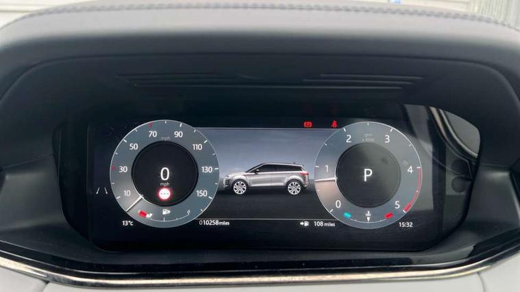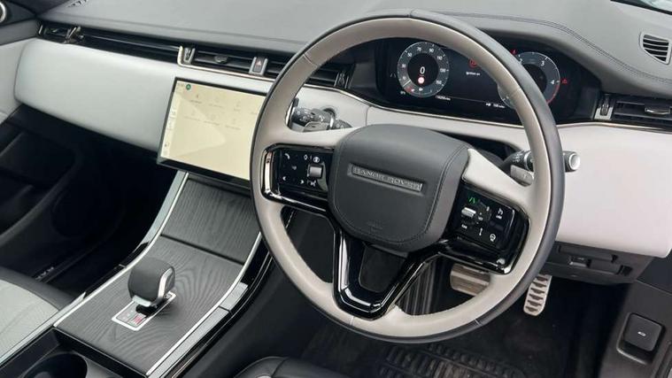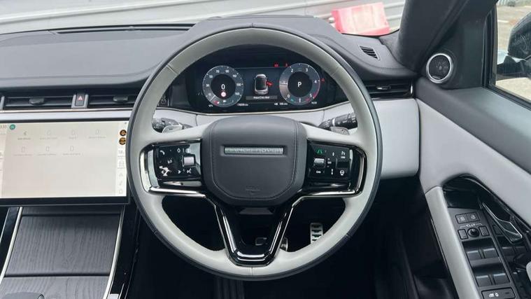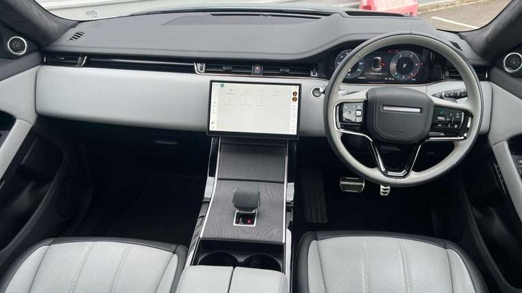 11.4" touch screen, 3D 360 degree surround camera with wade sensing, Adaptive cruise control, Android Auto, Apple car play, Blind spot assist, Bluetooth connectivity, Brake pad wear indicator warning light, Driver condition monitor, eCall emergency system, Eco mode, Electronic power assisted steering (EPAS), Front and rear parking aid, Head up Display, InControl remote, Interactive driver display, Land Rover InControl apps, Lane keep assist, Pivi pro connected includes diamond pivi variant, smart settings, connected navigation pro, nuance speech licence, Powered tailgate/boot lid, Rear collision monitor, Rear traffic monitor, Traffic sign recognition with adaptive speed limiter, Voice control system, Wireless device charging, Adaptive dynamics, All terrain progress control, Configurable dynamics, Diesel exhaust fluid (DEF) large tank, Efficient Driveline, Large fuel tank, Terrain Response 2, Digital Audio Broadcast radio-DAB, Steering wheel mounted controls, Acoustic laminated windscreen, Auto headlights, Automatic headlight levelling, ClearSight interior rear view mirror, Electric windows with one touch open/close and anti trap, Flush deployable exterior door handles, Front and rear recovery eyes, Front fog lights, Heated rear window with timer, Heated washer jets, Heated windscreen, Pixel LED headlights with signature DRL and LED tail Lights, Power fold, auto-dimming, heated door mirrors with approach lights and auto dimming driver side, Rain sensing windscreen wipers, Range rover branding illuminated metal tread plates in loadspace and row 1 with brand name script and metal in row 2, Rear animated directional indicators, Rear fog lights, Rear side wing doors, Rear wiper, Side repeater indicators in mirror, Sliding panoramic roof with powered sunblind, Tailgate spoiler, Third brake light, Winter wiper park position, 14 way driver memory electric front seats with 2 way manual headrests + 4 way lumbar support, bolsters, 40:20:40 split folding rear seats with centre headrest and armrest, Ambient interior lighting, Bright metal pedals, Cabin Air Purification plus, Configurable cabin lighting, Customer configurable single point entry, Electrically adjustable steering column with memory function and easy entry/exit, Front and rear cupholders, Heated and cooled front seats, Heated rear seats, Heated steering wheel, Isofix system on outer rear seats, Overhead lighting console, Overhead stowage for sunglasses, Passive front head restraints, Premium carpet mats, Rear air vents, Rear head restraints, Satin chrome gearshift paddles, Single passenger seat, Sunvisors with illuminated vanity mirrors, Twin sliding front centre armrest, Online pack with data plan - Evoque, Power socket pack 2 - Evoque, 3 rear 3 point seatbelts, Anti-lock braking system (ABS), Brake hold function, Customer configurable autolock, DSC - Dynamic Stability Control, Electronic brake force distribution, Electronic parking brake, Electronic traction control, Emergency braking, Front and rear seatbelt reminder, Hill descent control, Hill launch assist, Low traction launch, Occupant protection assist, Passenger seat occupant detector, Power operated child locks, Roll stability control, Six airbags - Driver and passenger airbags/driver knee airbag/front side airbag and curtain airbags, Torque vectoring brake, Tyre pressure monitoring system, Alarm, Immobiliser, Intrusion sensor, Keyless entry, Locking wheel nuts, All season tyres,