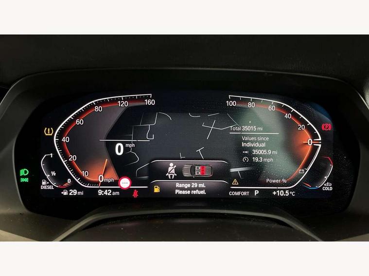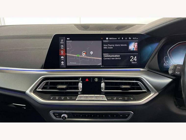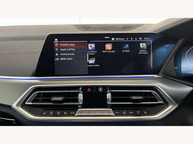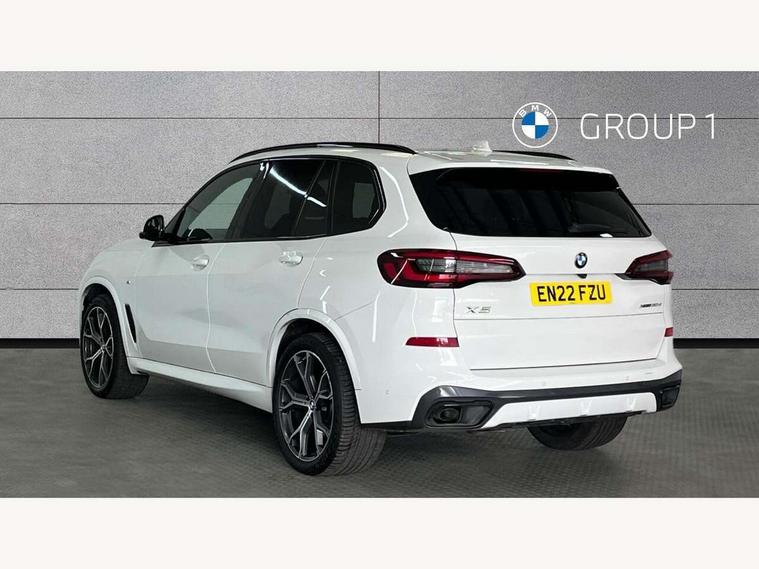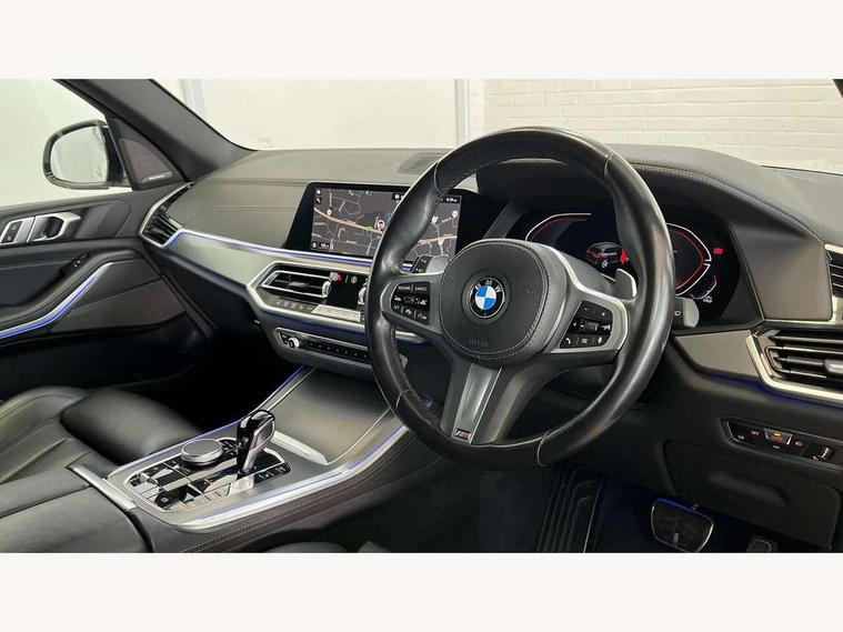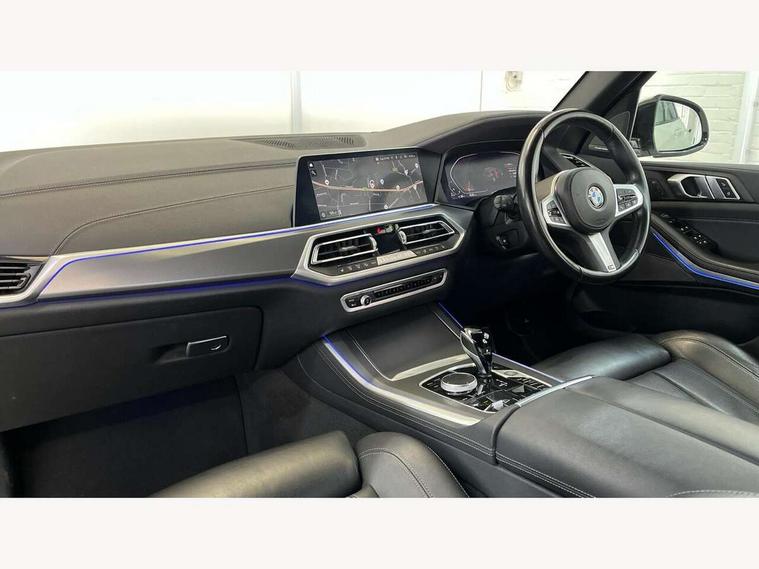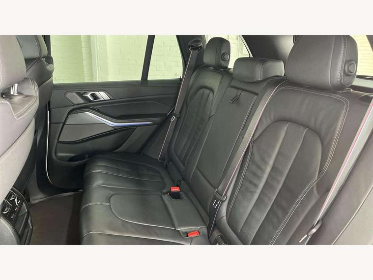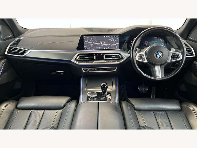 20GB hard disc drive (HDD) memory, Active guard plus, Attentiveness assist, Automatic tailgate with top hinged section open and manual bottom hinged section, BMW ConnectedDrive online services, BMW digital live cockpit professional - 12.3" digital instrument panel and 12.3" CID, with touch/voice command, BMW legal emergency call, BMW Teleservices, Brake force display, Brake pad wear indicator warning light, Cruise control with brake assist, Enhanced bluetooth with wireless charging, Front/rear park distance control, iDrive controller with shortcut buttons, Lights on warning, Oil sensor for level and grade, On board computer inc. average speed, fuel consumption, liquid crystal Info display, journey computer, outside temperature display, personal profile, Service interval indicator, Speed limit info display, Speed limiting function, Wi-Fi hotspot, 48V Mild hybrid technology, Adaptive 2-axle air suspension, Common rail technology, Diesel particulate filter, Double wishbone front axle, Drive performance control with ECO PRO comfort + sport mode, Eight speed steptronic sport automatic transmission and gearshift paddles on the steering wheel, Safety battery terminal clamp, Variable vane geometry, DAB Tuner enables digital radio reception, Favourite buttons, Hi-Fi loudspeaker system, USB connection, USB type A 1.5A in cupholder, USB Type C 3A in centre armrest, Active Air Stream kidney grille with high-gloss chrome, Adaptive air flap control bar in high-gloss black, Automatically dimming rear view mirror, BMW Individual high gloss black shadow line roof rails, BMW Individual high gloss shadow line, Body colour bumpers, Body colour door handles, Dynamic brake lights with LED technology, Exhaust tailpipes - single, left and right with Chrome finisher, Follow me home headlight function, Front and rear electric windows with open and close fingertip control, anti trap facility and comfort closing, Heated windscreen washer jets, High beam assistant, High gloss black outer and central air intakes on front bumper with pearlescent chrome finish, High gloss black Side elements, LED daytime running lights, LED rear lights, M aerodynamic body styling, M designation on left and right front side panels, Pearlescent chrome front grille bars, Rain sensor with automatic headlight activation and windscreen wiper control, Rear side wing doors, Satin aluminium side window graphic, Third brake light in rear spoiler, Variable intermittent rear wash/wipe, Welcome light carpet, X5 on left tailgate, xDrive designation on right tailgate, 12V - Power sockets with 2x centre console and 1x luggage compartment, 3 seat bench in 2nd row, 40:20:40 split folding rear seats, Ambient interior lighting with 6 pre-designed selectable lights including dynamic function, Centre and rear interior light, Child seat ISOFIX attachment with rear outer seats includes top tether, Compartment in front of cupholder, Electric front seat adjustment with driver and front passenger memory function, Electrical steering column with adjustable height and length with activation and control on the steering column, Foldable rear centre armrest with 2 cupholders and storage compartment, Front and rear cupholders x 2, Front and rear door pockets, Front and rear door sill inlays with illuminated BMW M designation, Front and rear side armrest integrated into door trim, Front footwell lights, Front reading lights, Light inside glove compartment, Lockable glove compartment, Luggage compartment floor panel with integral storage tray, Luggage compartment lighting, M leather steering wheel, M specific key, M specific steering wheel, Make-up mirror lights, Multifunction controls for leather steering wheel, Multifunctional hooks, Rear head restraints, Seat back with flap pocket, Securing rings in luggage compartment, Single front passenger seat, Storage bins on all doors, Storage tray and compartment with cover in centre console, Sunvisors with illuminated vanity mirrors, Toolkit located in luggage compartment, Velour floormats, Connected Package Professional - X5, Expanded exterior mirror pack - X5/X5 M, Non-smokers pack - X5, Airbags - driver/front passenger, rear and side, first and second row seats head airbags, front passenger seat airbag deactivation + knee airbag, Anti-lock braking system (ABS), Automatic Stability Control (ASC), Brake drying, Brake energy regeneration, Brake fade compensation, Braking pre-tensioning, Cornering brake control (CBC), Crash sensor activating central locking release, hazard warning lights, fuel cut off, interior lighting + activation of safety battery terminal clamp, Deformation zones - front and rear with door reinforcements and bumpers up to 2.5 mph, DSC - Dynamic Stability Control, Dynamic brake control, Dynamic Traction Control - DTC, Electromechanical parking brake with automatic drive away release and auto hold function, Electronic brake force distribution, Front and rear seatbelts with seatbelt stopper, seatbelt tensioner for front and outer rear seats and belt force limiter, Front head restraints with anti-whiplash, Height adjustable front seatbelts, Hill start assistant, Integrated brake system, M Sport braking system in blue high gloss + blue painted brake calipers with M designation, Mechanical child proof lock on rear doors, Passive protection for pedestrians, Seat occupancy detection for driver and passenger side, Side impact protection, Three 3 point inertia reel seatbelts, Two tone horn, Tyre pressure monitoring system, Ventilated front and rear disc brakes, Warning triangle and first aid kit, Closing system with central locking, Driver and front passenger door centre lock switch, Locking wheel bolts, Thatcham 1 alarm system with remote control and engine immobiliser, Start/stop toggle diamond shaped trim finisher in pearl chrome,