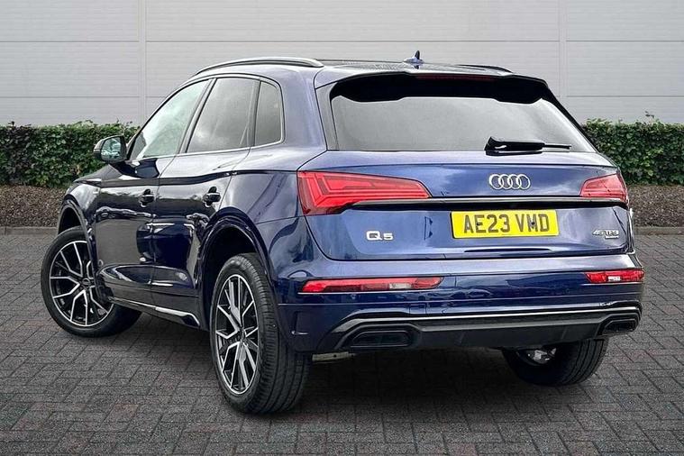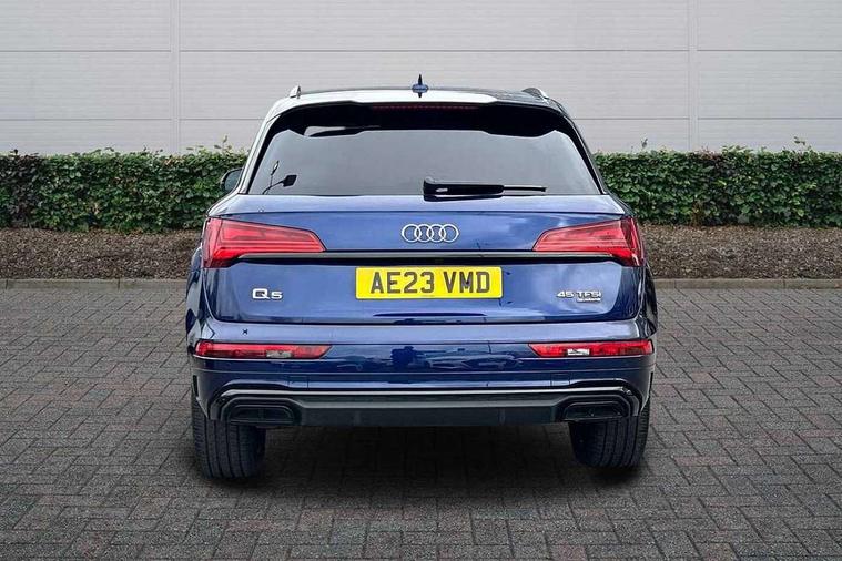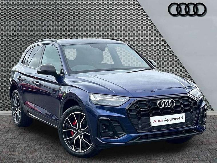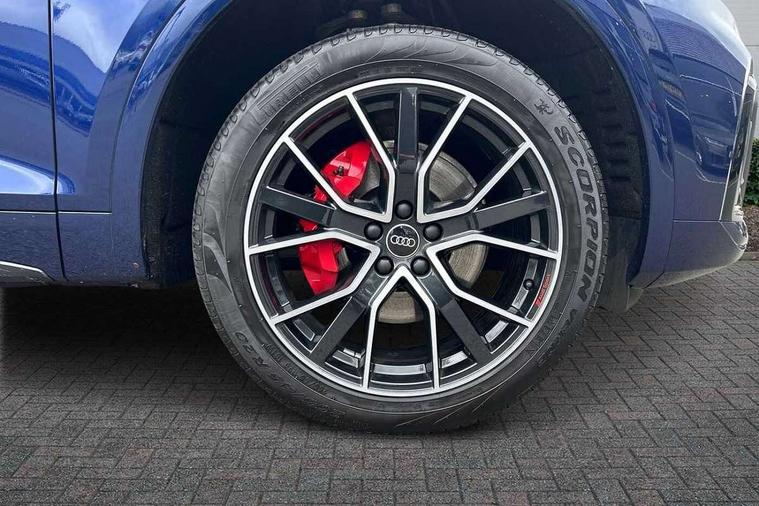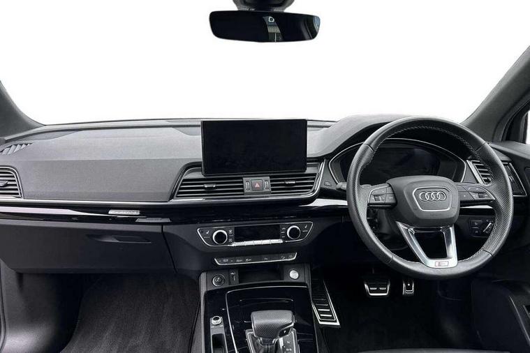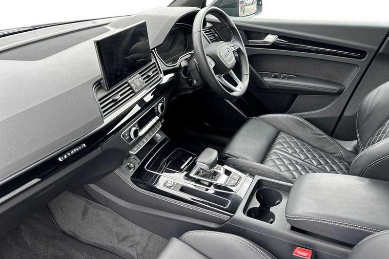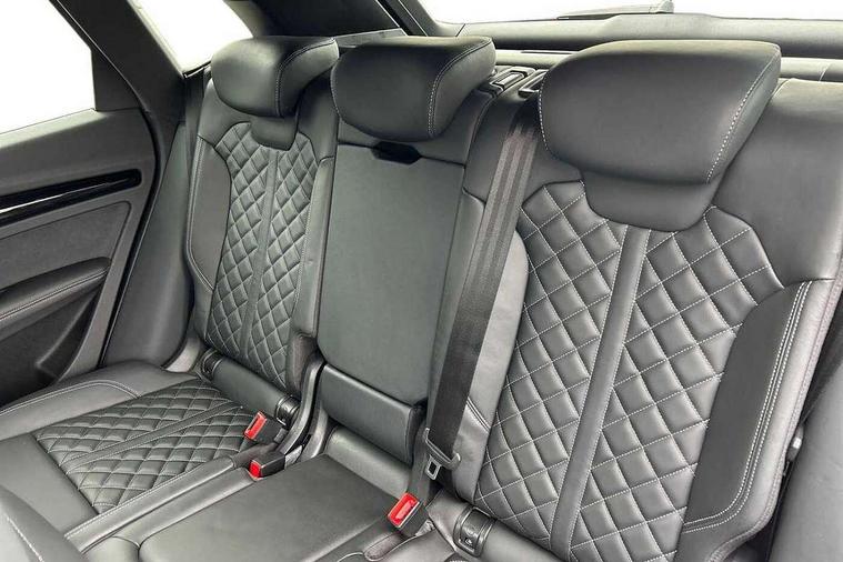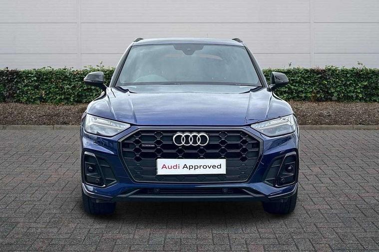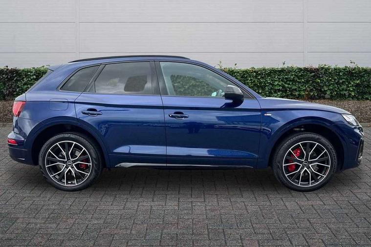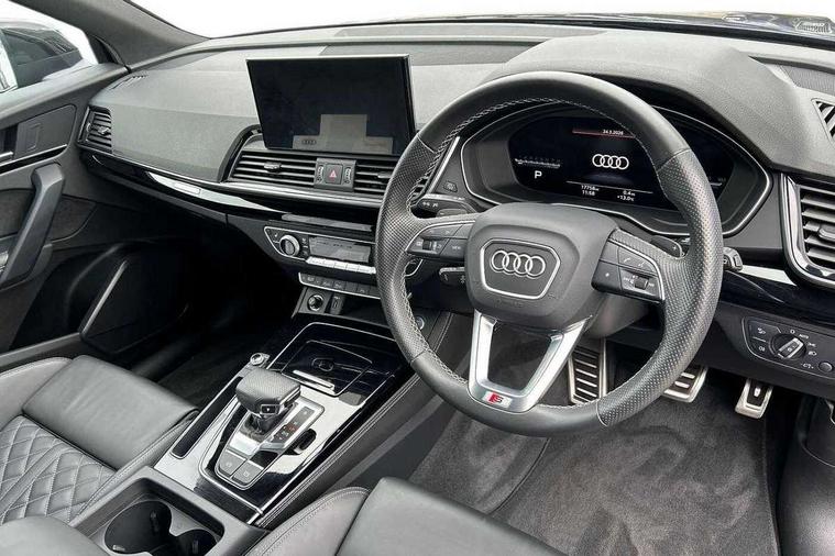 Acoustic front and rear parking sensor, Audi connect safety and service (e-call), Audi connect with Amazon Alexa Integration, Audi drive select, Audi virtual cockpit plus with 12.3" screen and three different layout designs, Audi wireless smartphone interface, Automatic start-stop system with coasting functionality and efficiency programme, Bluetooth interface, Electro - mechanical power assisted steering, MMI navigation plus with 10.1" touch screen, Power tailgate, Reversing camera, Service interval indicator, Voice control system with Audi hotword activation "Hey Audi", Quattro on demand, S line sports suspension, 8 loudspeakers, DAB Digital radio, Acoustic windscreen, Audi matrix LED headlights with dynamic front and rear indicators, Audi rings at front and rear in black, Audi rings decal on rear doors, Auto dimming door mirrors, Auto dimming frameless rear view mirror, Automatic headlight adjustment, Automatic headlights and windscreen wipers, Black roof rails, Body colour bumpers, Body colour underbody protection, Chrome plated exhaust trims, Daytime running lights, Door sills in Selenite silver, Electric adjustable/heated/folding door mirrors, Front air inlet surrounds in anthracite black, Front and rear electric windows, Headlight washers, High gloss black B pillar trims and triangular rear door trim, High level LED brake light, Rear chrome trim strip below lights, Rear privacy glass and rear side windows, Rear side wing doors, Rear wiper, Roof bars, S Line rear spoiler, 2 x USB charging port with aux input socket, 3 rear headrests, 4 way electric lumbar support for driver and front passenger, 40:20:40 split folding 3 rear bench seat in 2nd row with rear centre armrest, Black cloth headlining, Comfort front centre armrest, Contrast stitching on seats, steering wheel and gear lever gaiter, Deluxe 3 zone electronic climate control, Electrically adjustable front seats, Fine Nappa leather upholstery with diamond pattern contrast stitching + front sport seats with S embossed logo, Front/rear floor mats, Gear lever in black leather, Heated front seats, Height adjustable front head restraints, Height/reach adjustable steering column, Illuminated door sill trims with S logo, Luggage compartment cover, Rear seat bench plus-adjust for forwards/backwards position/backrest angle, cupholders in the armrest, load through hatch and remote backrest release, Removable luggage compartment floor, Single front passenger seat, Stainless steel pedals, Sunvisors with vanity mirrors, Black styling package - Q5 Edition 1, Extended interior upholstery pack - Q5, Extended LED Interior multi coloured Lighting Pack - Q5, 3 point seatbelts on all seats, 6 airbags - Driver, front passenger, curtain and side airbags, Electrically operated child locks on rear doors, Electromechanical parking brake, Electronic stabilisation control including ABS, ASR and EDL, First aid kit with warning triangle and vests, Front and rear brake calipers painted in red, Front passenger airbag deactivation, Hill descent control, Hill hold assist, ISOFIX child seat mounting for front passenger seat and ISOFIX child seat mounting with Top Tether for outer rear seats, Multi collision brake assist, Pop-up bonnet for pedestrian protection, Pre sense city, Seat belt force limiter, Seatbelt monitoring, Tyre pressure warning, Anti theft alarm, Anti-theft wheel bolts, Keyless Go access/ignition system, Remote central locking, Air vents inserts and centre console in gloss black, Piano black finish inlay,