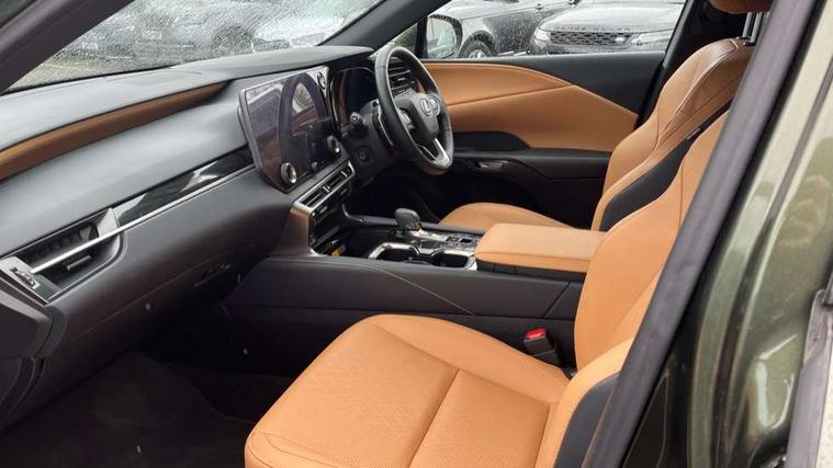 360 degree panoramic view monitor, Bluetooth mobile phone connectivity, BSM - Blind spot monitoring, Drive mode selector, Driver monitoring system, E-call, Head up Display, Intelligent clearance sonar, Lexus link connected services including over the air updates, MM21 Lexus link pro - 14" HD touchscreen with embedded and cloud based navigation, voice assistant, connected services, over the air and always online, Push button starter, Rear cross traffic alert, Speed sensitive electric power assisted steering, Ultrasonic parking sensors, Wireless Apple CarPlay and wired Android Auto, Wireless Smartphone charger, 3 pin to Type 2 10A charging cable, 6.6 kW onboard charger, E-Four Automatic transmission, Type 2 AC charging, Type 2 mode 3 32A charging cable, Vehicle Stability Control (VSC), 12 speakers audio, 5 USB ports (3 front USB C and 2 rear USB C), DAB Digital radio, 3 projector bi-beam LED headlight with auto high beam, Auto dimming rear view mirror, Auto headlights, Front and rear one touch power windows with voice command, Front and rear silver window frame mouldings, Glove and towel set, Headlight washers, Heated, auto-folding door mirrors, auto dimming with rerverse tilt, turn indicators and panoramic view sensors, L-shaped rear light bar, LED brake lights and rear lights with emergency brake signal, LED cornering headlights, LED daytime running lights, LED front and rear fog lights, LED Indicators, Power back door with kick sensor, Privacy UV glass, rear doors and tailgate, Rain sensor windscreen wipers, Rear side wing doors, Rear wash/wipe, Roof rails, Variable front intermittent wipers, 12V accessory port centre console and luggage compartment, 2 cup holders in centre console, 2 way electric lumbar support for driver and front passenger, 2 x Sunvisors with vanity mirror and lamp, 3 rear headrests, 3 seat bench in 2nd row, 40:20:40 split folding rear seats, 64 colour LED ambient interior illumination with 14 pre-set themed colour tones, 8 way electrically adjustable front seats, Charge cable bag, Driver seat memory function, Easy access driver seat, Easy access steering wheel, Front aluminium scuff plates, Front headrests, Front tray in front of centre console, Glovebox, Heated and ventilated front seats, Heated steering wheel, Leather steering wheel, Lever type shft control, Manually adjustable rear seats, Power adjustable steering wheel, Rear resin scuff plates, Single front passenger seat, Smooth leather upholstery, Textile carpet mats, Three zone climate control air conditioning system, Two way opening centre armrest with storage, 2 x Isofix child rear seat restraints, 3 point ELR front and rear seatbelts with pretensioners, ABS, Curtain shield airbags (front and rear), Driver and front passenger 2 stage airbag, Driver/front passenger side airbags, Drivers knee airbag, E-Latch with safe exit assist, EBD + Brake Assist, Electronic parking brake, Electronically controlled braking, Extended lexus safety system+ 3 - lane change assist, front cross traffic assist, Front and rear left/right force limiters and tension reducers, Front and rear left/right seatbelt reminders, Front centre airbag, Hill assist control, Lexus safety system+ 3 - dynamic radar cruise control, pre collision system day and night, lane tracing assist, road sign, Manual child lock in rear doors, Passenger airbag cut-off device, Traction control, Tyre pressure warning, 2 x remote key fobs, Customisable auto door lock, Locking wheel nuts, Motion sensor key, Smart keyless entry, Thatcham category 1 alarm + immobiliser, VIN etching, Black Inlay, 21" Alloy wheels,