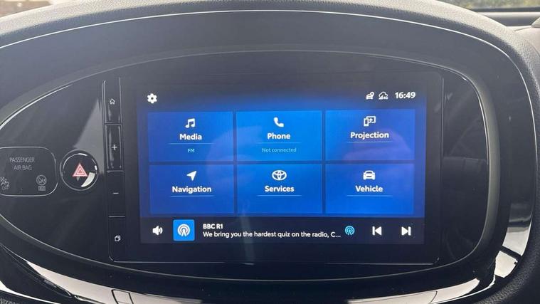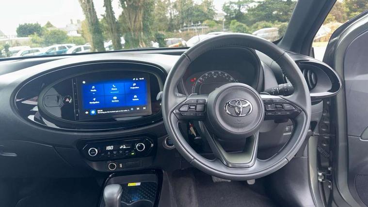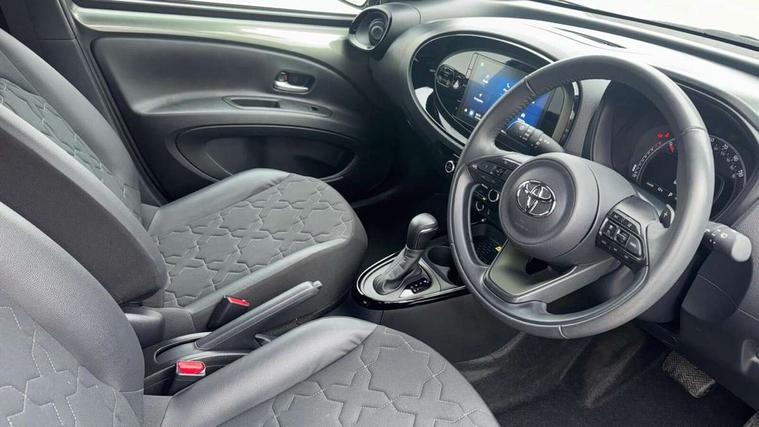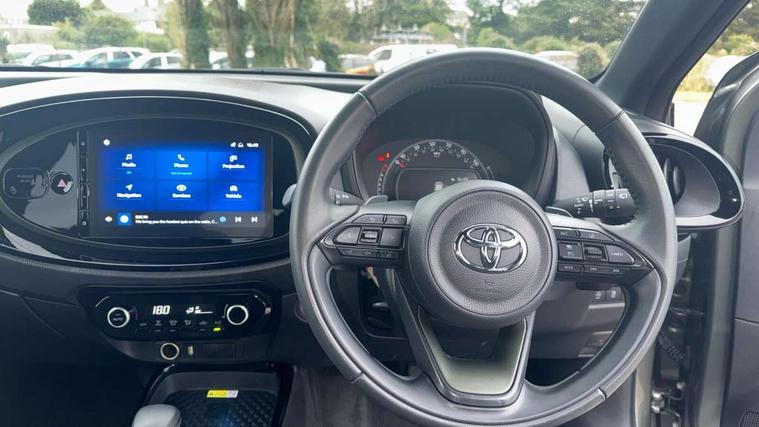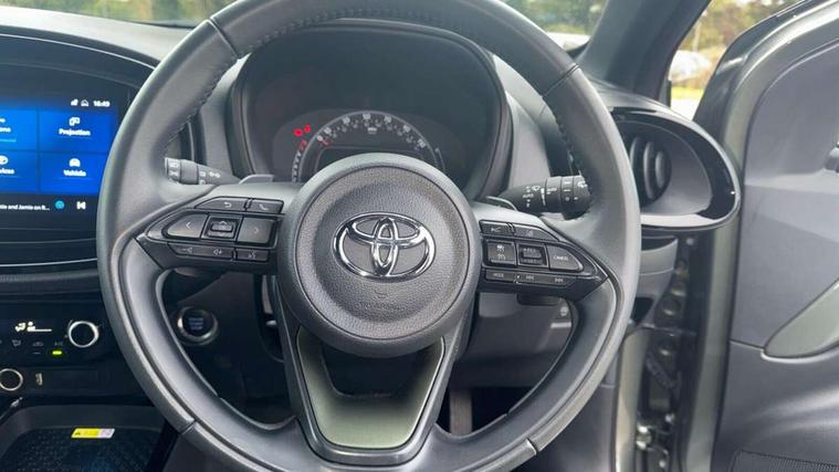 4.2" TFT colour screen, Adjustable speed limiter, Analogue speedometer, Bluetooth connectivity, Digital tachograph, Driver attention alert system, eCall emergency call system, ECO-driving indicator, Electric power steering, Front and rear parking sensors with auto brake, Intersection turn assist, Key reminder warning, Noise reduction kit, Pre collision system with emergency steering assist, Remote boot door release on key, Reversing camera with static guide lines, Smart entry and push button start, Speed limit display, Start and stop, Wireless charger, Wireless Smartphone Integration includes Apple CarPlay and Android auto, Vehicle Stability Control (VSC), 4 speakers, 9" HD multimedia display touch screen with Toyota smart connect, DAB digital audio broadcast, USB connector, Auto headlights, Auto wipers, Automatic headlights cut-off, Automatic high beam On/Off switch, Bicycle towing hook, Black fog light surrounds, Black side protection mouldings, Black wheel arch mouldings, Body colour door handles, Body coloured front bumper, Boot door scuff plate, Eclipse black rear bumper, Electric heated door mirrors, Follow me home headlights, Front and rear underruns in silver, Front fog lights, Front power windows, Gloss black door mirrors, Gloss black upper front grille, Headlight cut-off reminder, LED daytime running lights guide, LED front light guide, LED High mounted stop lamp, LED projector headlights, Manual day/night rear view mirror, Manual headlight levelling, Pagoda roof, Power adjustable door mirrors, Privacy glass, Rain sensor, Rear combination lights LED bulb type, Rear side wing doors, Rear windscreen defogger, Rear windscreen wiper, Remote hazard lights system, Short antenna, Variable intermittent windscreen wipers, 12v power outlet - front, 2 seat bench in 2nd row, 3 spoke leather steering wheel, 50/50 split folding rear seat, Adhesive roof headlining, Adjustable speed limiter switch on steering wheel, Audio and telephone switches on steering wheel, Auto air conditioning, Black roof lining, Body colour satin anodised insert on steering wheel, Boot light, Centre room light, Chrome interior door handles, Chrome surround on air conditioning buttons, Clean air filter, Floor mats, Front and rear cup holders, Front head rest deco art, Front head restraints, Gear shift indicator, Height adjustable driver seat, Intelligent adaptive cruise control switch on steering wheel, ISOFIX child restraint system on rear seats, Lane departure alert switch on steering wheel, Leather gearshift knob, Light blue ambient lighting in centre console, Manual tilt steering wheel, Manually reclining and sliding driver seat, Manually reclining and sliding front passenger seat, Multimedia switches on steering wheel, Paddle shift levers on steering wheel, Partial synthetic leather upholstery, Pollen filter, Rear door pockets, Rear head restraints, Remote air-conditioning system, Satin silver insert on gear shift knob, Single compartment glovebox with lights, Single front passenger seat, Soft tonneau cover, Sun visors with mirror on driver and passenger side, Voice recognition switch on steering wheel, Toyota safety sense pack - Aygo X, Anti lock braking system + Electronic brake force distribution, Child safety door lock, Emergency brake light signal (EBS), Hill start assist control (HAC), Passenger airbag on/off switch, Seat belt reminder for front and rear seats, Supplement restraints system (SRS) - 6 airbags, Traction control, Tyre pressure warning system, Immobiliser, Remote power door locks, Black wheel centre caps, Tyre repair kit,
