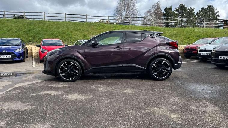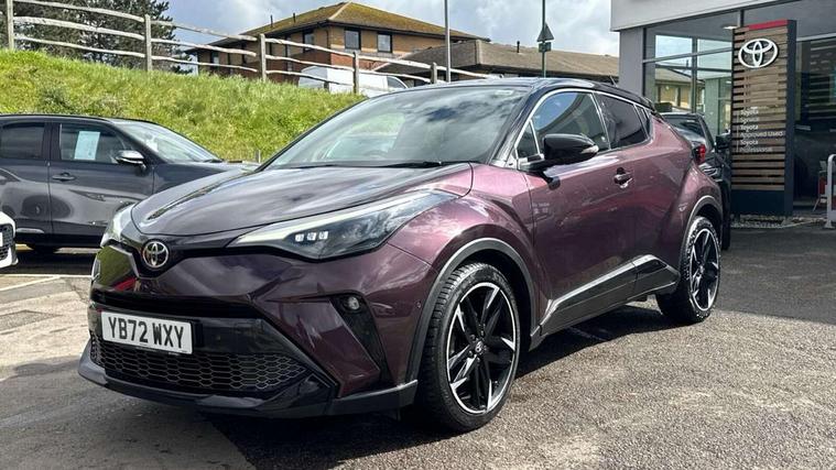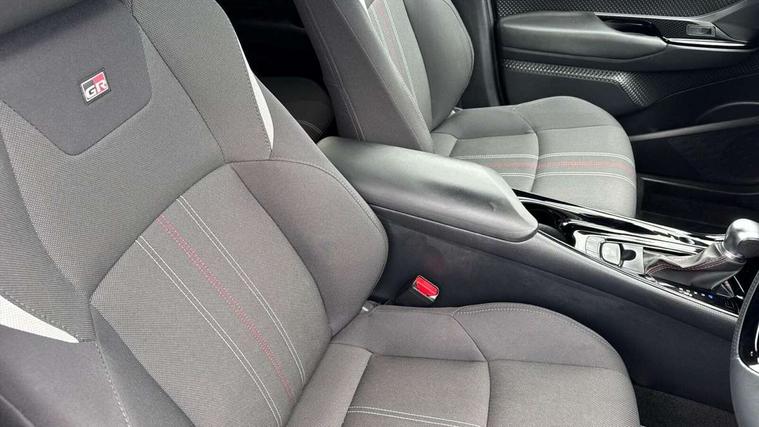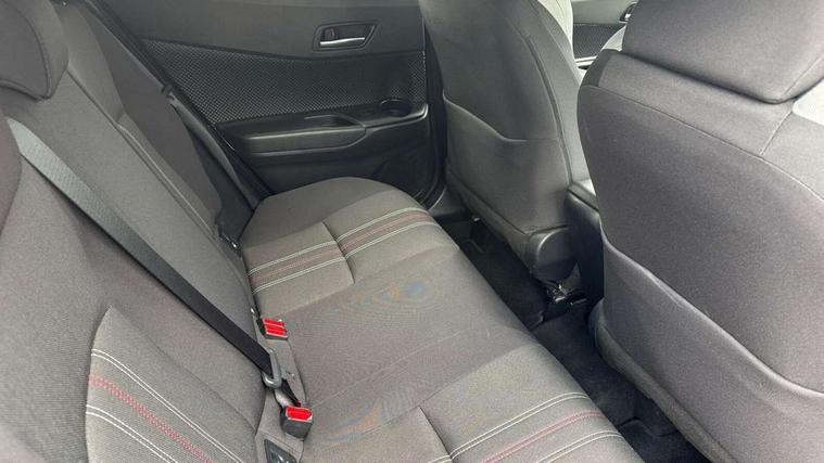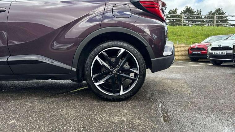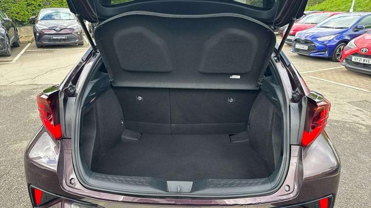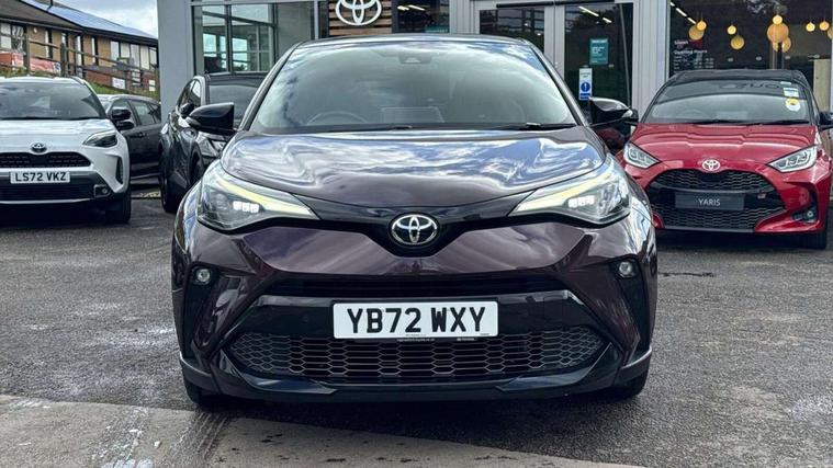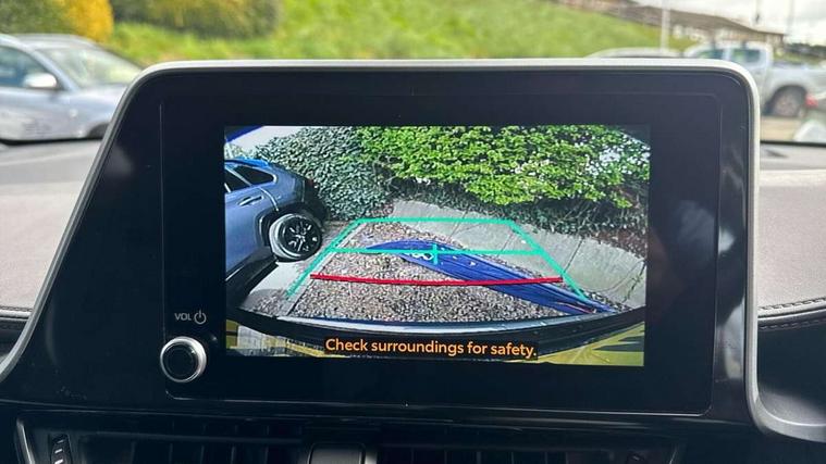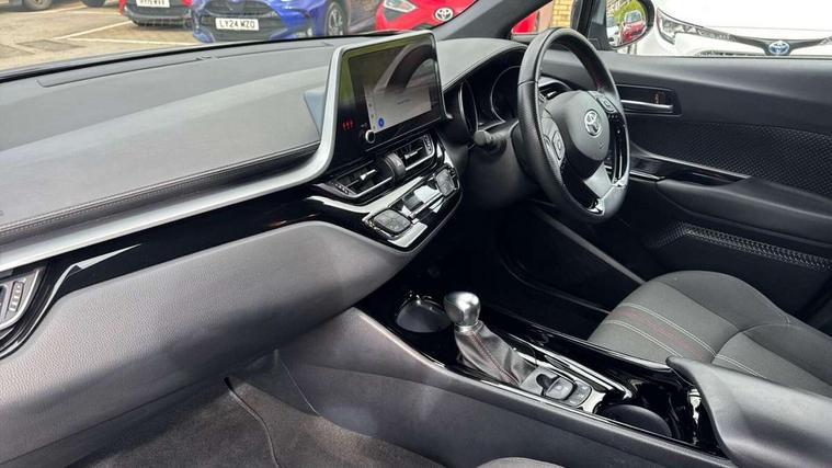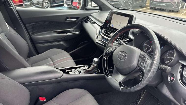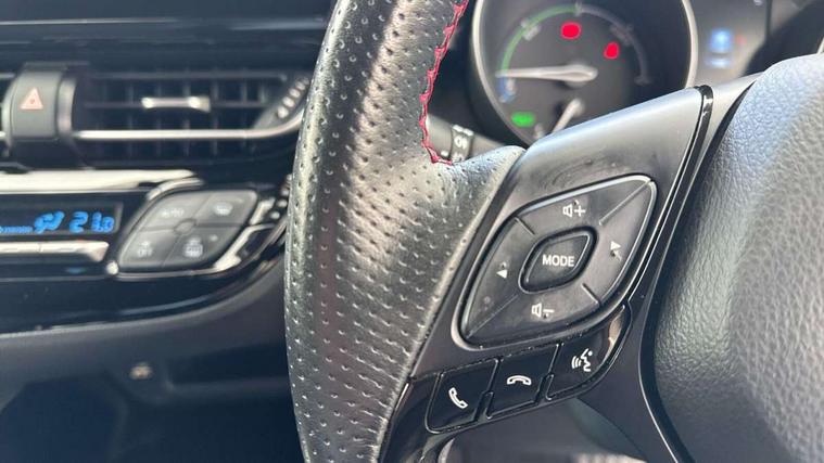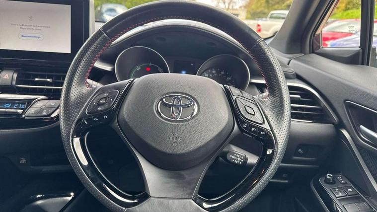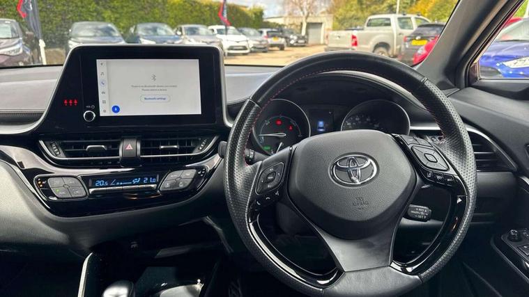 4.2" coloured TFT screen for multi-information display, Adaptive cruise control, Apple car play and Android auto, Bluetooth connectivity, E-call, Electric power steering, Hybrid system indicator, Lane departure alert with steering control, Lane trace assist, Push button tailgate release, Remote boot door release in cabin, Remote boot door release in key, Reversing camera, Road sign assist - RSA, Simple Intelligent parking assist, Smart voice assist, Touch 2 Go navigation system, Trip computer, Voice recognition, Wireless smartphone integration, Vehicle Stability Control (VSC), 6 speakers, AM/FM radio, DAB Radio (Digital Audio Broadcasting), Toyota touch 2 multimedia system with 8" display, USB connector, Wi-fi connectivity, Adaptive front light system, Adaptive LED Headlights, Anti-jam protection on power windows, Auto high beam, Auto up and down function on all power windows, Automatic headlight levelling, Automatic headlights, Automatic headlights cut-off, Black and body coloured rear bumper, Black upper front grille, Body colour door handles, Body colour door mirrors, Body coloured front bumper, Boot door release with push button, Chrome front lower bumper, Electric heated door mirrors, Follow me home headlights, Front and rear power windows, Front spoiler lip in black, Headlight cut off reminder, Honeycomb lower front grille, LED daytime running lights, LED fog lights, LED front light guide, LED High mounted stop light, LED rear brake lights, LED rear combination lights, Noise reduction layer on front windows and windscreen, Power adjustable door mirrors, Privacy glass, Rain sensor, Rear sequential indicators, Rear side wing doors, Rear spoiler, Rear tailgate, Rear window defogger, Rear window wiper, Shark fin antenna, UV-filter on driver and passenger windows, UV-filter on rear windows, Variable front intermittent wipers, 12v power outlet - front, 3 rear headrests, 3 seat bench in 2nd row, 3 spoke perforated leather steering wheel, 60/40 split folding 2nd row rear seats, Adjustable rear headrests, Adjustable speed limiter switch on steering wheel, Assist grips front and centre pillar, Audio and telephone switches on steering wheel, Black front door assist grips, Blue ambient lighting on front cup holders, Blue ambient lighting on front doors, Boot light, Chrome interior door handles, Cloth upholstery, Driver and front passenger personal light, Driver and front passenger Whiplash Injury Lessening seats, Driver and passenger seatback pockets, Dual zone automatic air conditioning, Floor mats, Front cupholders, Front head restraints, Front sports seats, Glovebox with internal light, Hard tonneau cover, Heated driver and front passenger seats, Hooks for luggage holding net, Humidifying Nanoe air purifier, Illuminated entry system, Isofix attachments on outer rear seats, Leather gearshift, Light on driver sun visor, Light on passenger sun visor, Manual telescopic steering wheel, Manual tilt steering wheel, Manually height adjustable driver seat, Manually height adjustable front passenger seat, Manually reclining driver seat, Manually reclining front passenger seat, Manually sliding driver seat, Manually sliding front passenger seat, Microphone on front personal light, Mirror on driver sun visor, Mirror on passenger sun visor, Multimedia switches on steering wheel, Pollen filter, Power adjustable lumbar support on driver seat, Shopping bag hooks, Single front passenger seat, Slow opening on lower glovebox, Voice recognition switch on steering wheel, Tech with parking sensor pack - C-HR, 16 Disk front wheel brake, 3x3 point rear seatbelts, ABS+EBD+Brake assist, Electronic parking brake, Front and rear seatbelt reminder, Front passenger airbag on/off switch, Hill start assist control (HAC), Pre collision system with pedestrian detection, Pre-tensioners and force limiters, Rear door child safety locks, SRS Airbags - Driver + Front passenger, front side, front and rear curtain and driver's knee airbags, Toyota safety sense, Tyre pressure monitoring system, Tyre pressure warning system, Acoustic vehicle alert system (AVAS), Glass-breaking alarm sensors, Immobiliser, Intrusion alarm, Intrusion sensor, Motion sensor alarm, Power door locks, Power passenger window lock, Remote central locking, Black lower dashboard, Black upper dashboard, Piano black console, Silver deco line on upper dashboard, 19" Black machined alloy wheels, Tyre repair kit,