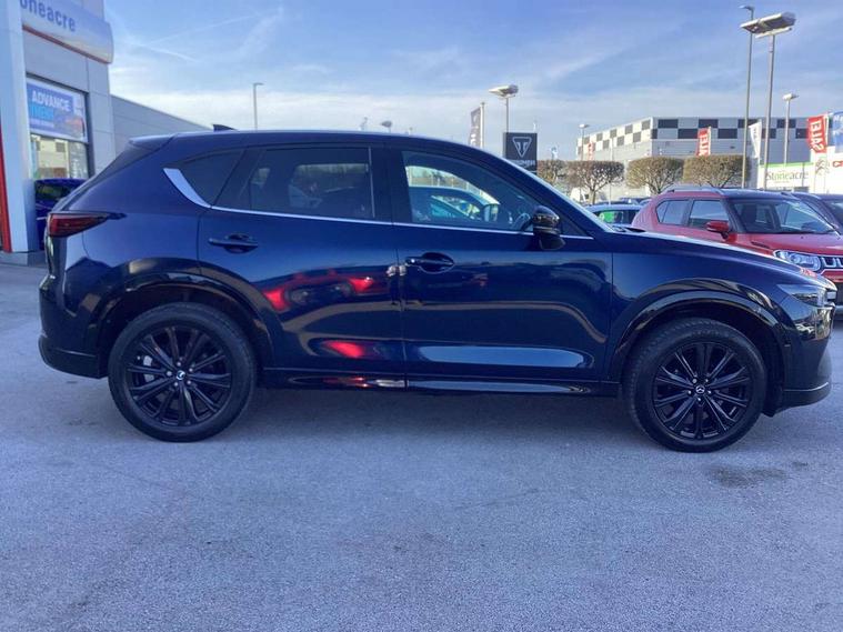 10.25" display with Mazda Connect infotainment, 7" colour TFT display, Advanced blind spot monitoring, Bluetooth connectivity with voice control, Collision prevention assist, Connected services, Cruising Traffic Support, Electric power steering, Emergency stop signalling system, Engine start/stop button, Forward collision warning, Front and rear parking sensors, Integrated navigation system, Intelligent speed assist, Lane departure warning system, Lane keep assist, Power liftgate, Qi wireless phone charging, Radar cruise control, Rear cross traffic alert, Reversing camera, Service indicator, Traffic sign recognition (TSR), Trip computer, Windscreen projected colour active driving display (HUD) with memory, Wireless apple car play/android Auto, Cylinder Deactivation, i-stop, AM/FM radio, Bluetooth audio streaming, Bose premium sound system with 10 speakers, DAB Digital radio, Multimedia Commander including separate volume dial, Steering wheel mounted audio controls, Adaptive front lighting system, Auto dimming rear view mirror, Automatic headlights, Black honeycomb door trim decoration panel, Black honeycomb interior decoration panel, Body colour roof spoiler, Coming/leaving home lighting function, Door mirror integrated indicators, Dual large chrome tailpipes, Dusk sensitive headlamps, Electric front/rear windows with one touch auto up/down, Front grille in gloss black finish, Front grille in gloss black with red accent + gloss black signature wing, Gloss black B and C pillars garnish, Gloss black door mirrors, Gloss black front and rear lower bumper mouldings, Gloss black tire arch and side mouldings, High beam assist, Intermittent rear wash/wipe, LED auto levelling, LED daytime running lights, LED front fog lights, LED Headlights, LED third brake light, Power folding and heated door mirrors, Power tilt/slide sunroof, Privacy glass (rear side windows only), Rain sensing front wipers, Rear side wing doors, Red front grille accent, Red stitching and accents on door trim, knee pad, console lid, steering wheel, shift boots, Scuff plates, Shark fin antenna, Signature LED rear combination lights, Variable intermittent front wash/wipe, Windscreen wiper de-icer, 12v electrical power outlet, 3 seat bench in 2nd row, 3 stage heated front seats, 40:20:40 Karakuri fold-flat seat system, 6 way electric adjustable passenger seat, 8 way electric driver seat with lumbar support + memory, Black roof lining, Cargo room flat floor board with waterproof undertray, Driver seat power slide, recline and height adjustment, Driver, Front passenger and two rear grab handles with coat hooks, Driver/passenger front seatback pockets, Driver/passenger sunvisors + illuminated vanity mirrors (drivers with ticket holder), Dual zone climate control, Folding centre armrest with 2 cup holders, Front and rear door pockets, Front centre storage with two cupholders, Front passenger seat power slide, recline and height adjustment, Gear shift indicator, Heated steering wheel, Humidity sensor, Illuminated glovebox, Interior dome light with integral spotlight, ISOFIX child seat anchorage points attached on outer rear seats, Karakuri tonneau cover, Leather upholstery, Leather wrapped steering wheel and gear knob, Luggage compartment LED lighting, Luggage compartment power outlet, Rear air vents, Rear headrests, Rear seat recline, Roof mounted sunglasses holder, Single front passenger seat, Three height adjustable head restraints, Tilt/height adjustable steering wheel, USB Connectivity (2x front Type-C, 2x rear Type-B), White interior LED illumination lighting, 3 point front seatbelts with pre-tensioners, 3 rear 3 point seatbelts, ABS, Advanced Smart City Brake Support - SCBS, Child locks on rear doors, Driver and front passenger side airbags, DSTC-Dynamic Stability and Traction Control, Dual front airbags, Electronic brake force distribution, Electronic parking brake with auto hold, ESP, Front and rear curtain airbags, Front passenger airbag deactivation, G-Vectoring control, Hill hold assist, Seatbelt reminder front and rear, Single stage passenger airbags, Smart brake support with forward obstruction warning, Tyre pressure monitoring system, Automatic door locking when moving off, Deadlock, Immobiliser, Power door locks, Remote central locking, Smart keyless entry, Thatcham Cat.1 alarm, 19" Black alloy wheels, Tyre repair kit,