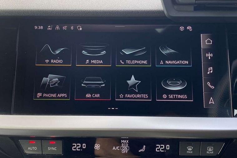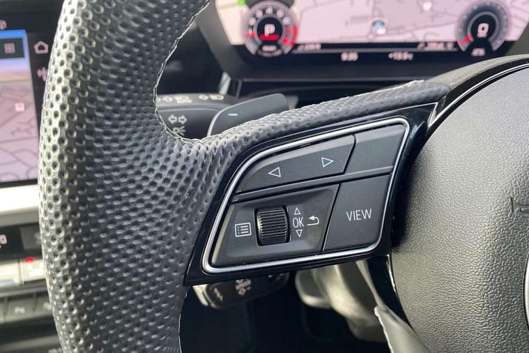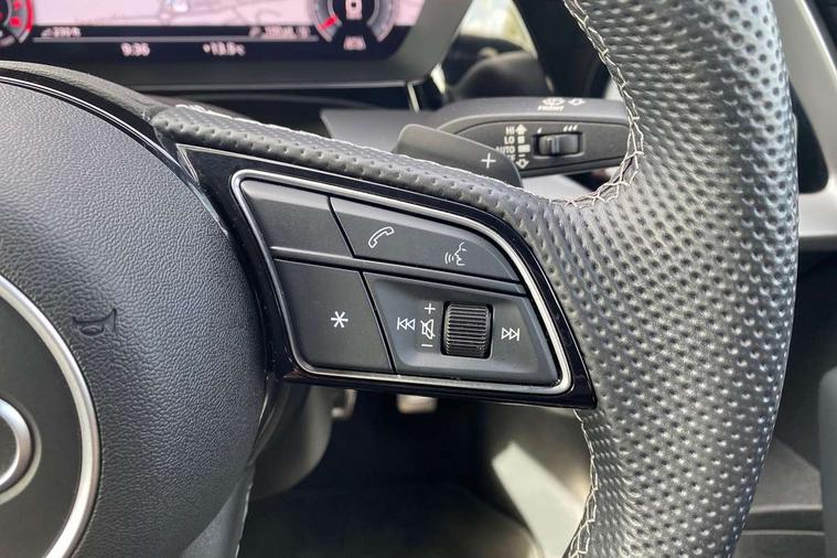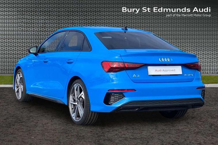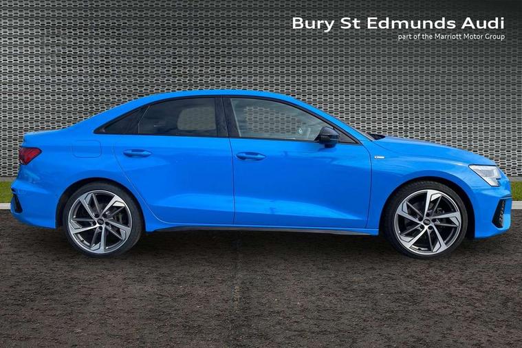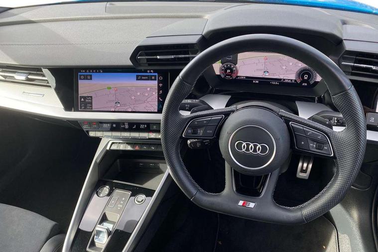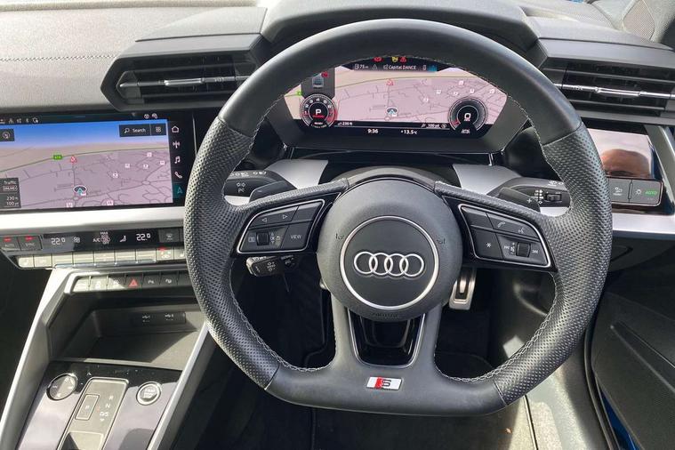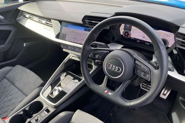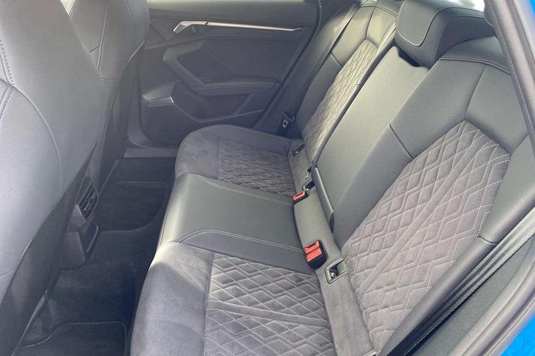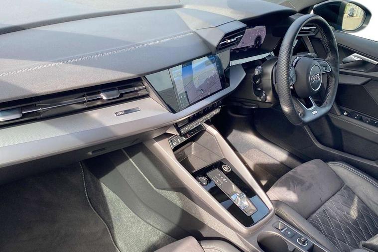 Aluminium air vent surrounds, Aluminium trim elements, Dark spectrum aluminium inlays, accent surfaces in the dashboard and centre console in platinum grey silk effect paint finish, Aluminium interior elements pack - A3 Saloon, Black styling pack - A3/S3, Dinamica microfibre/mono.pur 550 artificial leather pack - A3 Saloon, Extended ambient lighting pack - A3/S3 Saloon, LED interior lighting pack - A3 Saloon, 19" 5 arm trapezoid design alloy wheels in matt grey with diamond cut finish, Anti theft alarm, Anti-theft wheel bolts, Electronically operated child locks, Immobiliser, Remote control central locking, 2x USB Type C ports (for charging and data transfer), 6 passive loudspeakers, CD player, DAB Digital radio, 3x3 point rear seat belts, Driver and front passenger airbag with passenger airbag deactivation, Electronic Stabilisation Control (ESC) including ABS, ASR and EDL, First aid kit with warning triangle and 2 safety vests, Front side airbags with head airbags and interaction airbag, Hill hold assist, Pre-sense front with pedestrian and cyclist detection, Seatbelt monitoring, Tyre pressure loss indicator, 3rd brake light, Acoustic glass windscreen, Audi matrix LED headlights, LED rear lights, dynamic front and rear indicators and headlight cleaning system, Auto dimming frameless rear view mirror, Electrically adj heated/folding + automatically dimming exterior mirrors + automatic kerb side function for passenger side exterior mirror, Front electric windows, Illuminated door sills with aluminium inserts at the front with S logo, Integrated LED indicators in door mirrors, LED daytime running lights, Light and rain sensors, Model and engine designation badges at rear, Privacy glass - dark tinted rear window, rear door and side windows, Rear boot, Rear electric windows, Rear side wing doors, S roof spoiler, 12V socket and storage compartment in front centre console, 3 seat bench in 2nd row, 4 way electrically adjustable lumbar support for driver and front passenger, 40/20/40 split folding rear seat bench with cupholder, Black cloth headlining, Dual zone electronic climate control, Electrically adjustable front seats, Front and rear centre armrest in leather, Front and rear headrests, Front/rear floor mats, Heated front seats, Height and reach adjustable steering wheel, Illuminated vanity mirror, Interior lighting - glove compartment light and right hand side, Luggage compartment floor covering, Manual boot compartment lid, Single front passenger seat, Stainless steel pedals and front footrest in black, Audi connect emergency call and service, Audi drive select (Auto, Comfort, Dynamic, Efficiency and Individual), Audi smartphone interface, Audi virtual cockpit plus - 12.3" dynamic digital instrument cluster, Automatic start/stop system with recuperation, Bluetooth interface, Collision avoidance assistant, Electromechanical power speed sensitive steering, Lane departure warning system, MMI Navigation Plus with high resolution 10.1" colour touch screen display, Service indicator, Voice control system with natural language interaction, Sports suspension,