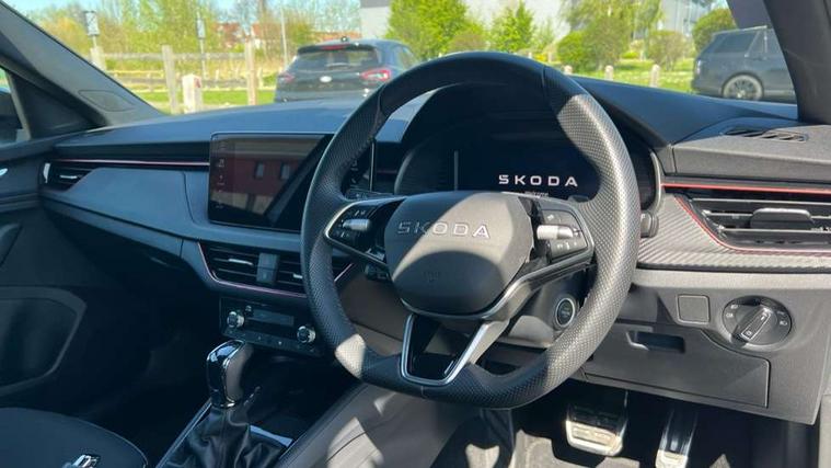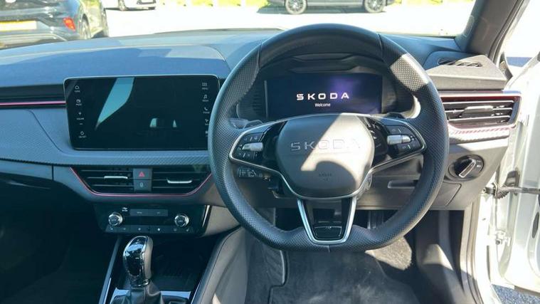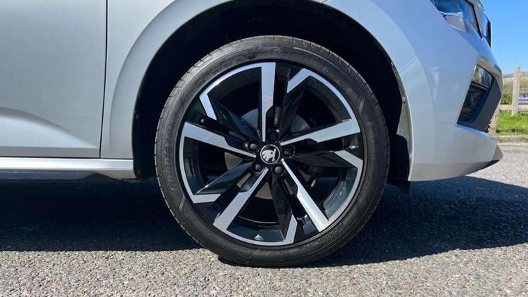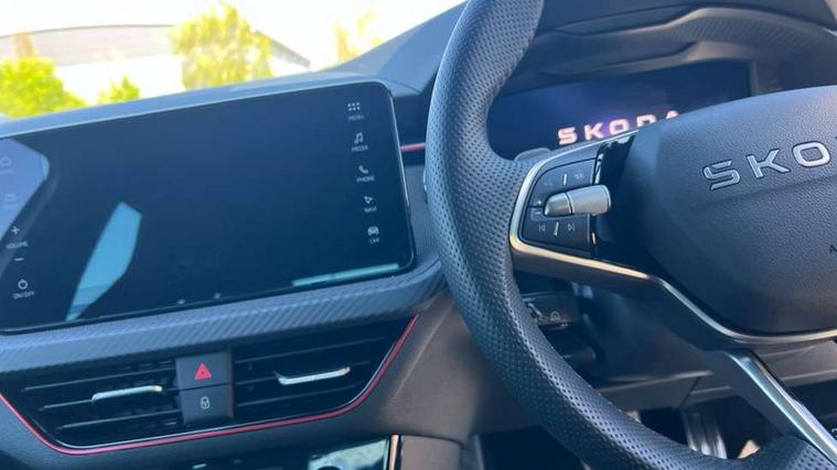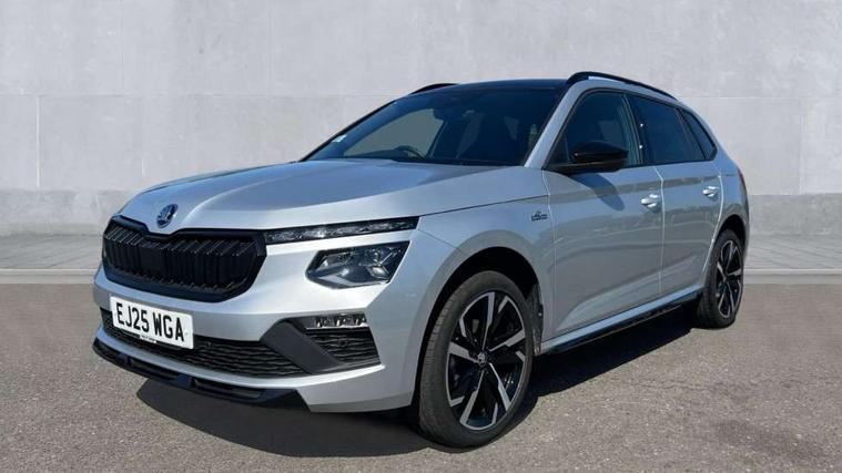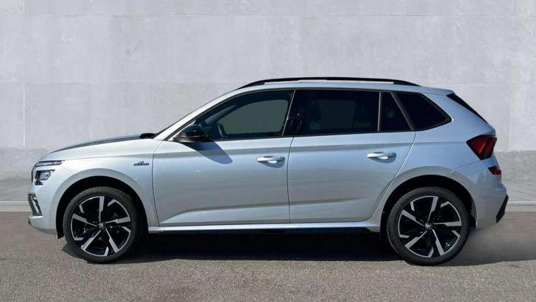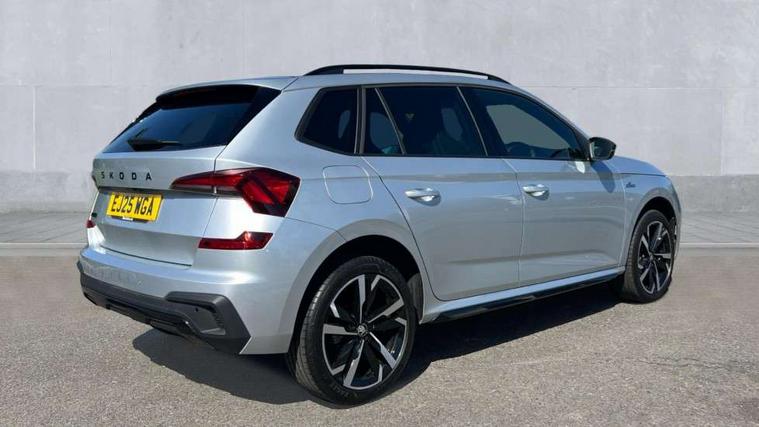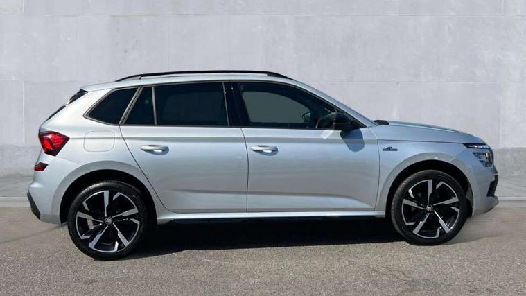Advanced driver attention and drowsiness monitor, Bluetooth system, E-call, Front assist system, PAS, Rear parking sensors, Rear view camera, Service indicator, Speed limiter, Traffic sign recognition, Virtual cockpit with 10.25" display, Voice control system, Wireless smartlink, 4 USB C ports, 8 Speakers, 9.2" Skoda navigation display, DAB Digital radio, Auto dimming rear view mirror, Automatic headlight control with coming home and leaving home feature, Black door mirrors, Black radiator grille, Black rear diffuser, Black roof spoiler, Body colour bumpers, Body colour door handles, Boot lettering in black, Extended tailgate glass, Fixed panoramic sunroof with black roof rails, Front and rear electric windows, Heated rear window, LED daytime running lights, LED high beam, LED low beam, LED third brake light, Light sensors, Monte carlo plaque, Privacy glass, Rear side wing doors, Rear wiper, Ticket holder inside windscreen, 12V socket in luggage compartment, 3 seat bench in 2nd row, Aluminium pedals, Ambient lighting in white/red, Art leather carbon decor inserts, Art leather carbon door inserts, Black roof lining, Cargo elements, Chrome inner door handles, Driver and passenger sun visors with vanity mirror, Dual zone climate control, Front and rear roof lights, Front centre armrest, Front head restraints, Glove compartment with illumination, Height adjustable driver seat, Height adjustable front passenger seat, Ice scraper, Inner circulation control with pollen filter, ISOFIX on front passenger seat, Isofix preparation for back seats, Leather gearknob and handbrake lever, Manual lumbar support for front seats, Monte Carlo cloth upholstery, Net package and top tether hooks in boot space, Net under rear shelf, Pocket on the back of both front seats include mobile phone pockets, Rake/reach adjustable steering wheel, Reading lights, Rear centre armrests, Red hotstamping, Single front passenger seat, Sports seats, Textile floor mats, Third rear headrest, Top tether for front passenger seat, Umbrella in driver's door, Light and view plus package - Kamiq, 3x3 point rear seatbelts, Airbags - driver and front passenger, Disc brakes, ESP, Extended and predictive pedestrian/cyclist protection, Front passenger airbag deactivation switch, Front side airbags with curtain airbags, Hill hold control, Manual leather parking brake, Manual rear child locks, One tone horn, Seatbelt reminder for driver an co-driver, Traction control, Tyre pressure monitor, Anti-theft alarm system with interior monitoring, backup horn, towing protection and remote central locking with SAFE system, Anti-theft wheel bolts, Electronic engine immobilizer, 18" Ursa black diamond cut alloy wheels,