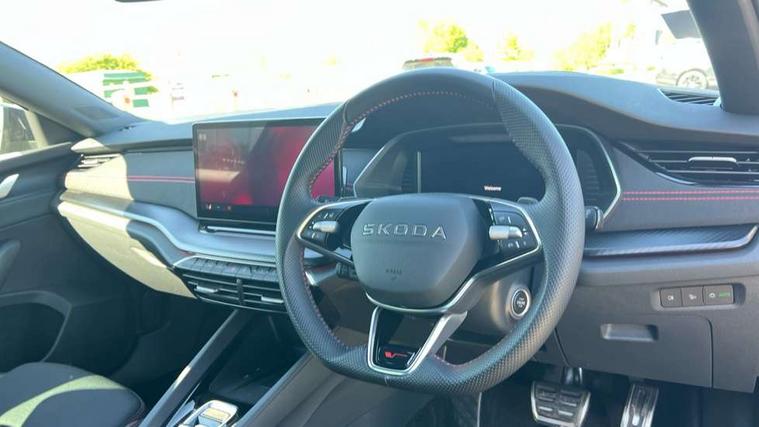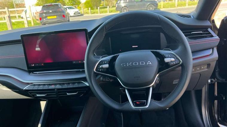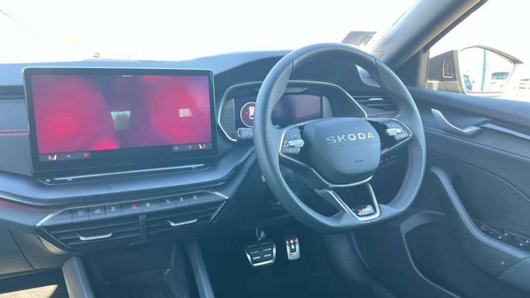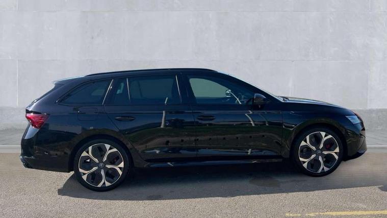 1x USB Typc C port in rear view mirror, 4x USB Type C ports - 2x in front centre console and 2x in rear (45W), Drive mode selection, Driver fatigue sensor, eCall emergency system, Electronic engine sound, Front assist system, Progressive dynamic steering, Traffic sign recognition, Turn Assist, Virtual Cockpit - 10.25" digital display, Voice control system, Wireless charging (15W) with cooling function, Wireless SmartLink for Apple CarPlay and Android Auto, Electronically controlled limited slip differential, vRS suspension, 13" touchscreen display with navigation, DAB Digital radio, Aero front windscreen wipers with intermittent function, Auto dimming rear view mirror, Black sport exhaust pipes, Body colour bumpers, Body colour door handles, Bumpers with rear red reflector strip, Electric front and rear windows, Exterior gloss black sports styling including front grille, window surrounds, door mirrors and badging, Gloss black diffuser, Gloss black roof rails, Gloss black spoiler, Heated rear windscreen, High beam control, High level third brake light, Ice scraper in fuel cap, LED daytime running lights, Logo projection in front doors, Rain and light sensors, Rear fog light on one side and reversing lights on both sides, Rear privacy glass, Rear side wing doors, Rear window wiper, Unique vRS bumpers and exterior styling, 12 volt socket in boot, 2x umbrella in door, 3 rear headrests, 3 seat bench in 2nd row, 4 foldable roof handles, Aluminium pedals, Front head restraints, Front sport seats, Heated front seats, Illuminated glovebox, Interior door handles in dark chrome, Jumbo Box storage, Luggage compartment lighting x2 lights, Mechanical rear seat release from boot, Single front passenger seat, Steering wheel in black leather with black stitching, Storage compartments in left and right of boot, Sun visors with mirrors, Sunglasses storage, Three spoke leather sports multifunction steering wheel with paddles, Ticket holder, Unsplit rear bench seat, split folding backrest with centre armrest with cupholder, Waste bin in door panel, Comfort package - Octavia Estate, Family package - Octavia, Light and view package plus - Octavia, vRS Design Selection pack - Octavia, 3x3 point rear seat belts, Alarm with interior monitoring, tilt sensor and back up horn, Curtain airbags and front side airbags, Driver and front passenger airbags, Drivers knee airbag, Electronic parking brake, ESC including ABS, EBV, MSR, ASR, EDS, HBA, DSR, Front central airbag, Hill hold assist, ISOFIX on front passenger seat and outer rear seats, Passenger airbag deactivate switch, Red brake calipers, Three point seat belts in front and rear, Two tone horn, Tyre pressure monitor, Visual and acoustic seat belt reminder, Warning reflectors in front door, Anti-theft wheel bolts, Keyless entry and start/stop, Remote central locking, Gloss black air vent surrounds, 19" Elias anthracite alloy wheels,