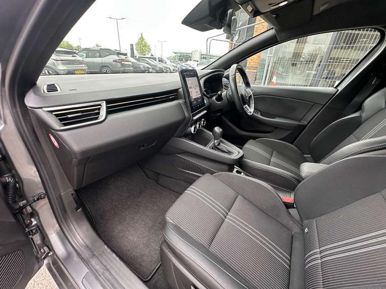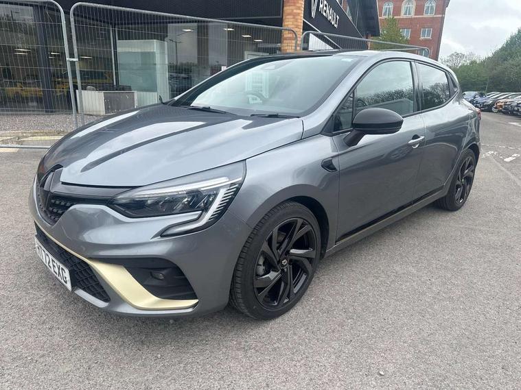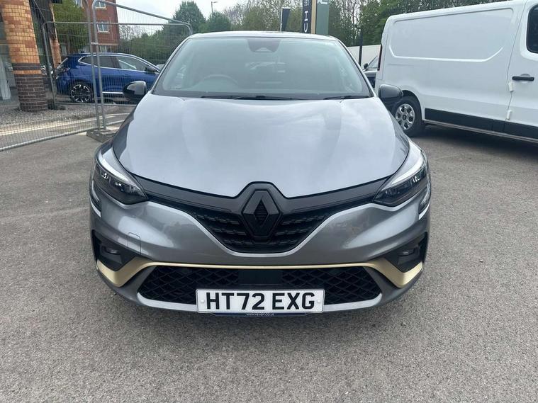 10" TFT Driver information display, Apple car play/Android Auto, Cruise control + speed limiter, E-call, Easy link navigation with 9.3" touchscreen+4x20W amplifier+FM DAB double tuner, sound auditorium, 2xUSB/1xjack/bluetooth, smartphone integration plus, Eco mode driving function, Emergency call system, Front parking sensors, Gear change indicator, Lane departure warning system, Lane keep assist, Over speed prevention, Rear parking sensors, Rear view camera, Traffic sign recognition, Trip computer, Variable assistance electric PAS, E-TECH battery, Auto dimming rear view mirror, Auto high beam assist, Auto light control and rain sensing wiper, Automatic headlights, Black Renault logo front and rear, Black wing mirrors, Body colour door handles, Bumpers - gold styling elements, Chrome front grille, Drivers one touch window with anti-pinch feature, E-TECH badging, gold sports front bumper, sports lower grill, side and rear E-TECH engineered markings and gold detailing, Electric front windows, Electric rear windows, Exterior rear hidden door handles, Extra tinted glass on rear windows + tailgate, Front and rear LED roof light x 2, Full C-shape LED front and rear signature lighting, Full LED front and rear headlamps integrating daytime running lights at the front and rear, Gun metal grey sport rear bumper, Gun Metal insert on lower side doors with Clio embossing, Heated rear windscreen, LED front fog lights, LED reverse light, LED third brake light, Manual folding wing mirror mechanism, Manually adjustable door mirrors, Rear fog lights, Rear roof spoiler - gold styling elements, Rear side wing doors, Rear wiper, Shark fin antenna, Variable speed on front windscreen wipers, 12V Accessory socket, 3 rear height adjustable headrests, 3 seat bench in 2nd row, 6.2L front glovebox, 60/40 split and fixed base rear seat bench, Air recirculation control, Auto climate control, Black headlining, Black hooks on boot floor x 4, Centre console with storage and armrest, Dark roof lining and aluminimum pedal set, E-TECH Engineered interior trim including airvent gold stripe, renault diamond gold surround and gearshifter with gold stitching, Fabric upholstery, Front cupholders, Front decor strip in red, Front door storage bin, Height adjustable front headrests, Height/reach adjust steering wheel, Isofix system on outer rear seats, Luggage nets in boot, Mechanical height adjustable front seats, Multi function steering wheel, Multisense including ambient lighting and selectable drive modes, Pollen filter, Single front passenger seat, Sun visor without light, Synthetic leather steering wheel, System for Restraint and Protection SRP-front seats, 3 point seatbelts on all rear seats, ABS+EBA, Active emergency braking system, Curtain airbags, Distance warning alert, Driver and passenger front and side airbag deactivation, Driver/Front Passenger airbags, Electronic parking brake with auto hold, ESC - Electronic Stability Control + traction control, Front side airbags(head+thorax), Height adjustable driver's seatbelt, Hill start assist, Seatbelt warning, Tyre pressure warning, Deadlocking system, Hands free key card with push button, start and stop function, Locking fuel filler cap, RAID (Renault Anti-Intruder Device) with automatic door locking, Rear side wing door and window child locking function (front driver door control panel), Remote central locking with thatcham approved immobiliser, Upper dashboard cover, 17" E-TECH Engineered Diamond Cut Alloy with Gold Inserts,