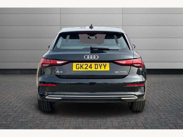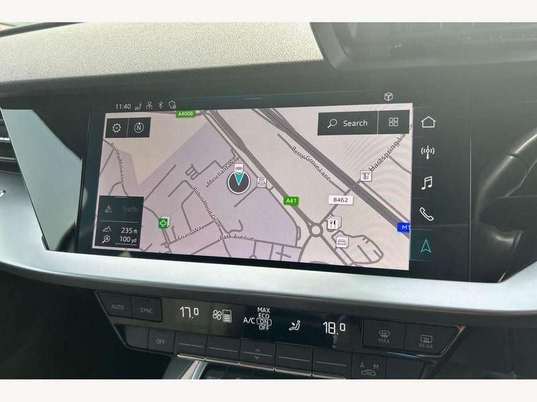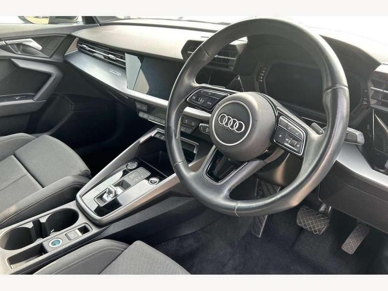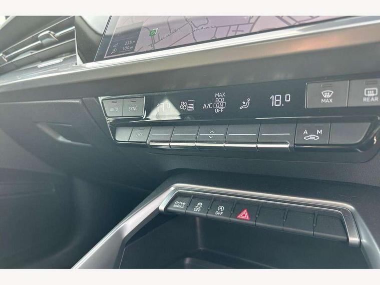Audi drive select (Auto, Comfort, Dynamic and Individual), Audi smartphone interface, Audi Virtual Cockpit - 10.25" digital and colour instrument cluster, Automatic start/stop system with recuperation, Bluetooth interface, Camera based traffic sign recognition, Collision avoidance assistant, e-Call (emergency call), Electromechanical power speed sensitive steering, Lane departure warning system, MMI Navigation Plus with high resolution 10.1" colour touch screen display, Service indicator, Trip computer, Voice control system with natural language interaction, Standard suspension, 2xUSB-C connection with data and charging functions, 6 passive loudspeakers, DAB Digital radio, 3rd brake light, Acoustic glass windscreen, Aluminium window trim, Auto dimming frameless rear view mirror, Body colour exterior mirrors, Body colour roof spoiler, Electrically adjustable/heated/folding/auto dimming door mirrors with integrated LED indications + kerb view function for passenger side, Front electric windows, LED daytime running lights, LED headlights and halogen rear lights, Light and rain sensors, Rear electric windows, Rear side wing doors, Rear window, rear door windows and rear side windows in clear glass, Rear wiper, 12V socket and storage compartment in front centre console, 3 seat bench in 2nd row, 3 spoke leather multifunction steering wheel with paddle shift, 4 way electrically adjustable lumbar support for driver and front passenger, 60/40 split folding rear seat bench, Dual zone electronic climate control, Front and rear headrests, Front centre armrest, Front door sill trims with aluminium inlay, Front/rear floor mats, Height and reach adjustable steering wheel, Interior lighting - Front and rear roof module including reading lights, glove compartment light and right hand side, Interior lighting - glove compartment light and right hand side, Luggage compartment floor covering, Manual boot compartment lid, Manually adjustable front seats, Routine cloth upholstery with front sports seats, Seat side bolsters, Single front passenger seat, Steel grey cloth headlining, Aluminium interior elements pack - A3 Sportback, LED interior lighting pack - A3 Sportback, Sport styling pack - A3 Sportback, 3x3 point rear seat belts, Driver and front passenger airbag with passenger airbag deactivation, Electronic Stabilisation Control (ESC) including ABS, ASR and EDL, First aid kit with warning triangle and 2 safety vests, Front side airbags with head airbags and interaction airbag, Pre-sense front with pedestrian and cyclist detection, Seatbelt monitoring, Tyre pressure loss indicator, Anti theft alarm, Anti-theft wheel bolts, Electronically operated child locks, Immobiliser, Remote control central locking, Inlays with silk effect paint in platinum grey,