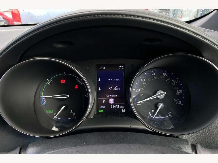 4.2" coloured TFT screen for multi-information display, Adaptive cruise control, Bluetooth connectivity, E-call, Electric power steering, Hybrid system indicator, Lane departure alert with steering control, Lane trace assist, Push button start, Push button tailgate release, Remote boot door release in cabin, Remote boot door release in key, Reversing camera, Road sign assist - RSA, Smart voice assist, Trip computer, Voice recognition, Vehicle Stability Control (VSC), 6 speakers, AM/FM radio, DAB Radio (Digital Audio Broadcasting), Toyota touch 2 multimedia system with 8" display, USB connector, Wi-fi connectivity, Anti-jam protection on power windows, Auto high beam, Auto up and down function on all power windows, Automatic headlights, Automatic headlights cut-off, Black and body coloured rear bumper, Black lower front grille, Black upper front grille, Body colour door handles, Body colour door mirrors, Body colour front spoiler lip, Body coloured front bumper, Boot door release with push button, Electric heated door mirrors, Follow me home headlights, Front and rear power windows, Front fog lights, Headlight cut off reminder, Honeycomb lower front grille, LED daytime running lights, LED High mounted stop light, LED rear brake lights, LED rear combination lights, Manual headlight levelling, Manually retractable door mirrors, Noise reduction layer on front windows and windscreen, Power adjustable door mirrors, Rear side wing doors, Rear spoiler, Rear tailgate, Rear window defogger, Rear window wiper, Reflective LED headlights, Shark fin antenna, UV-filter on driver and passenger windows, UV-filter on rear windows, 12v power outlet - front, 3 rear headrests, 3 seat bench in 2nd row, 3 spoke leather steering wheel, 60/40 split folding rear seat, Adjustable rear headrests, Adjustable speed limiter switch on steering wheel, Assist grips front and centre pillar, Audio and telephone switches on steering wheel, Black front door assist grips, Boot light, Chrome interior door handles, Cloth upholstery, Driver and front passenger personal light, Driver and front passenger Whiplash Injury Lessening seats, Dual zone automatic air conditioning, Floor mats, Front cupholders, Front head restraints, Front sports seats, Glovebox with internal light, Hard tonneau cover, Hooks for luggage holding net, Humidifying Nanoe air purifier, Illuminated entry system, Isofix attachments on outer rear seats, Leather gearshift, Light on driver sun visor, Light on passenger sun visor, Manual telescopic steering wheel, Manual tilt steering wheel, Manually adjustable lumbar support on driver seat, Manually height adjustable driver seat, Manually height adjustable front passenger seat, Manually reclining driver seat, Manually reclining front passenger seat, Manually sliding driver seat, Manually sliding front passenger seat, Microphone on front personal light, Mirror on driver sun visor, Mirror on passenger sun visor, Multimedia switches on steering wheel, Pollen filter, Shopping bag hooks, Single front passenger seat, Slow opening on lower glovebox, Voice recognition switch on steering wheel, 16 Disk front wheel brake, 3x3 point rear seatbelts, ABS+EBD+Brake assist, Electronic parking brake, Front and rear seatbelt reminder, Front passenger airbag on/off switch, Hill start assist control (HAC), Pre collision system with pedestrian detection, Pre-tensioners and force limiters, Rear door child safety locks, SRS Airbags - Driver + Front passenger, front side, front and rear curtain and driver's knee airbags, Toyota safety sense, Tyre pressure monitoring system, Tyre pressure warning system, Acoustic vehicle alert system (AVAS), Glass-breaking alarm sensors, Immobiliser, Intrusion alarm, Intrusion sensor, Motion sensor alarm, Power door locks, Power passenger window lock, Remote central locking, Black lower dashboard, Black upper dashboard, Grey deco line on upper dashboard, Matte black centre console, Tyre repair kit,