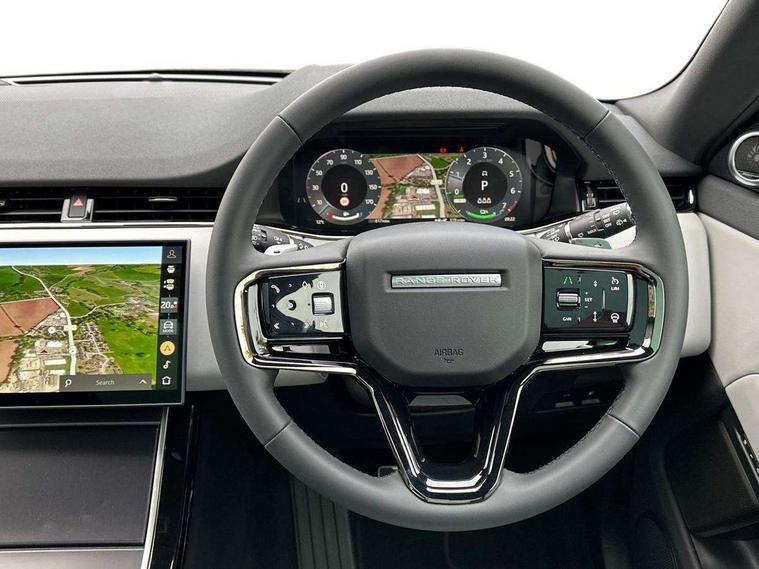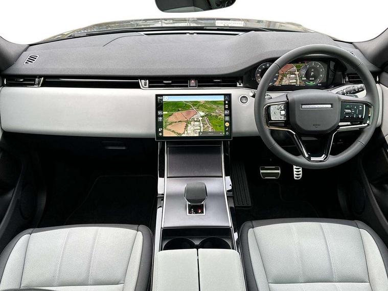 11.4" touch screen, 3D 360 degree surround camera with wade sensing, Adaptive cruise control, Android Auto, Apple car play, Blind spot assist, Bluetooth connectivity, Brake pad wear indicator warning light, Driver condition monitor, eCall emergency system, Eco mode, Electronic power assisted steering (EPAS), Front and rear parking sensors with auto brake, InControl remote, Interactive driver display, Land Rover InControl apps, Lane keep assist, Pivi pro connected includes diamond pivi variant, smart settings, connected navigation pro, nuance speech licence, Powered tailgate/boot lid, Rear collision monitor, Rear traffic monitor, Tailgate, Traffic sign recognition with adaptive speed limiter, Voice control system, Wireless device charging, All terrain progress control, Electric rear axle drive, Large fuel tank, Passive suspension, Public charging cable, Terrain Response 2, Digital Audio Broadcast radio-DAB, Steering wheel mounted controls, Acoustic laminated windscreen, Auto headlights, Auto high beam assist, Automatic headlight levelling, Electric windows with one touch open/close and anti trap, Flush deployable exterior door handles, Front and rear recovery eyes, Heated rear window with timer, Heated washer jets, Heated windscreen, LED headlights with signature DRL and LED tail Lights, Power fold, auto-dimming, heated door mirrors with approach lights and auto dimming driver side, Rain sensing windscreen wipers, Rear animated directional indicators, Rear fog lights, Rear side wing doors, Rear wiper, Tailgate spoiler, Third brake light, Winter wiper park position, 12 way driver memory and 10 way passenger electric front seats with 2 way manual headrest + 4 way lumbar support, 40:20:40 split folding rear seats with centre headrest and armrest, Bright metal pedals, Carpet mats, Chrome tread plates with range rover branding Includes stainless steel loadspace scuff plate with etched graphic, Customer configurable single point entry, Front and rear cupholders, Heated front seats, Heated steering wheel, Isofix system on outer rear seats, Manually adjustable steering column, Overhead lighting console, Overhead stowage for sunglasses, Passive front head restraints, Rear air vents, Rear head restraints, Satin chrome gearshift paddles, SE Grained leather upholstery, Single passenger seat, Standard steering wheel with Moonlight Bezel, Sunvisors with illuminated vanity mirrors, Twin sliding front centre armrest, Power socket pack 2 - Evoque, 3 rear 3 point seatbelts, Anti-lock braking system (ABS), Brake hold function, Customer configurable autolock, DSC - Dynamic Stability Control, Electronic brake force distribution, Electronic parking brake, Electronic traction control, Emergency braking, Front and rear seatbelt reminder, Hill descent control, Hill launch assist, Low traction launch, Occupant protection assist, Passenger seat occupant detector, Power operated child locks, Roll stability control, Six airbags - Driver and passenger airbags/driver knee airbag/front side airbag and curtain airbags, Torque vectoring brake, Tyre pressure monitoring system, Alarm, Immobiliser, Intrusion sensor, Keyless entry, Locking wheel nuts, All season tyres,