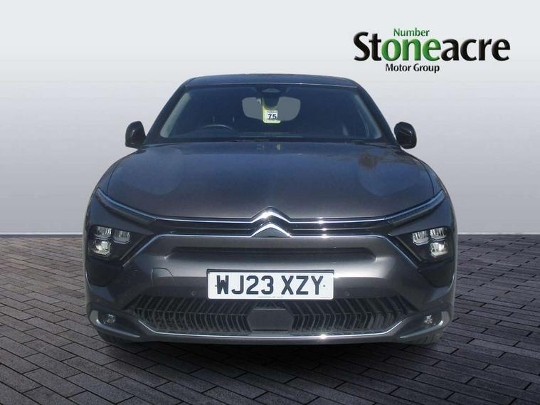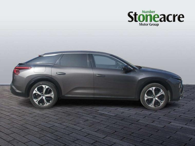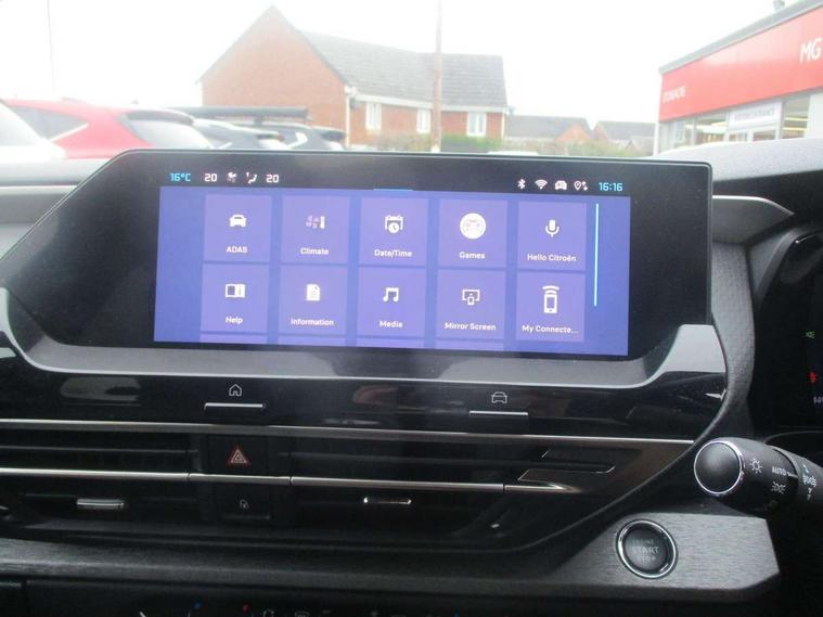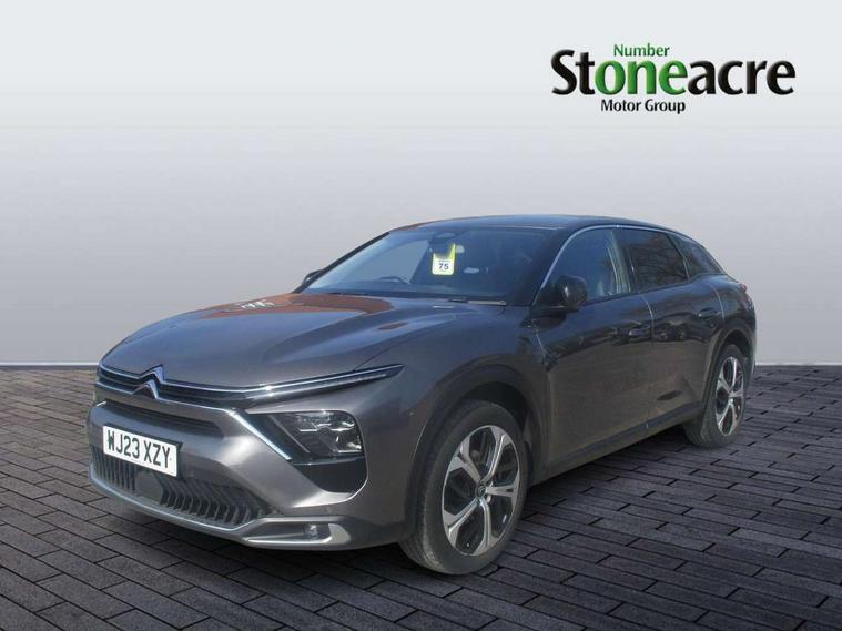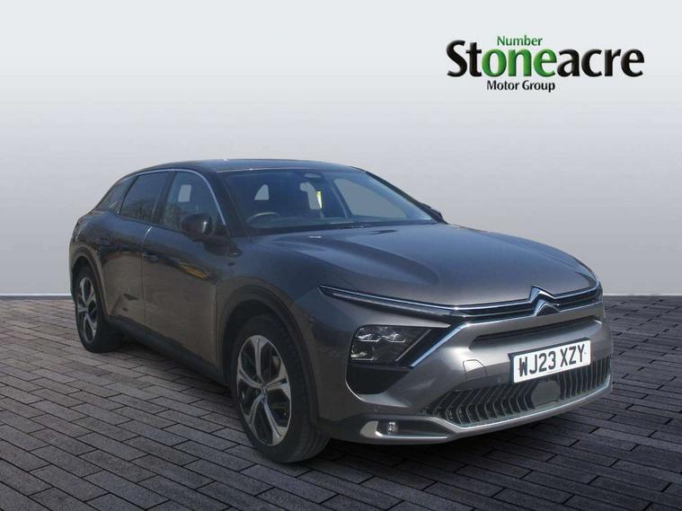 10" Central touch screen with separate heating and ventilation controls (with ADAS and Home buttons), 7'' Digital instrument cluster with smoked glass and 2 indicator lights, Camera Controlled Active Safety Brake, Citroen connect box with emergency and assistance system, Coffee Break Alert, Connected 3D navigation, Driver attention alert system, Driver information panel with lighting fault indicator, E-call, Electric variable power assisted steering, Forward collision warning, Front and rear parking sensors, In-crash braking, Lane keep assist, Multi window screen, MyCitroën Drive Plus (incorporating electronic user guide), Outside temperature display, Remote functions: horn and lighting, lock/unlock doors, vehicle status, Speed limit recognition and recommendation, Top rear vision reversing camera, Voice recognition, Wireless mirror screen, Citroen Advanced Comfort suspension with double (front & rear) progressive hydraulic cushions, 1 front USB plug C type charge + data front of centre console (able to charge IPAD), 1 rear USB C type plug charge only (able to charge IPAD), Bluetooth streaming, DAB Digital radio, Hi Fi System: 8 loudspeakers (2 front woofers, 2 front tweeters, 2 rear woofers and 2 rear tweeters), A pillar in black, Acoustic and tinted windscreen, Automatic illumination of headlamps when unlocking, Automatic rain-sensitive flat blade wipers with integrated wash function, Automatic welcome and follow me home lighting, Automatically illuminating LED headlamps with automatic High Beam Assist (with driver adjustment controls in passenger compartment), Black rear bumper trim strip, Body coloured door handles, Chrome Citroën chevrons integrated into front grille and extending outward into front light signature, Electrochrome rear view mirror, Electronic, heated, black folding door mirrors with integrated LED indicator, LED approach lighting, Extra tinted rear quarter panel windows, Extra tinted, heated rear window, Front and rear electric windows, Gloss black Citroën chevrons with chrome surround, chrome Citroën lettering and C5 X badging on rear tailgate, High level LED brake light, LED daytime running lights, LED fog lights with static cornering function integrated into front bumper apron, LED front indicators, LED rear lights, LED rear number plate lights, Rear side wing doors, Rear wiper, Remote 4-window opening/closing with plip, Tinted front and extra tinted rear windows, 12V power socket in front centre console, 3 rear headrests, 3 seat bench in 2nd row, Advanced comfort front and rear seats, Automatic dual zone air-conditioning with Soft/Normal/Fast variable settings, A/C max function and single- zone function (through touch screen), Black leather-effect central armrest with overstitching, Black tie down rings for secure load storage, Cabin air filter, Carpeted boot, Courtesy lighting: front roof light, rear roof light, central console lighting, LED illuminated glovebox and LED boot light, Dashboard mounted black, backlit, chrome-ringed start/stop button, Driver and front passenger sun visors with mirrors and LED lighting, Driver's footrest, e-Toggle automatic gear selector switch on centre-console, Fabric front and rear door panel inserts, Front and rear door pockets, Front and rear passenger storage areas in central console, Front headrests, Front seatback storage pockets, Height and reach adjustable steering wheel, High efficiency air filter, Illuminated passenger glovebox, ISOFIX points in outer rear seats with top tether anchorage points, Magic Handles - allows rear seats to be folded flat from the boot compartment, Mechanical driver's seat with fore/aft adjustment, backrest adjustment, height adjustment, lumbar adjustment and headrest, Mechanical passenger's seat with fore/aft adjustment, backrest adjustment, height adjustment, and headrest, Mistral carpet with reinforced driver's foot well, Multifunction leather steering wheel with paddle shifters, driving assistance and infotainment control functions, Plastic boot sill, Rear air vents with independent opening/closing and left and right airflow settings for rear seat passengers, Rear armrest storage and cup holders, Roll up awning fitted to tailgate, Satin chrome dashboard strip and gloss black decor on bottom of door panels, Satin chrome highlighted air vents and steering wheel, Single front passenger seat, Smartphone storage in front of (front) centre armrest, Storage area for emergency safety triangle/first-aid kit, Storage under central armrest, Urban Ambience cloth and leather-effect upholstery, 2 tone horn, ABS, Curtain airbags, Driver and front passenger airbags, Electric parking brake, Electronic Stability Programme (ESP), Five 3 point inertia reel seat belts, Front inertia reel seatbelt with pre-tensioners and force limiters, Front passenger airbag deactivation, Hill start assist function, Intelligent Traction Control system, Lateral airbags, Pedestrian protection active bonnet, Power child locks on rear doors, Tyre underinflation detection, Unfastened seatbelt visual warning system on all seats + audible warning for driver/front passenger (front passenger presence detection), Deadlocking system, Locking wheel nuts, Perimetric and volumetric anti theft alarm, Proximity keyless entry (doors, boot and fuel filler flap) and start, Dashboard and door panels decor - painted grain, 19'' Aero-X Alloys with Hephas grey paint and Onyx black aero inserts,