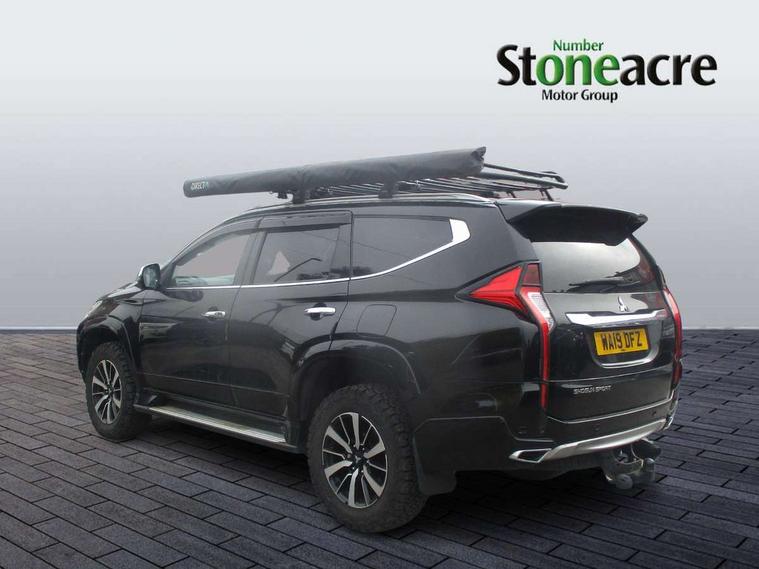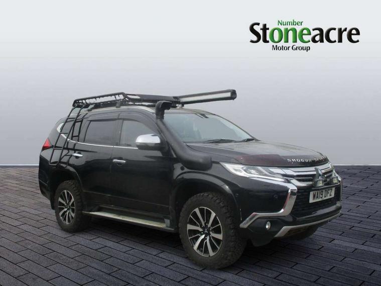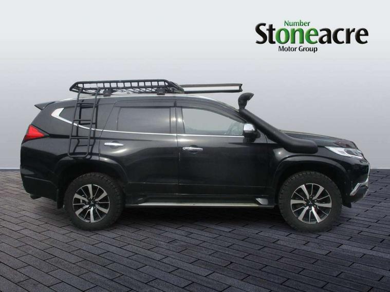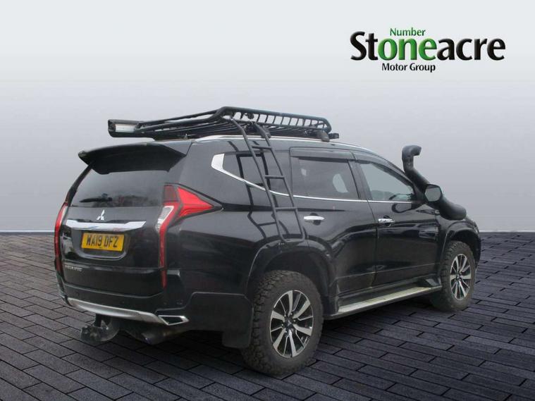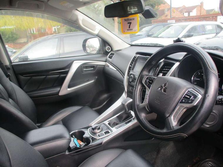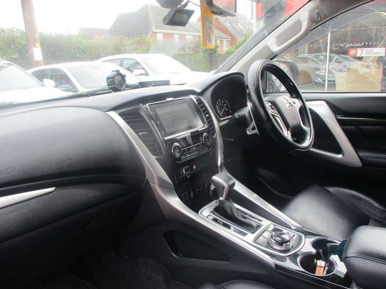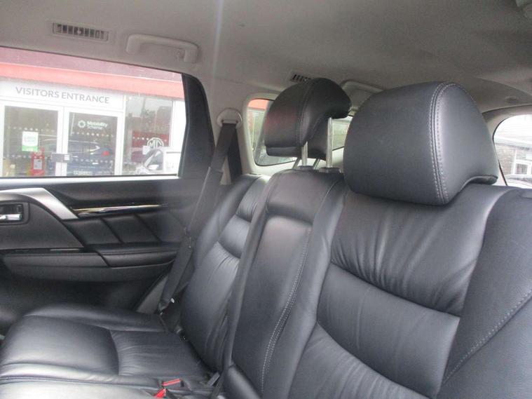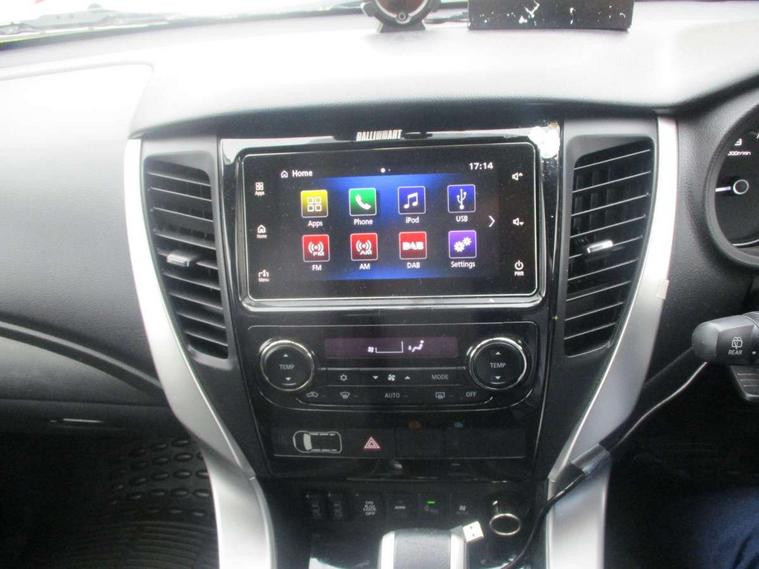 360 degree parking camera, 4WD drivetrain mode indicator, 7" touch screen, Adaptive cruise control, Android Auto, Apple CarPlay preparation, Blind spot warning, Emergency stop signalling system, Engine start/stop button, Exterior temperature gauge, Front and rear parking sensors, Lights on warning, Off-road mode, PAS, Remote fuel flap release, Smartphone link audio display, Unintended acceleration mitigation system, Diesel particulate filter, Rear differential lock, Super Select 4WD transmission, 510W Mitsubishi power sound system, Bluetooth with music streaming, DAB Digital radio, Radio with 8 speakers, Steering wheel audio controls, USB port, Auto dimming rear view mirror, Automatic rain sensors, Chrome door mirrors and handles, Chrome front grille, Colour keyed front and rear bumpers, Dusk sensing headlights, Electric folding mirrors with indicators, Front and rear electric windows, Front and rear fog lamps, Front skid plate, Headlamp washer, High mounted rear stop lamp, LED daytime running lights, LED headlamps with auto levelling, LED rear combination lamp, Rear mudflaps, Rear windscreen wiper with washer, Side and rear window privacy glass, Silver roof rails, Silver side steps, Trailer stability assist, Variable intermittent front wash/wipe, Visible VIN plate, Window mounted aerial, 3rd row head restraints, Chrome interior door handles, Dual zone climate control, Floor + luggage area carpets, Front accessory power socket, Front armrest with floor console box, Front cupholders, Front door pocket bottle holders, Front door pockets, Front power seats, Front seat and rear pockets, Front sunvisors with passenger vanity mirrors, Gearshift paddles, Glovebox, Heated front seats, Height adjustable front headrests, Height adjustable rear headrests, Isofix rear child seat preparation in 2nd row, Leather steering wheel, Leather upholstery, Leather wrapped gear shift knob, Luggage area lamp, Luggage cover, Rear air conditioning, Rear armrests with cupholder, Reclining rear seats, Tilt/telescopic steering column adjustment, 7 three point seatbelts, ABS/EBD, Active stability and traction control, Brake assist function, Childproof rear door locks, Electronic parking brake, Forward collision mitigation system, Front passenger airbag deactivation, Front seatbelt pretensioner, Front, side, curtain and knee airbags, Hill descent control, Hill start assist, Reinforced Impact safety evolution (RISE) body safety system, Seatbelt warning lamp, Tyre pressure monitoring system, Central door locking, Engine immobiliser, Keyless entry and start operation system, Locking wheel nuts, Steering lock, Thatcham Cat.1 alarm, Leather look vinyl inserts on door trim, 18" Alloy wheels, Full size spare wheel,