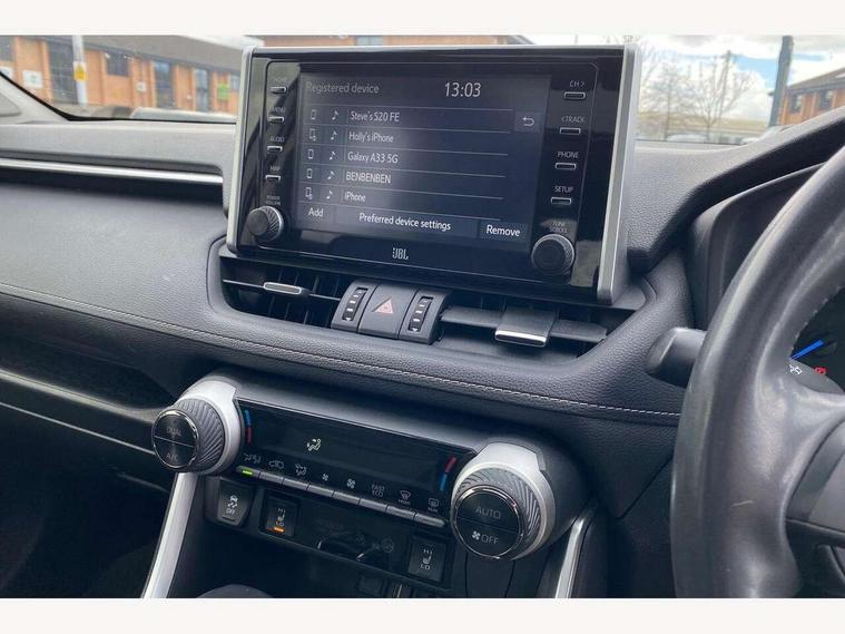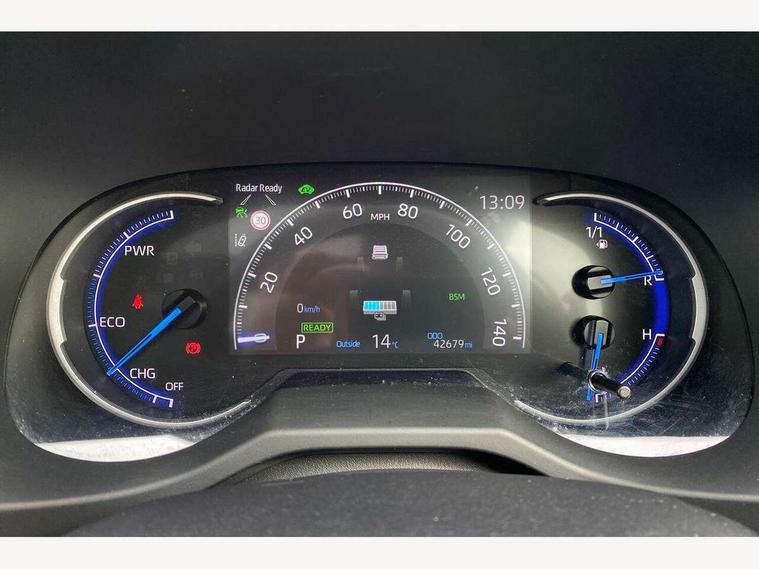 7" TFT multi information display, Analog tachometer, Apple car play and Android auto, Blind spot monitoring with rear cross traffic alert, Bluetooth system, Cyclist Detection, Drive mode selector, eCall emergency call system, ECO-driving indicator, Electric power steering, EV audible alert, Front parking sensors, Full range intelligent adaptive cruise control, Hybrid system indicator, Lane departure warning system, Lane trace assist, Lights on warning, Low screen washer fluid warning, Memory on adjustable speed limiter, My T Connected services, Night Time Pedestrian Detection, Power boot opening and closing, Push button start, Rear parking camera, Rear parking sensors, Remote boot door release in cabin, Remote boot door release in key, Road sign assist - RSA, Touch 2 Go navigation system including 3D maps and voice control, Traffic sign recognition, Trip computer, Voice control system, Vehicle Stability Control (VSC), 6 speakers, 8" Multimedia display touch screen, Auxiliary socket for external MP3 player, DAB audio, Toyota touch media system, USB connection, Adaptive automatic high beam, Automatic headlamp levelling, Automatic headlights, Automatic wipers, Automatically retractable door mirrors, Black roof rails, Body colour door handles, Body colour door mirrors, Body colour rear spoiler, Body colour roof, Body coloured bumpers, Body coloured Shark-fin antenna, Door mirror puddle lights, Dual exhaust pipes, Electric adjustable door mirrors, Electrochromatic rear view mirror, Emergency brake-light signal (EBS), Follow me home headlights, Front fog lights, Front wiper de-icer, Headlight cleaners, Heated door mirrors, LED daytime running lights, LED High mounted stop lamp, LED rear combination lights, Meshed shape upper front grille, Power front windows, Power rear windows, Privacy glass, Projector LED headlights, Rear screen wiper - intermittent, Rear windscreen defogger, Silver front under-run, Silver rear under-run, Trailer sway control, Turning signal integrated indicators in door mirrors, 3 rear headrests, 60/40 split fold rear seat back, Boot light, Clean air filter, Driver and front passenger personal light, Driver and front passenger Whiplash Injury Lessening seats, Driver and passenger sunvisors with illuminated vanity mirrors, Driver seat memory function, Dual sided deck board in boot, Dual zone automatic air conditioning, Floor mats, Folding rear centre armrest, Front and rear bottle holders, Front centre armrest, Front footwell lights, Front headrests, Front seat and rear pockets, Front/rear roof mounted assist grips, Grey roof lining, Heated driver and front passenger seats, Heated steering wheel, Illuminated entry system, Isofix child seat preparation, Leather gear shift with chrome surround, Leather upholstery, Light blue ambient lighting on front cupholders and open tray, Manual telescopic and tilt 3-spoke leather steering wheel with Chrome insert, Manually reclining and sliding front passenger seat, Multimedia switches on steering wheel, Pollen filter, Power height-adjustable sliding reclining and lumbar support for driver seat, Rear coat hooks, Rear door armrests, Rear passenger air vents, Rear view display in display audio screen with dynamic guide lines, Reclining rear seats, Satin chrome interior door handles, Sunglasses holder, Telephone and voice recognition switches on steering wheel, 3x3 point rear seatbelts, ABS/EBD, Acoustic vehicle alerting system, Adjustable front driver and passenger seat belt extender, Brake assist function, Brake hold function, Child proof door locks, Collision mitigation braking system, Driver/Front Passenger airbags, Driver/front passenger side airbags, Drivers knee airbag, Electronic parking brake, Electronic Stability Programme (ESP), Front and rear curtain airbags, Front and rear seatbelt reminder, Front passenger airbag detector, Hill start assist, Passenger airbag cut-off device, Pedestrian detection, Pre collision system, Seatbelt pretensioners with load limiters, Toyota safety sense, Traction control, Tyre pressure warning, Glass-breaking alarm sensors, Immobiliser, Intrusion alarm, Light - on and Key in reminder, Motion sensor alarm, Remote central locking, Smart entry + Smart start, Speed sensitive auto door locking, Tilt detection sensors, Piano black centre console with silver insert, Soft-touch black lower dashboard, Soft-touch black upper dashboard with silver insert, 19" 5 spoke silver alloy wheels, Full size spare wheel,