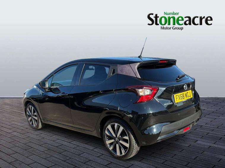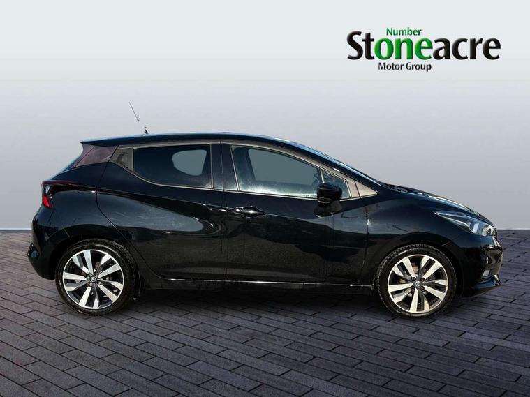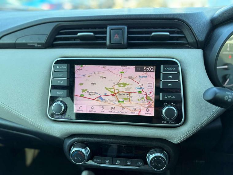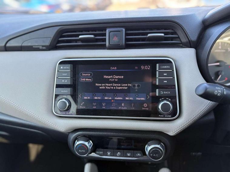 5" TFT driver information centre, Adjustable speed limiter, Bluetooth system, Cruise control, Lane departure warning system, Nissan connect sat nav system, Outside temperature gauge, Rear parking sensors and rear view camera, Smartphone integration with Apple CarPlay and Android auto, Stop/start system, Tomtom connected services, Traffic sign recognition, Trip computer, Aux-in socket, BOSE sound system with 6 speakers, DAB Digital radio, MP3 player, Steering wheel mounted audio controls, USB/iPod connection, Auto dimming rear view mirror, Automatic activation of hazard warning lights, Automatic headlights, Body coloured door handle inserts, Electric folding door mirrors, Electrically adjustable door mirrors, Front and rear electric windows, Front fog lights, Heated door mirrors, High beam assist, High mounted stop lamp, LED daytime running lights, LED indicators in door mirrors, Rain sensor windscreen wipers, Rear privacy glass, Rear roof spoiler, Rear wiper, 12V power point front, 3 cupholders, 3 height adjustable rear headrests, 60/40 split folding rear seat, Automatic air conditioning, Boot carpet, Boot compartment cover, Boot light, Chrome interior door handles, Driver's seat manual height adjust, Driver/passenger sunvisors and vanity mirrors, Front and rear door pockets with bottle holders, Front console storage box, Gear shift indicator, Height adjustable front headrests, Height adjustable steering wheel, Isofix front passenger and rear seat preparation, Leather handbrake, Leather wrapped gear shift knob, Leather wrapped steering wheel, LED ambient lighting, Luggage compartment lighting, Map reading lamp, Parcel shelf, Passenger seat back pocket, Reclining front seats, Satin silver accents on steering wheel, Satin silver air vents, Silver gearknob, Synthetic leather instrumental panel inserts, ABS+EBD+Brake assist, Crash sensor, Driver/Front Passenger airbags, ESP + ASR traction control + CSV understeer control, Forward emergency braking, Front and rear curtain airbags, Front side airbags, Height adjustable front seatbelts with pre-tensioners and load limiters, Hill start assist, Intelligent emergency braking with pedestrian recognition, Passenger airbag deactivation system, Rear seatbelts with pre-tensioners and load limiters, Seatbelt warning, Three 3 point rear seatbelts, Tyre pressure monitoring system, Warning triangle and first aid kit, Anti-theft immobiliser, Intelligent key with push button ignition, Remote central locking, 17" alloy wheels, Tyre repair kit,