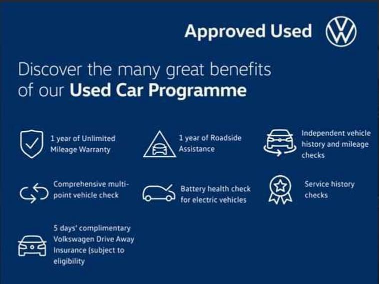 10.25" Digital cockpit pro, Bluetooth mobile phone interface, Driver alert system with fatigue detection, Driver tips and journey analysis, Emergency call service, Lane keeping system Lane Assist, Modified key software - reduce switch off time for key status change to Long no motion, Online services, Park assist including front and rear parking sensors, Service interval indicator, Tailgate/trunk lid release from outside, Think blue trainer driver tips and journey analysis, Warning sound and light for front seatbelts unfastened, Wireless app connect, Battery regeneration during braking, Start/stop function with battery regeneration, Diversity antenna for FM reception, Front and rear 6 speakers, Music playback - MP3, WMA and AAC files, Premium USB cable in choice of either Apple or Android smartphone compatibility, SD card slot, Simultaneous pairing of 2 compatible mobile devices, Title and cover art display, We Connect and We Connect Plus functionality, 3rd brake light, Auto dimming interior rear view mirror, Automatic hazard lights activation under emergency braking, Automatic headlight control with LED separate daytime running lights with coming/leaving home function, Extended roof spoiler, Exterior mirrors aspherical on driver side, convex on front passenger side, External USB type C socket and charging sockets, Front windscreen wiper with intermittent wipe and 4 position delay, Heated rear window, LED Plus headlamps, LED rear combination lamps, LED rear number plate lights, LED tail lamp rear comination lamps, Power windows with comfort operation and circuit breaker, R-Line design body coloured bumpers, Rain sensor, Rear exhaust tailpipe, Rear fog light on one side and reversing lights on both sides, Rear side wing doors, Rear wash/wipe with intermittent wipe setting, Remote electrically foldable door mirrors, puddle lights and reverse activated passenger's door mirror, 12V power socket in centre console, 3 rear head restraints, 3 seat bench in 2nd row, 4 load lashing points in luggage compartment, Air care climatronic air conditoning system with active combination filter and 2-zone temperature control, Black roof lining, Chrome plated radiator grille inserts, air vent surrounds and light switch surrounds, Door and side trim panel with leatherette insert, Drawer under drivers seat, Front + rear carpet mats, Front centre armrest, Front cupholders x 2, Front footwell illumination, Front reading light, Front scuff plates with R logo, Instrument lighting, white adjustable panel illumination, Interior ambient lighting and surround lighting, Interior light delay, Isofix child seat preparation, Leather gearshift handle, Load-through provision with cup holder when folded down ('Unsplit rear seat bench, split folding backrest, with centre armrest), Luggage compartment lighting, Single front passenger seat, Stainless steel pedals, Storage compartment in left and right luggage area, Storage compartment in rear doors, Storage compartments in driver and front passenger doors, Sunvisors with illuminated vanity mirrors, Variable boot floor, height adjustable and removable, Driver assistance pack without proactive passenger protection - T-Roc, 3 point height adj front seatbelts + pretensioners, 3 point seatbelts in outer rear with ECE label, ABS, Child locks on rear doors, Driver and front passenger airbag with front passenger airbag deactivation, Driver and front passenger safety-optimised head restraints, Drivers seatbelt reminder, Electronic parking brake, Electronic Stability Control (ESC) inc EDL (Electronic Differential Lock) and ASR (Traction Control), Front and rear passengers curtain airbag system including front side airbags, Front assist with city emergency braking and pedestrian monitoring, Front seat side impact airbags, Hill start assist, Predictive pedestrian protection, Rear disc brakes, Single tone horn, Tyre pressure loss indicator, Volkswagen roadside assistance, Alarm with interior protection, Anti-theft alarm system with interior monitoring, backup horn, and towing protection, Remote central locking with SAFELOCK, radio remote control with 2 remote control folding keys, Trims for alloy wheels,