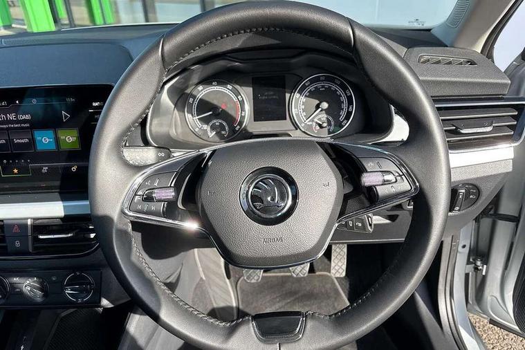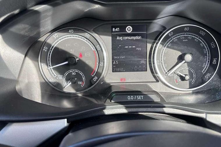 Amundsen satellite navigation with 9.2" glass colour touchscreen display, web radio, voice control and traffic sign recognition, Bluetooth system, E-call, Front assist system, Gesture control, PAS, Service indicator, Speed limiter, Wireless Smartlink for Apple CarPlay (wired for Android Auto), 8 Speakers, Auxiliary input socket, DAB Digital radio, Body colour bumpers, Body colour door mirrors and handles, Chrome grille surround, Dimming rear view mirror with black surround, Electrically adjustable and heated door mirrors, Front and rear electric windows, Headlight range control, Heated rear window, LED rear lights - low functionality, LED third brake light, Light sensors, Privacy glass, Rain sensor, Rear fog lights, Rear side wing doors, Rear wiper, 12V Accessory socket in centre console, 3 seat bench in 2nd row, Chrome inner door handles, Cloth upholstery, Front head restraints, Glove compartment with illumination, Height adjustable driver and front passenger seats - manual, Ice scraper, Isofix child seat fittings on outer rear seats, ISOFIX on front passenger seat, Manual lumbar support for front seats, Rake/reach adjustable steering wheel, Reading lights, Single front passenger seat, Sun visors with illumination on front passenger, Textile floor mats, Third rear headrest, Top tether for front passenger seat, Umbrella in driver's door, 3x3 point rear seatbelts, Airbags - driver and front passenger, ESP, Front passenger airbag deactivation switch, Front side airbags with curtain airbags, Hill hold control, Manual parking brake, Manual rear child locks, One tone horn, Rear disc brakes, Seatbelt reminder for driver an co-driver, Traction control, Tyre pressure monitor, Anti-theft alarm system with interior monitoring, backup horn, towing protection and remote central locking with SAFE system, Anti-theft wheel bolts, Electronic engine immobilizer, Silver haptic decorative insert on the dashboard with hot stamping in glossy black,