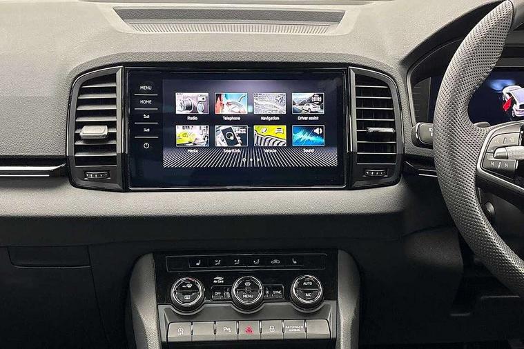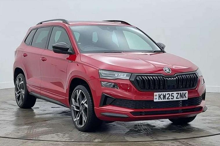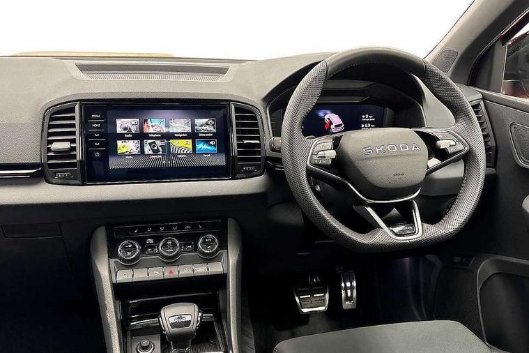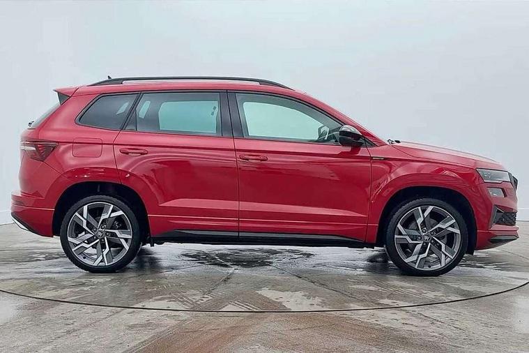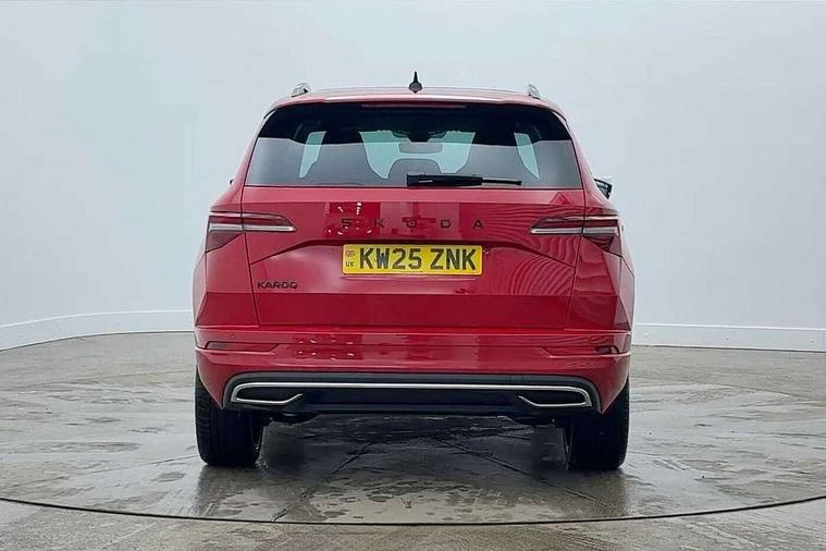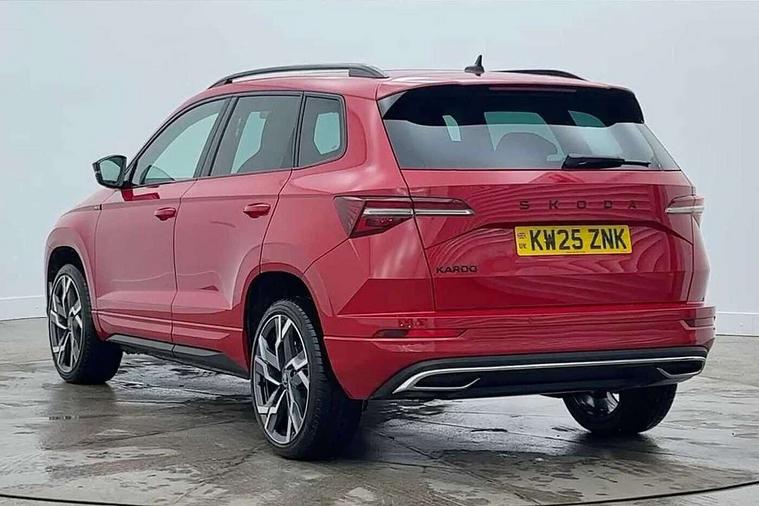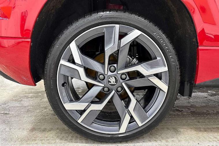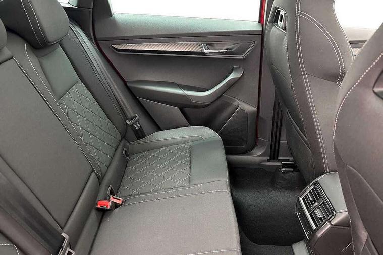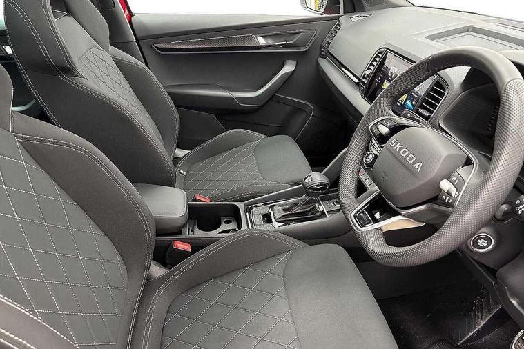 Advanced driver attention and drowsiness monitor, Emergency services call system, Outside temperature gauge, Sensor for driver assistance systems, Service interval indicator, SmartLink wireless for Apple and wired for Android, Start/stop system with regenerative braking, Traffic sign recognition, USB C Port x 2 in front centre console, Virtual Cockpit - 10.25" digital display, Virtual pedal with electrically operated boot door, Wireless smartphone charging, DAB radio with Bluetooth, USB connection, Acoustic glass, Aero front windscreen wipers with intermittent function, Auto dimming rear view mirror with light and rain sensors, Black door mirrors, Black electric window control buttons, Black radiator grille, Black roof rails, Body colour door handles, Electric front and rear windows with child proof lock, Extended rear roof spoiler, Front door steps with SportLine logo, Heated rear windscreen, LED daytime running lights, LED rear lights with high functionality welcome effect and dynamic indicators, Light assistant (coming/leaving home/tunnel light), Panoramic sliding sunroof, Plastic scuff plates in door apertures, Privacy glass, Protective door side sills in body colour, Rear diffuser, Rear side wing doors, Rear window wiper with washer system and intermittent control, Safety reflectors on front doors, Skoda lettering on tailgate in black, Sportline badge on front fender, Sports front and rear bumpers, Third brake light, Unique dark chrome design logo on alloy wheels, 1.5 litre bottle holders in driver and front passenger door panels, 12V socket in boot, 12v socket in front centre armrest with storage compartment and rear air vents, 2 x Tablet holder, 3 rear height adjustable headrests, 3 seat bench in 2nd row, 3 spoke sports leather heated multifunction steering wheel with DSG paddles, 4 foldable roof handles with rear coat hooks, Black floor carpet, Cargo elements in boot, Chrome inner door handles, Foldable hooks in the boot, Front head restraints, Height adjustable front three point seats belts with tensioners, Height/reach adjust steering wheel, Ice scraper, Illuminated glovebox, Illuminated luggage compartment, Isofix child seat preparation for front passenger seat, Isofix child seat preparation outer rear, Manual lumbar support for front seats, Pen holder, Pollen filter, Rear backrest release from boot, Rear boot cover, Rear package tray, Rear reading lights, Rear seats fixed folding and divided 60:40, Rubbish bin door, Safety vest holder, Single front passenger seat, Skoda lettering on steering wheel, Sportline decorative inserts, Storage box in upper central dashboard closed, Sunvisors with illuminated vanity mirrors, Textile floor mats, Ticket holder, Titan black interior ceiling, Umbrella under passenger seat, Under passenger seat storage compartment, Columbus pack - Karoq, LED Interior lighting pack with Skoda welcome logo - Karoq, Light Pack - Karoq, Non Smokers pack, Performance pack - Karoq, Winter plus pack with heated front and rear seats - Karoq, Automatic door unlocking in case of crash, Automatic fuel cut off in case of crash, Driver airbag, Electronic parking brake with auto hold function, Emergency rear braking signal, ESC (incl. ABS+MSR+ASR+EDS+HBA+DSR+RBS+MKB), Front side airbags, Head airbags, Hill hold control, Knee airbags, Passenger airbag with switch-off function, Pedestrian monitor, Seatbelt reminder signalisation and pretensioner for all seats, Three point seatbelts rear, Two tone horn, Tyre pressure monitor, Alarm with interior monitoring, back up horn and tilt sensor with safe function, Electronic engine immobiliser, Keyless entry and start/stop, Remote central locking with 2 remote folding keys, Black air vent surround, Black centre console, carbon door decor, Satin black dashboard, Satin black door trim, 19" Sagittarius anthracite alloy wheels, Anti-theft wheel bolts protection, Breakdown and tool kit,