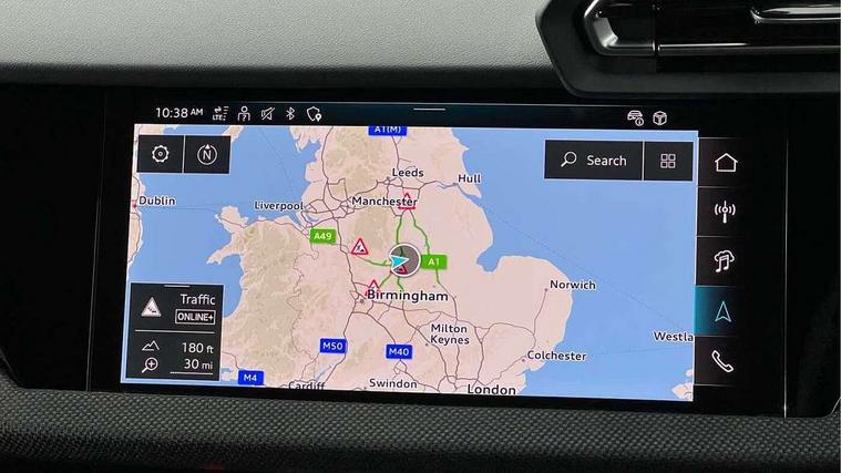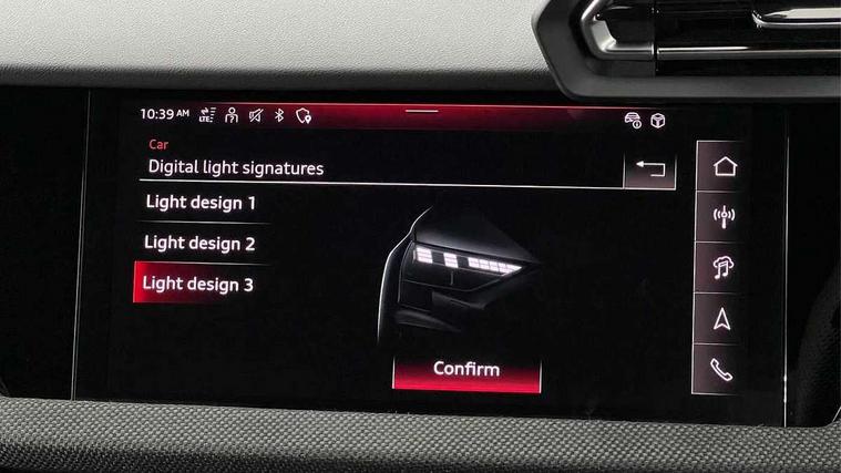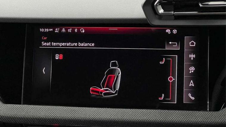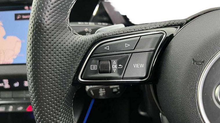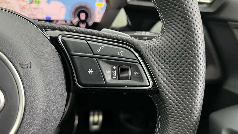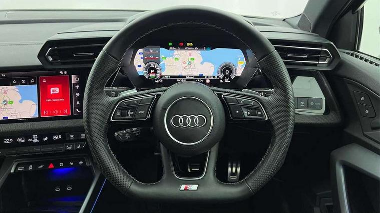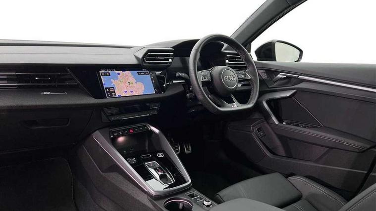 Adaptive cruise control (ACC), Adjustable speed limiter, Audi drive select (Auto, Comfort, Dynamic, Efficiency and Individual), Audi virtual cockpit plus - 12.3" full HD resolution dynamic digital instrument cluster, Automatic start/stop system with recuperation, Bluetooth interface, Camera based traffic sign recognition, Collision avoidance assistant, Driver attention and fatigue detection, e-Call (emergency call), Electromechanical power speed sensitive steering, Emergency assist, Intersection assist, Lane departure warning system, MMI Navigation Plus with high resolution 10.1" colour touch screen display, Park Assist with parking system Plus, Reversing camera, Service indicator, Smartphone interface with app store includes wireless Apple carplay, Android auto and Amazon alexa integration, Trip computer, Voice control system with natural language interaction, CCS socket for DC charging, Charging cable for public charging, mode 3 (type 2), 32 A, Standard suspension, Type 2 socket for AC charging, Audi Phonebox light with wireless charging, Audi sound system - 10 loudspeakers including centre loudspeaker and subwoofer, DAB Digital radio, USB ports with charging function in the rear, Acoustic glass windscreen, All weather light, Anthracite grey Audi rings (front and rear), Audi beam uses LEDs to project the Audi logo onto the ground as you exit your A3, Auto dimming frameless rear view mirror, Automatic dynamic range control, Black accents front and rear bumpers, Black accents in the area of the Audi single frame grille, Black accents window trims strips, Dipped beam, main beam, position light and turning light, Electrically adjustable/heated/folding/auto dimming door mirrors with integrated LED indications + kerb view function for passenger side, Exterior model badging, Front and rear side air inlets in grained matt black with dark liquid chrome frame, Front electric windows, Front radiator grill in high gloss dark chrome, Heat insulating glass windscreen, Illuminated door sills with aluminium inserts at the front with S logo, Intersection light, Invisible tailpipe, LED 3rd brake light, LED brake lights, LED daytime running x3, LED headlights with LED rear lights and dynamic rear indicators, LED rear number plate lights, LED reverse light, LED tail lights, Light and rain sensors, Manoeuvring light, Motorway light, Privacy glass - dark tinted rear window, rear door and side windows, Rear diffuser and grill in grained matt black with inlay in dark liquid chrome, Rear electric windows, Rear side wing doors, Rear wiper, S roof spoiler, Side sill trim in dark liquid chrome, Static cornering light, 12V socket and storage compartment in front centre console, 3 seat bench in 2nd row, 3 spoke flat bottomed leather multifunction sport steering wheel with gear shift paddles, 3-zone deluxe automatic air conditioning, 4 way electrically adjustable lumbar support for driver and front passenger, 40/20/40 split folding rear seat bench, Black cloth headlining, Black front and rear floor mats, Convenience auxiliary air conditioning, Front and rear centre armrest in artificial leather with contrasting stitching on armrests and instrument panel, Front and rear headrests, Heated front seats, Height and reach adjustable steering wheel, i-Size child seat mounting on the front passenger side and outer rear seats, i-Size and top tether on the outer rear seats, Manual boot compartment lid, Manually adjustable front seats, Rear centre armrest with cupholder, S badging on the steering wheel, Seat side bolsters, Single front passenger seat, Stainless steel pedals and front footrest in black, Twin leather upholstery with front sports seats S embossed logo, Aluminium interior elements pack - A3, 3x3 point rear seat belts, Acoustic vehicle alerting system, Driver and front passenger airbag with passenger airbag deactivation, Electronic Stabilisation Control (ESC) including ABS, ASR and EDL, First aid kit with warning triangle and 2 safety vests, Front side airbags with head airbags and interaction airbag, Hill hold assist, Pre-sense front with pedestrian and cyclist detection, Seatbelt monitoring, Tyre pressure loss indicator, Anti theft alarm, Anti-theft wheel bolts, Electronically operated child locks, Immobiliser, Black dashboard, 18" 5 Y twin spoke style alloy wheel in metallic black, Tyre repair kit,