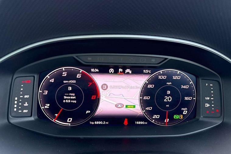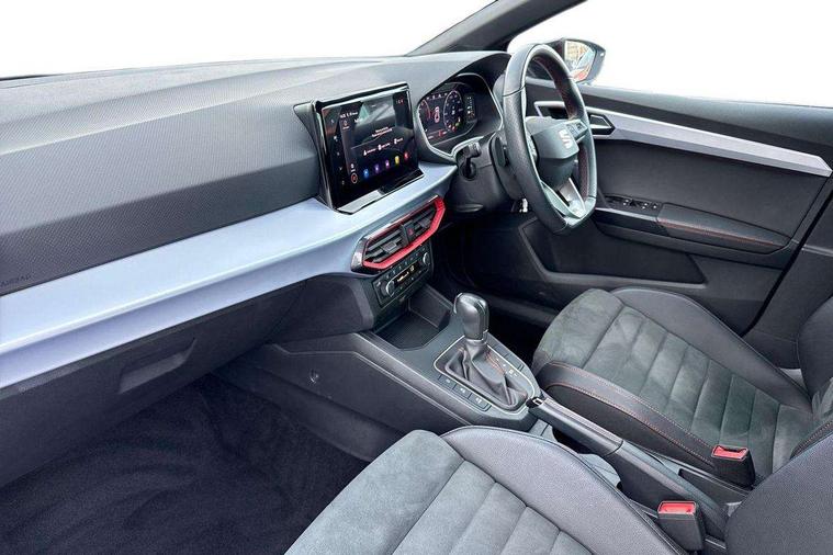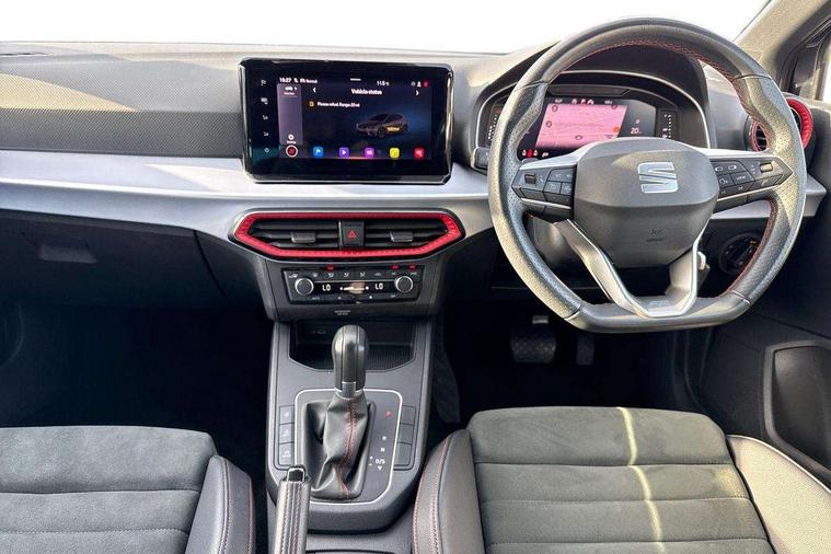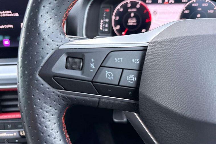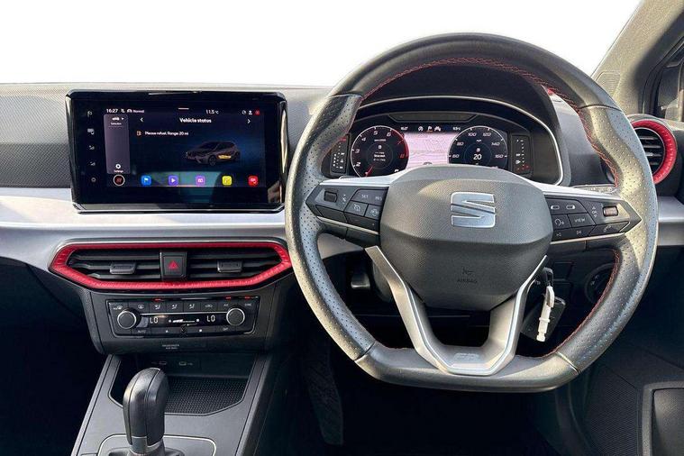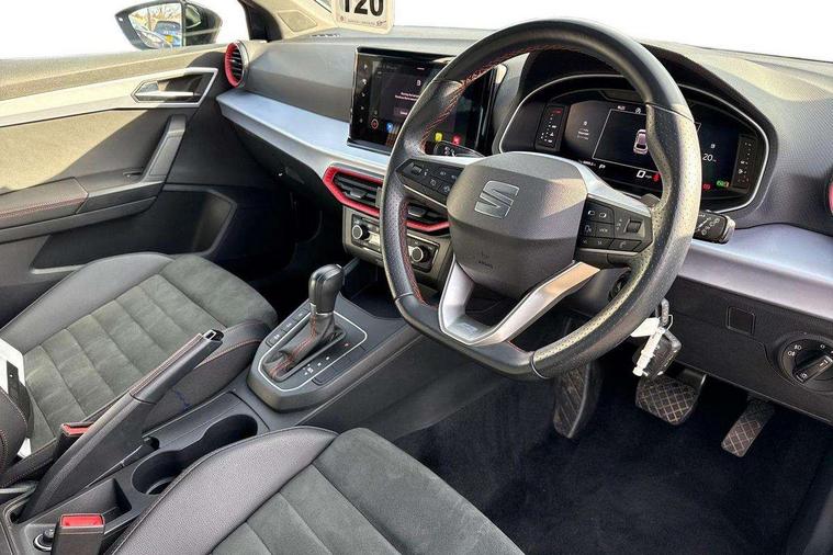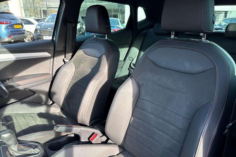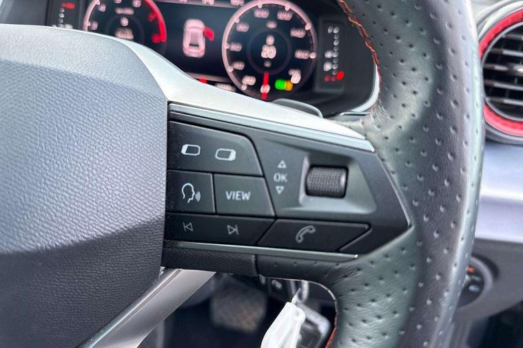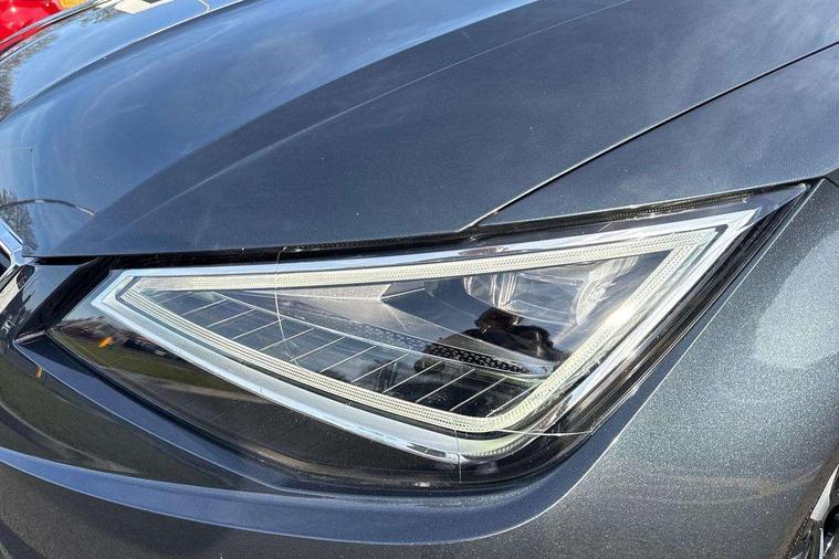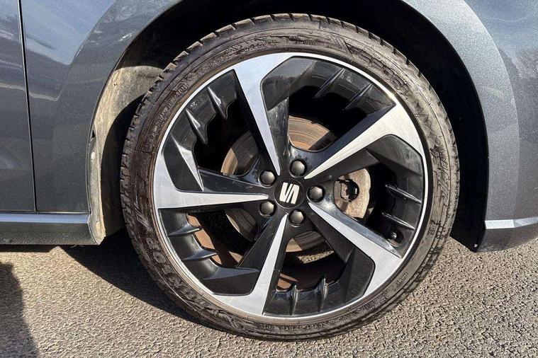 'Lights On' Reminder warning buzzer, 10" Digital cockpit, 9.2" touchscreen navigation system with type C USB socket, Voice control and DAB/AM/FM radio, Auto start and stop system, Bluetooth audio streaming with handsfree system, Digital clock, E-call, Full link smartphone integration with mirror link, wireless apple carplay, Google android auto + USB Type C cable for apple and android devices, Lane assist, Low fuel warning light, Outside temperature gauge, Power Steering, Seat connect with safety, service, remote and online, SEAT drive profiles and ECO function, SEAT logo boot release, Speed limiter, Trip computer, Sports suspension, Auxiliary input socket, Radio/MP3 player, SD card slot, Steering wheel mounted controls, Anti theft roof antenna, Auto dimming rear view mirror, Automatic rain sensing wipers, Black door mirrors, Body colour bumpers, Body colour door handles, Brilliant black window surrounds, Dark tinted rear windows, Electric adjustable/heated/folding door mirrors, Electric front windows, Electric headlight adjustment, Electric rear windows, Front/rear fog lights, FULL LED automatic headlights with dynamic headlight range control, coming and leaving home, LED daytime running lights, LED tail lights, Rear roof spoiler with FR twin exhausts, Rear side wing doors, Rear wiper, Third brake light, 3 seat bench in 2nd row, 60/40 split folding rear seat, Ambient interior lighting, Chrome detailing and black headlining, Comfort seats, Dual zone climate control with combination filter, Front courtesy lights, Front cupholders x 2, Front reading lights, Gear shift indicator, Glovebox, Height adjustable front and rear headrests (five), Height adjustable front seats, Height/reach adjust steering wheel, Illuminated air vent surrounds, Illuminated boot, Instrument lighting with brightness control, Isofix, Leather multifunction flat bottomed sports steering wheel with gearshift paddles, Microsuede cloth upholstery, Passenger sunvisor, Single front passenger seat, Storage pockets on back of front seats, Sunvisors with mirror and driver side card holder, 3 point seatbelts on all 3 rear seats, ABS, Active front headrests, Child locks on rear doors, Electronic stability control, Energy recovery system, Front assist forward collision warning and autonomous emergency braking, Front driver and passenger side airbags with curtain airbag and front passenger airbag deactivation, Hill hold control, Multi-Collision braking, Seat belt reminder for front and rear seats, Tiredness recognition system, Tyre pressure monitoring system, Electronic engine immobiliser, Locking wheel bolts, Perimeter alarm and interior monitoring with backup horn and tow away protection, Remote central locking + deadlocks, 18" Performance machined alloy wheels in black and grey,