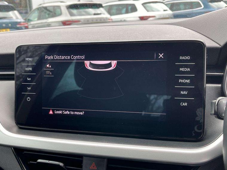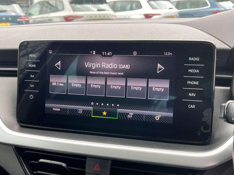 Amundsen satellite navigation with 9.2" glass colour touchscreen display, web radio, voice control and traffic sign recognition, Bluetooth system, E-call, Front assist system, Gesture control, PAS, Service indicator, Speed limiter, Wireless SmartLink for apple car play, android auto and mirrorlink, 8 Speakers, Auxiliary input socket, DAB Digital radio, Body colour bumpers, Body colour door mirrors and handles, Chrome grille surround, Dimming rear view mirror with black surround, Electrically adjustable and heated door mirrors, Front and rear electric windows, Headlight range control, Heated rear window, LED rear lights - low functionality, LED third brake light, Light sensors, Privacy glass, Rain sensor, Rear fog lights, Rear side wing doors, Rear wiper, 12V Accessory socket in centre console, 3 seat bench in 2nd row, Chrome inner door handles, Cloth upholstery, Front head restraints, Glove compartment with illumination, Height adjustable driver and front passenger seats - manual, Ice scraper, Isofix child seat fittings on outer rear seats, ISOFIX on front passenger seat, Manual lumbar support for front seats, Rake/reach adjustable steering wheel, Reading lights, Single front passenger seat, Sun visors with illumination on front passenger, Textile floor mats, Third rear headrest, Top tether for front passenger seat, Umbrella in driver's door, 3x3 point rear seatbelts, Airbags - driver and front passenger, ESP, Front passenger airbag deactivation switch, Front side airbags with curtain airbags, Hill hold control, Manual parking brake, Manual rear child locks, One tone horn, Rear disc brakes, Seatbelt reminder for driver an co-driver, Traction control, Tyre pressure monitor, Anti-theft alarm system with interior monitoring, backup horn, towing protection and remote central locking with SAFE system, Anti-theft wheel bolts, Electronic engine immobilizer, Silver haptic decorative insert on the dashboard with hot stamping in glossy black,